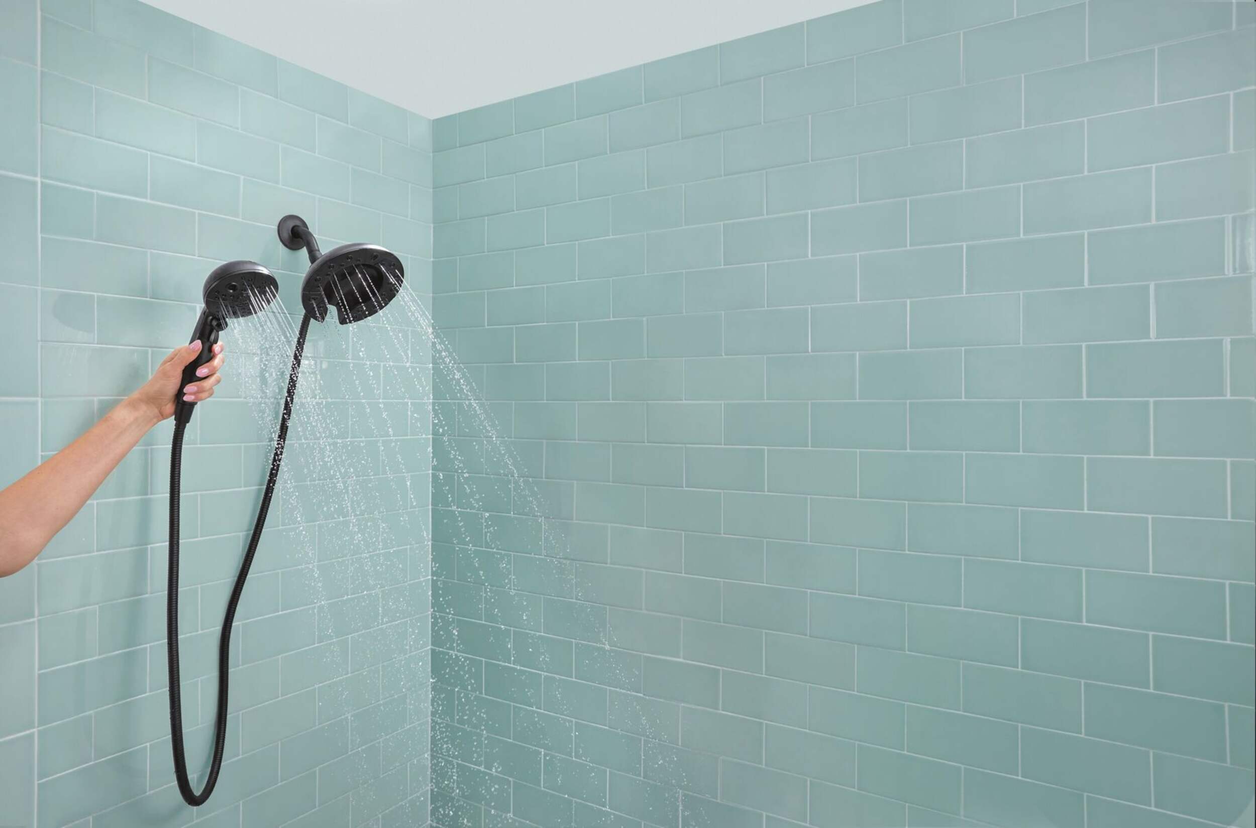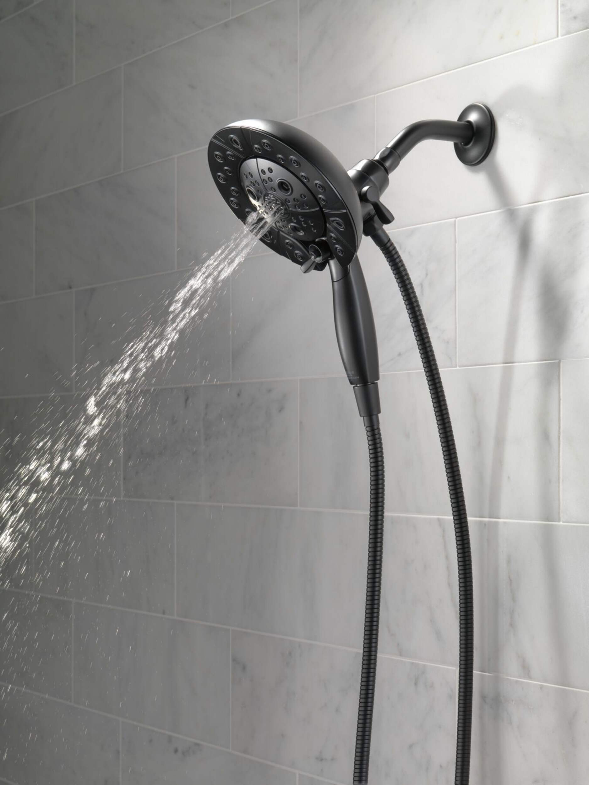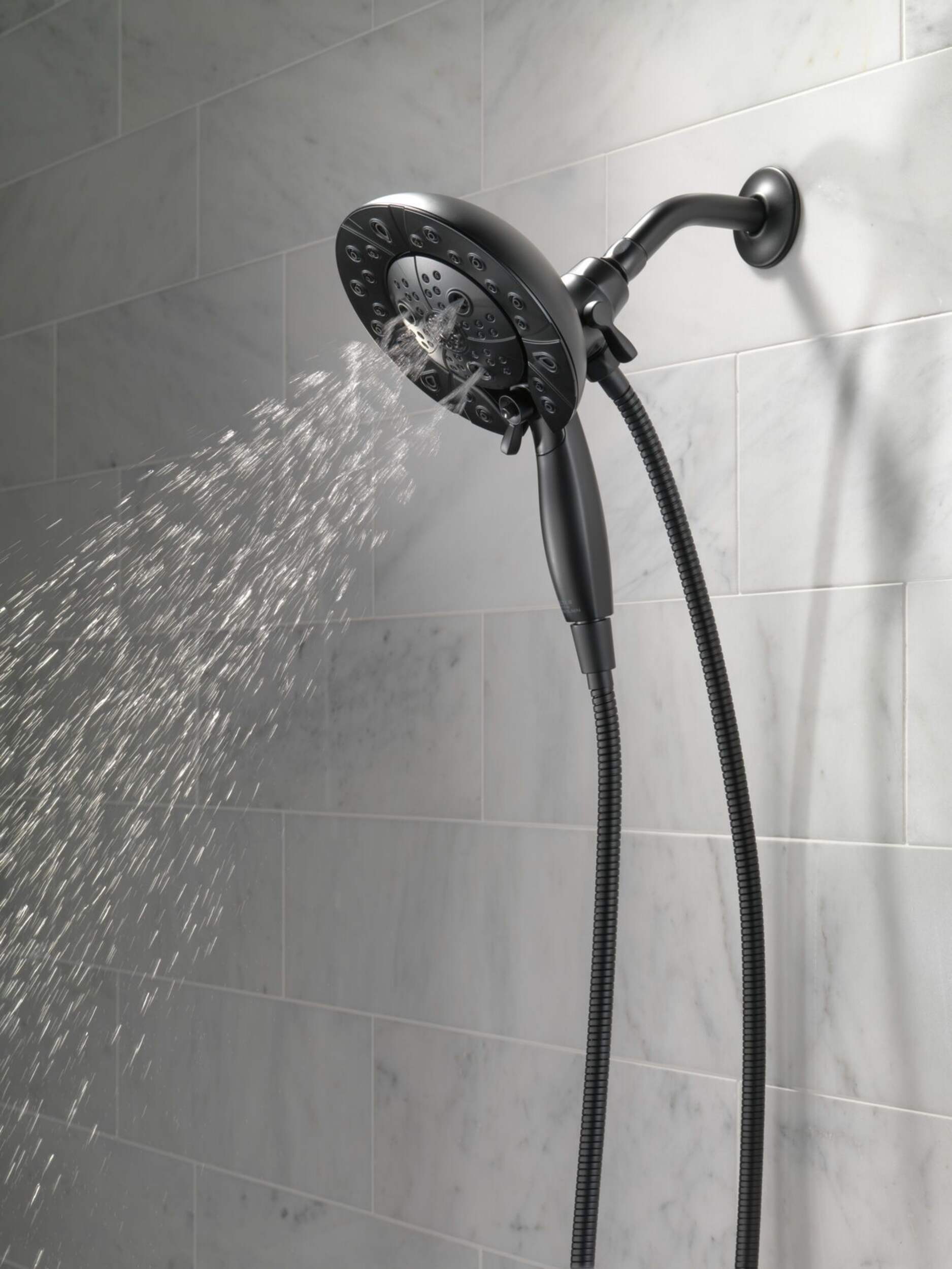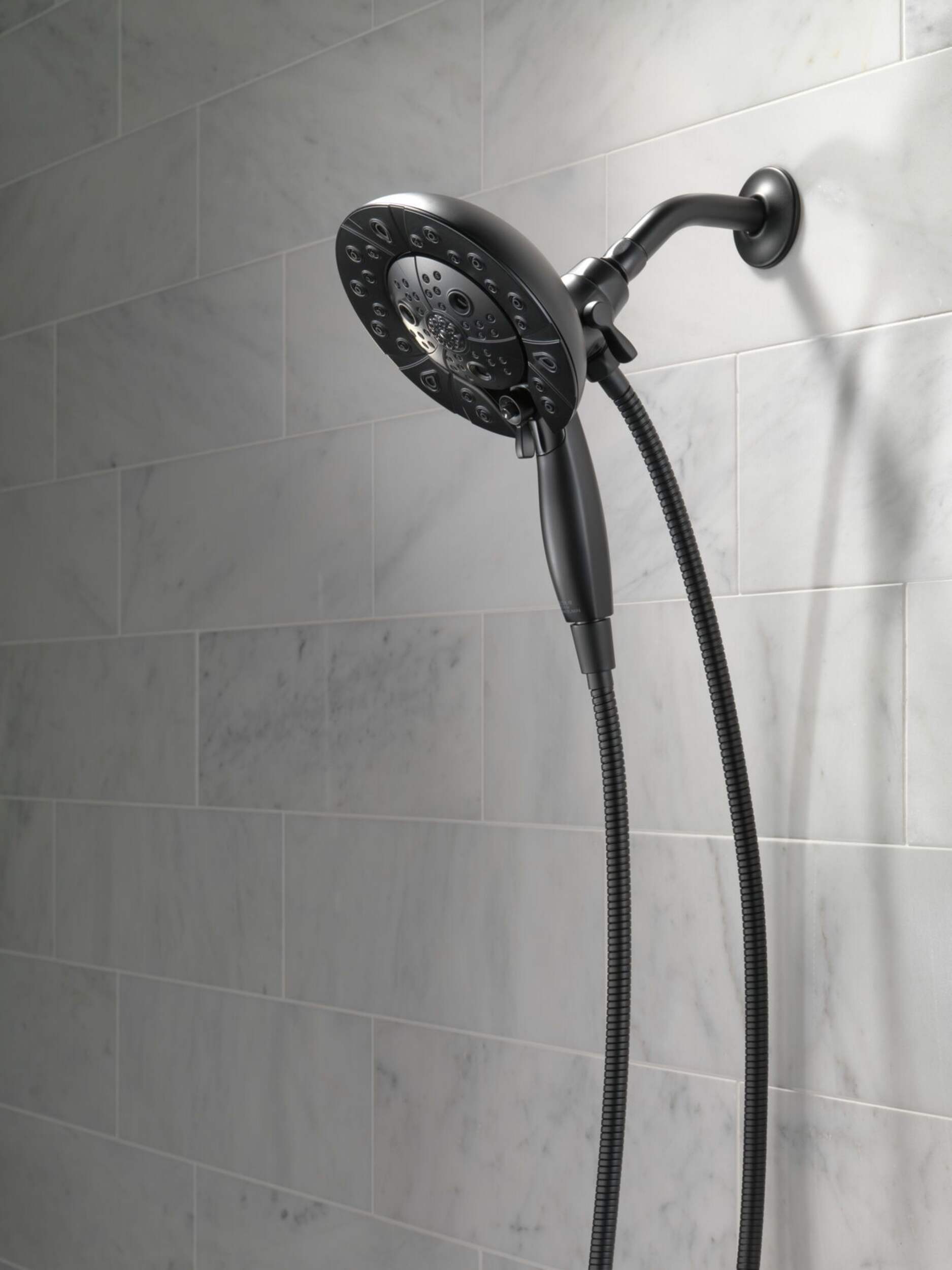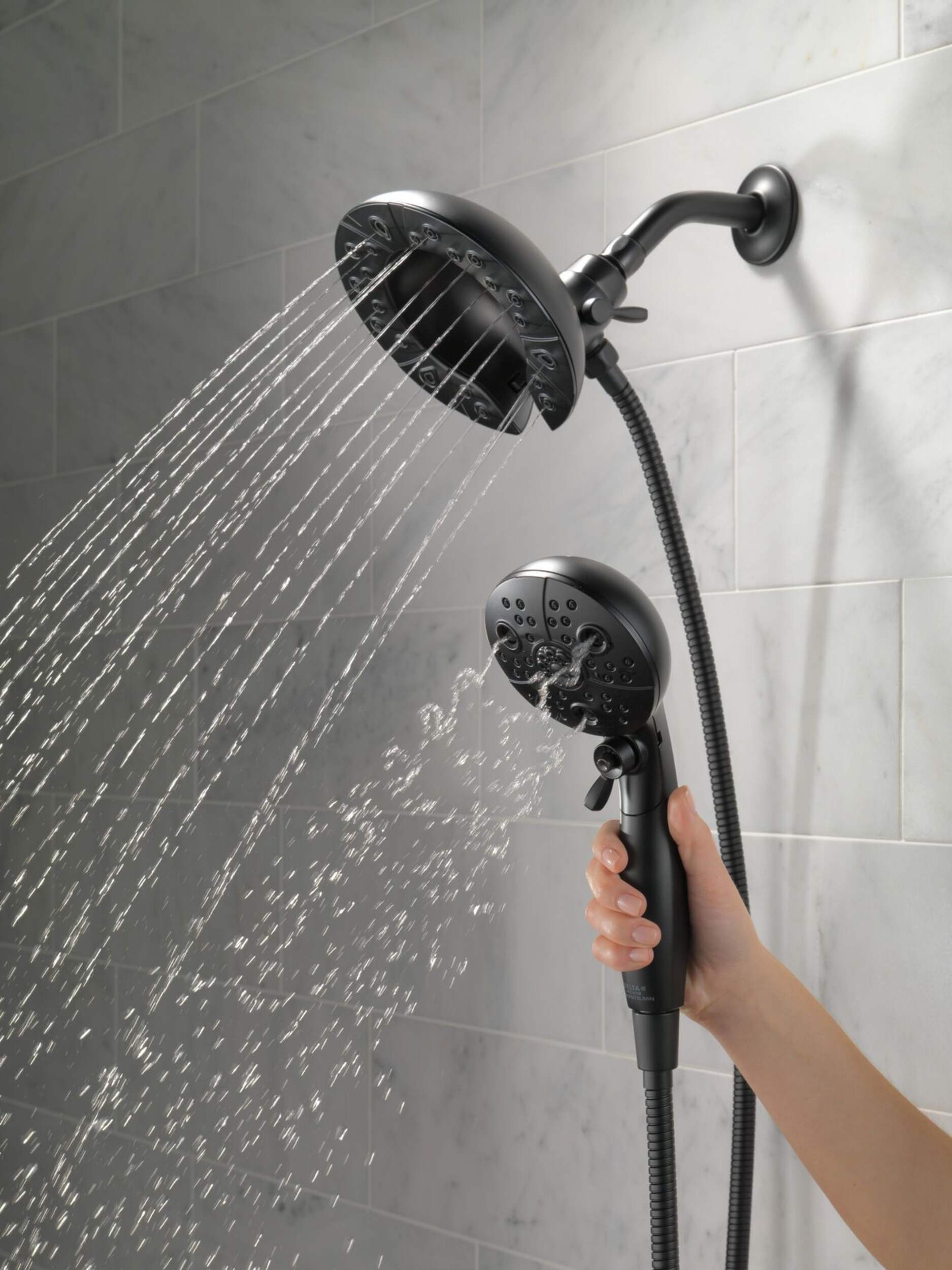 Delta H2Okinetic In2ition 5-Setting Round 2-in-1 Shower Set gets water where you need it most using the integrated shower head and hand shower separately or together