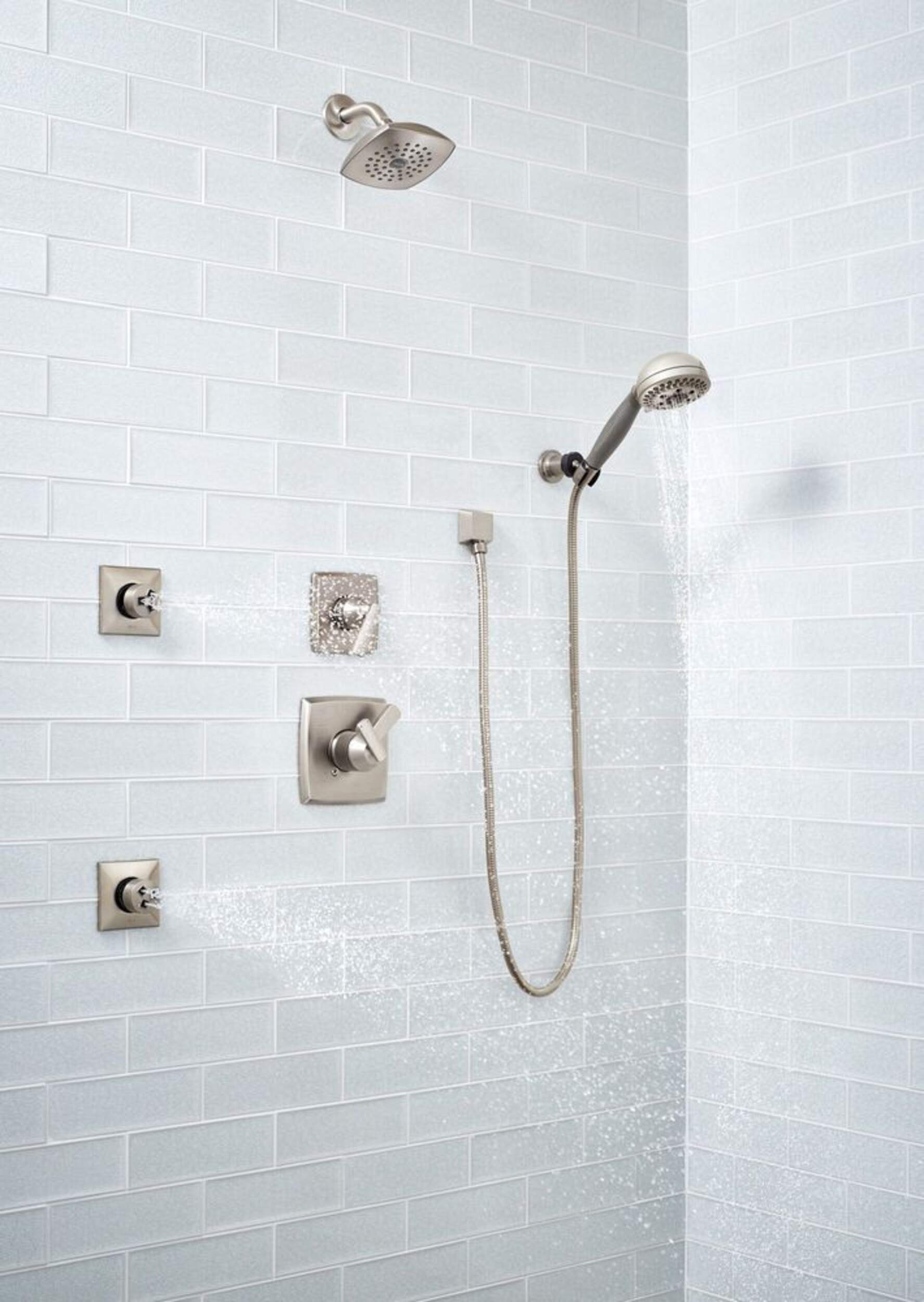 While other products may gather unsightly mineral build-up over time, Delta Monitor Shower Trim with soft rubber Touch-Clean spray holes allow any mineral residue to simply be wiped away for an instantly refreshed look — with no need for soaking or the aid of chemical cleaners. Delta pressure-balance valves use monitor technology to protect you and your family from sudden temperature changes. This brilliance stainless finish has subtle, warm undertones which make it an excellent match with nickel or stainless steel and is extremely versatile, complementing nearly any look, be it traditional, transitional or contemporary.