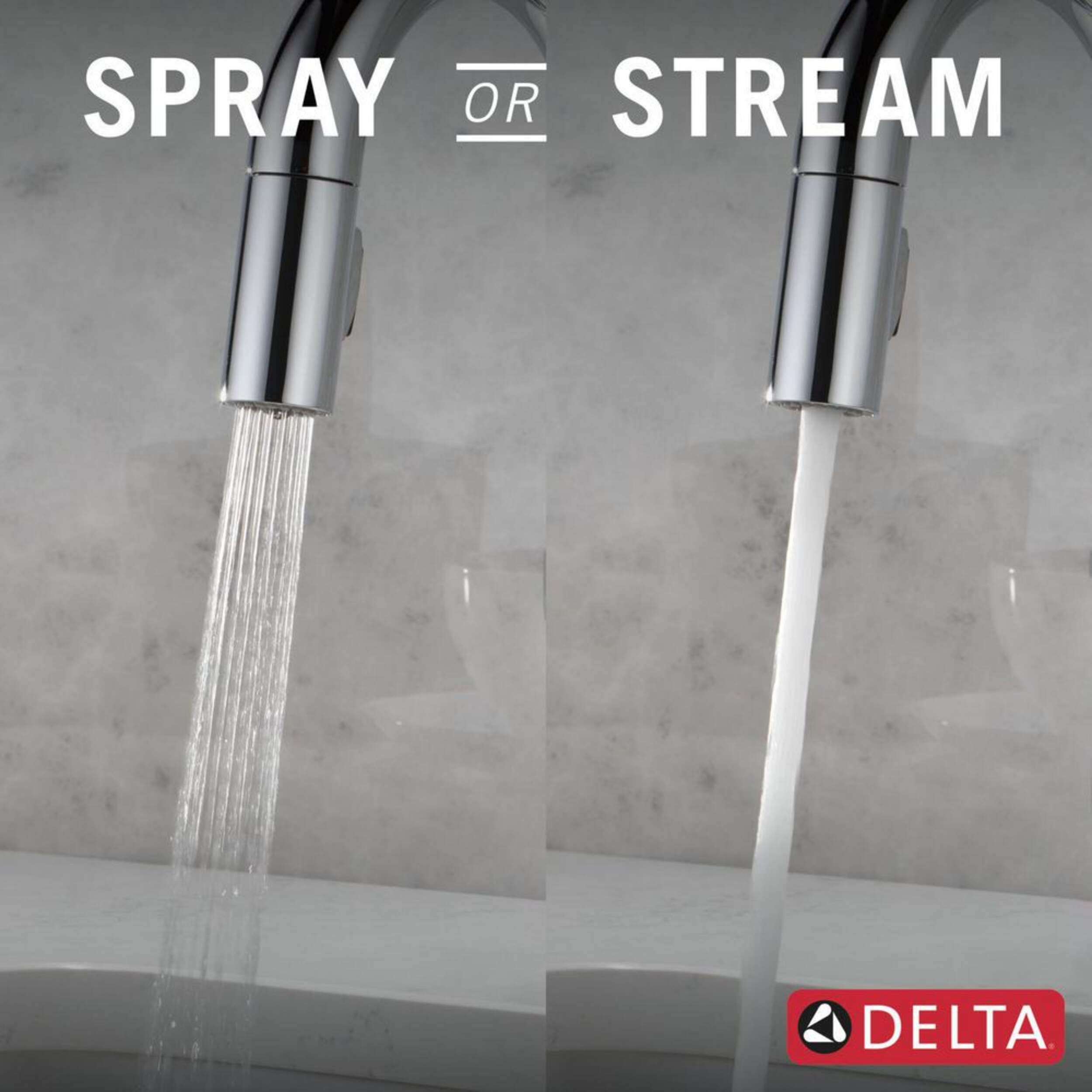 Touch it on. Touch it off. Whether you have two full hands or 10 messy fingers, Delta® Touch2O® Technology helps keep your faucet clean, even when your hands aren’t. A simple touch anywhere on the spout or handle with your wrist or forearm activates the flow of water at the temperature where your handle is set. The Delta TempSense™ LED light changes color to alert you to the water’s temperature and eliminate any possible surprises or discomfort. Delta® MagnaTite® Docking uses a powerful integrated magnet to pull your faucet spray wand precisely into place and hold it there so it stays docked when not in use. Delta® faucets with DIAMOND™ Seal Technology perform like new for life with a patented design which reduces leak points, is less hassle to install and lasts twice as long as the industry standard*. Kitchen faucets with Touch-Clean® Spray Holes allow you to easily wipe away calcium and lime build-up with the touch of a finger. You can install with confidence, knowing that Delta faucets are backed by our Lifetime Limited Warranty. Electronic parts are backed by our 5-year electronic parts warranty. *Industry standard is based on ASME A112.18.1 of 500,000 cycles.
