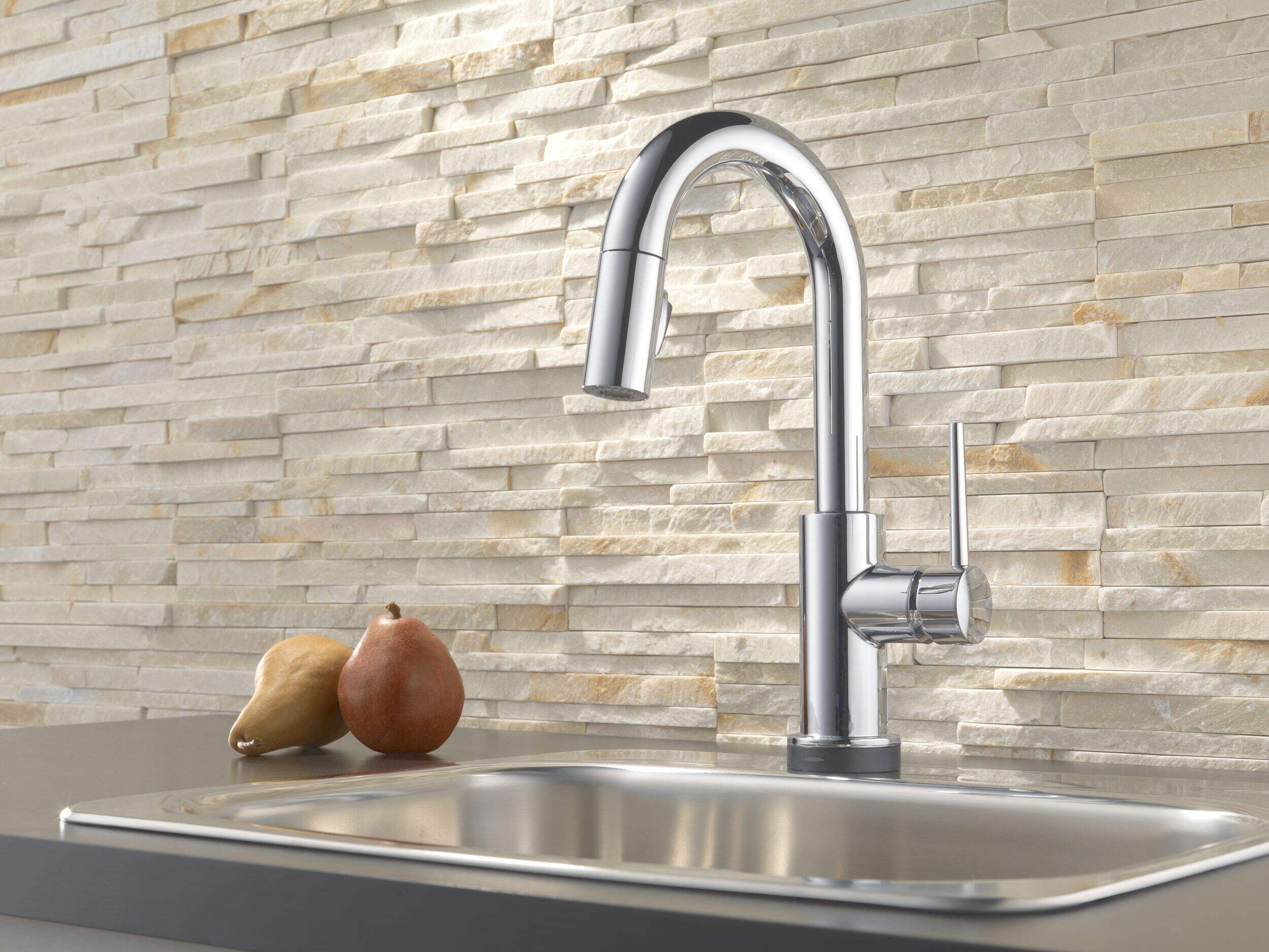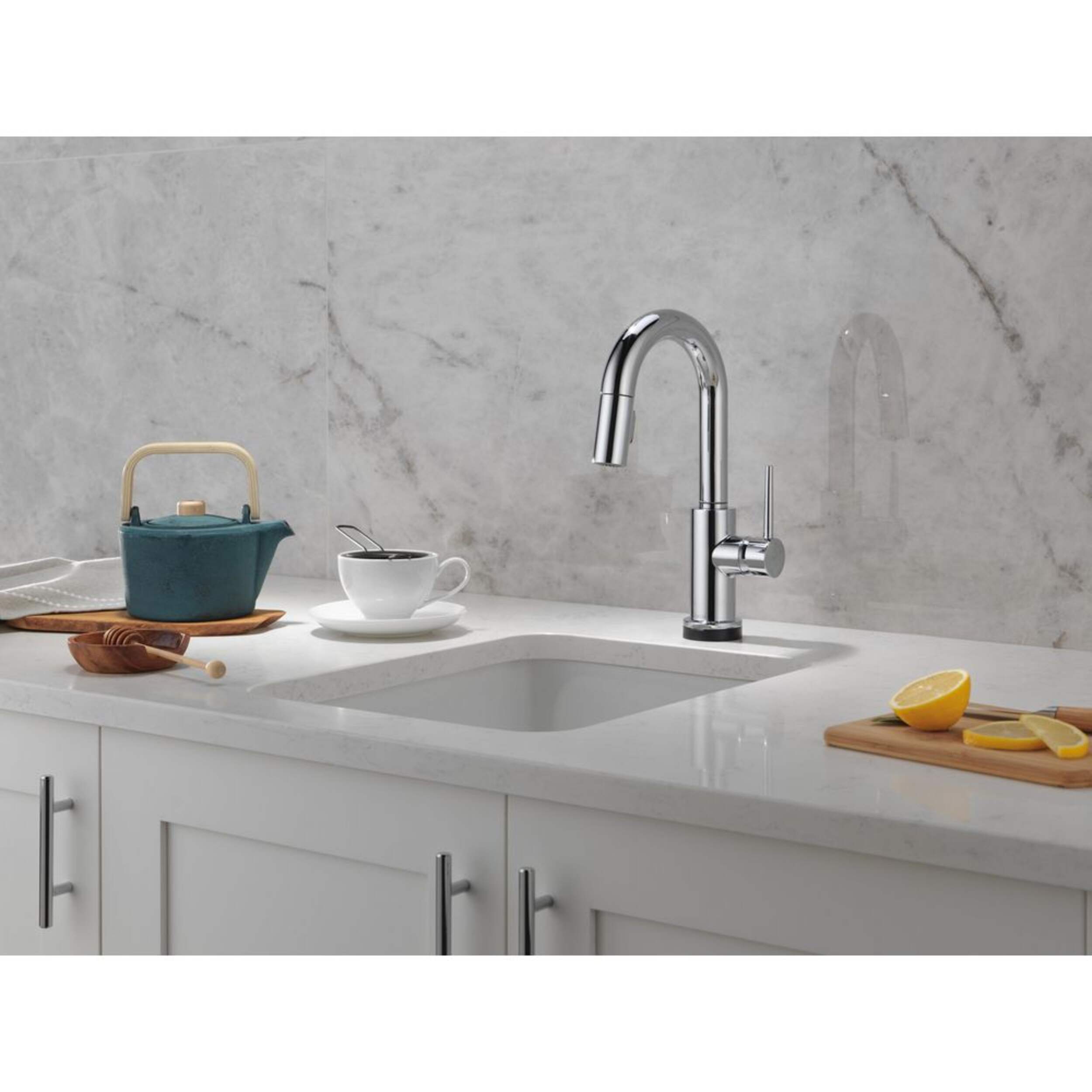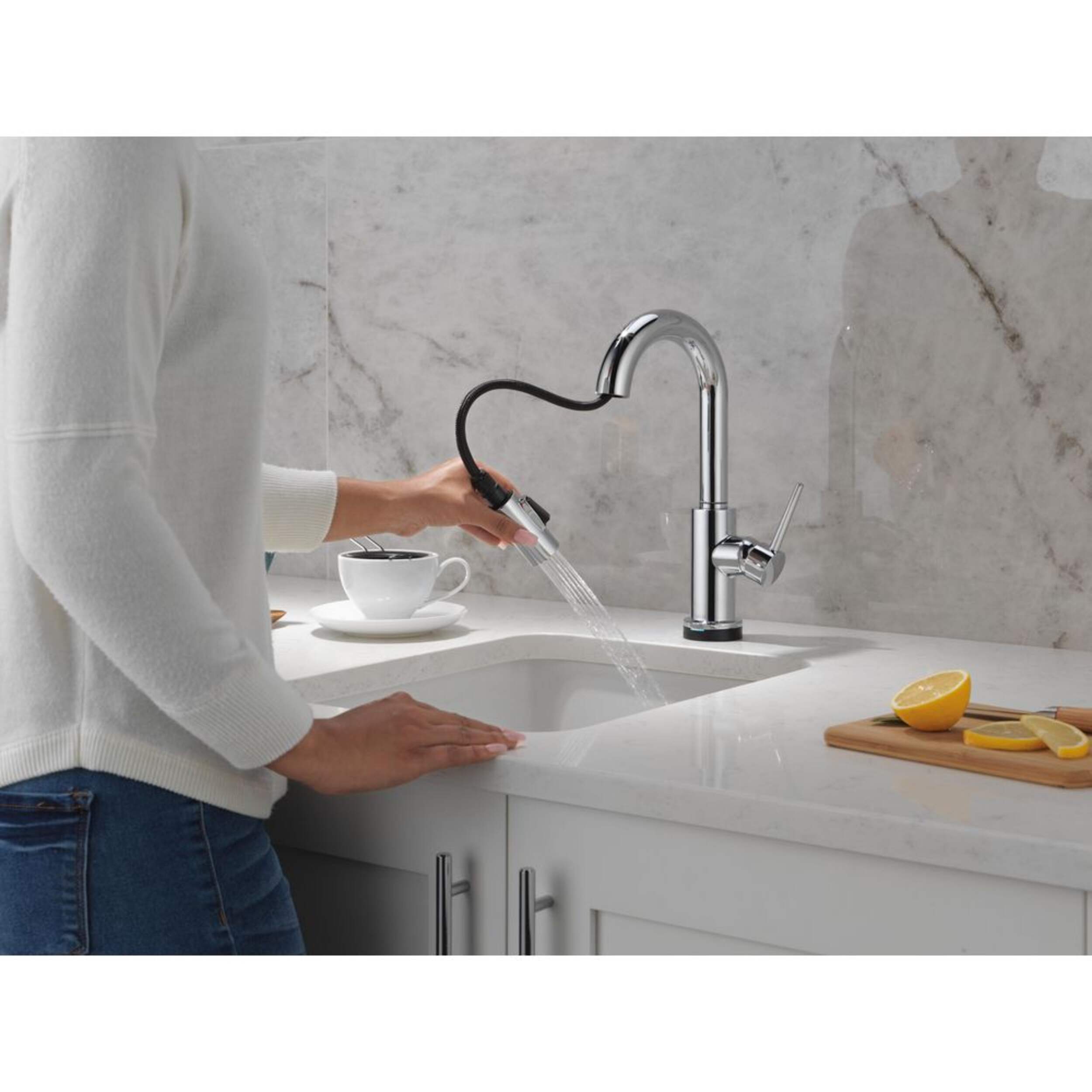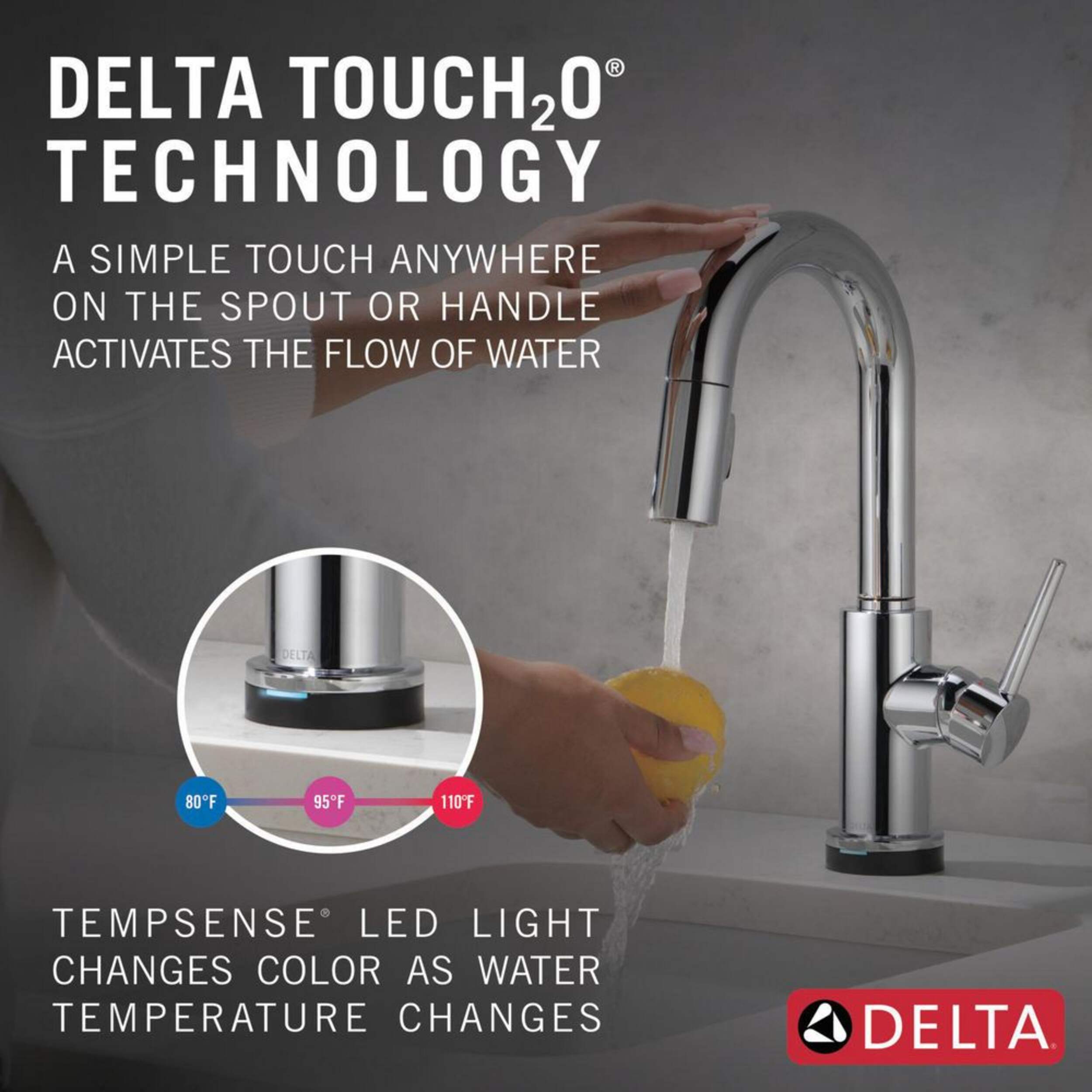 Delta Trinsic 1-Handle Pull-Down Bar/Prep Faucet features Touch2O Technology - a simple touch anywhere on the spout or handle will start and stop the flow of water