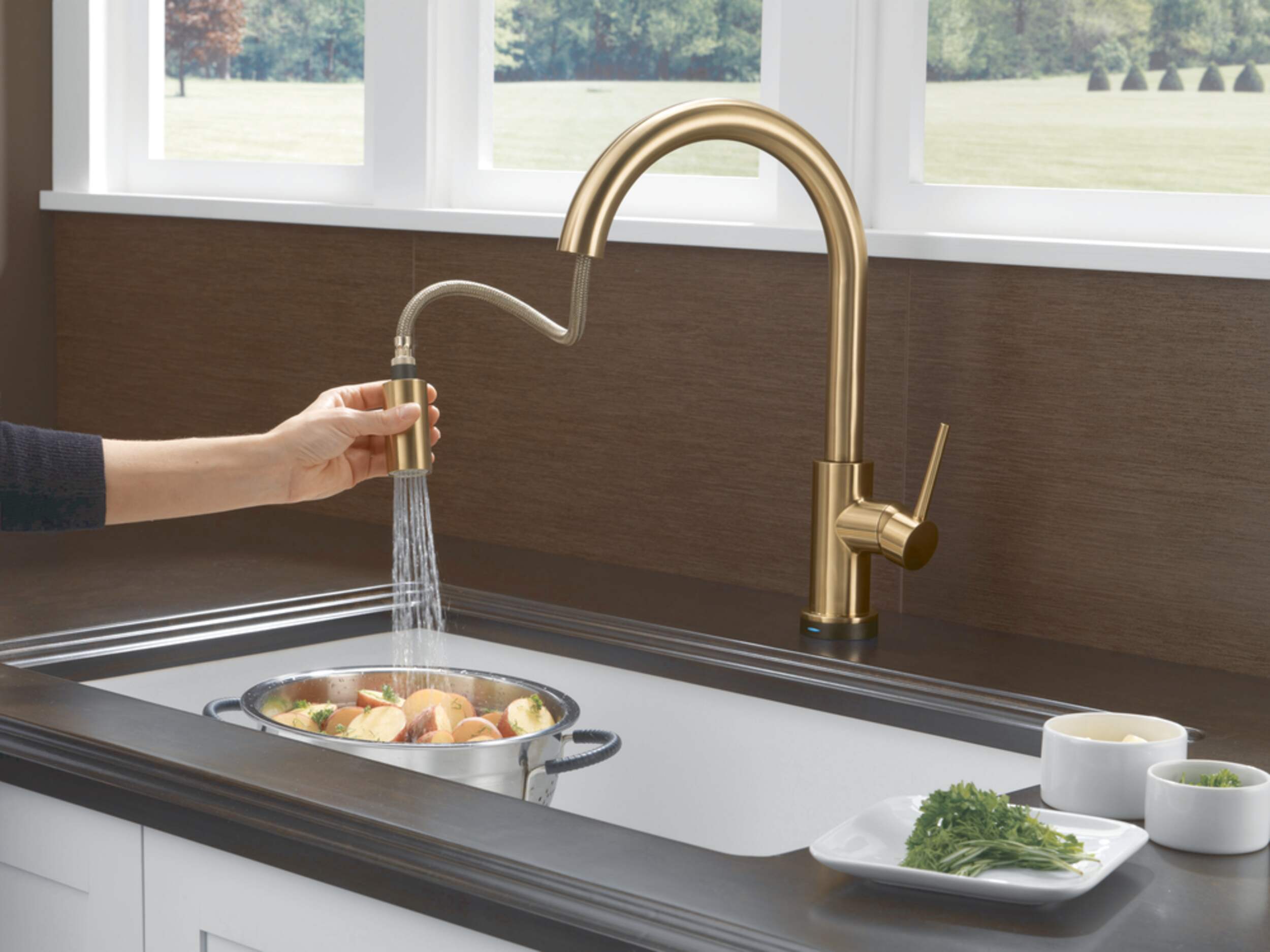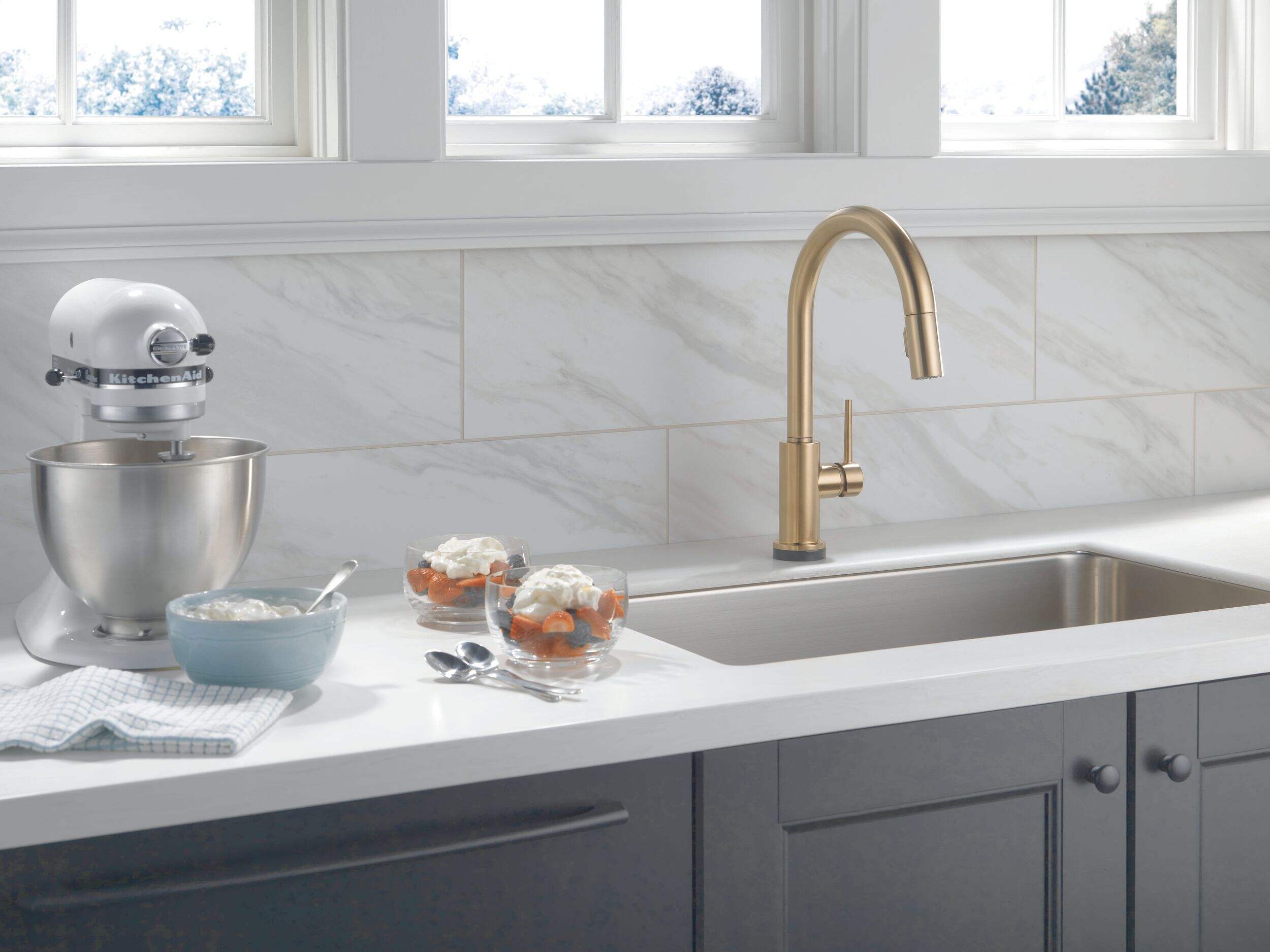 Delta Trinsic 1-Handle Pull-Down Kitchen Faucet Touch2O, Champagne Bronze