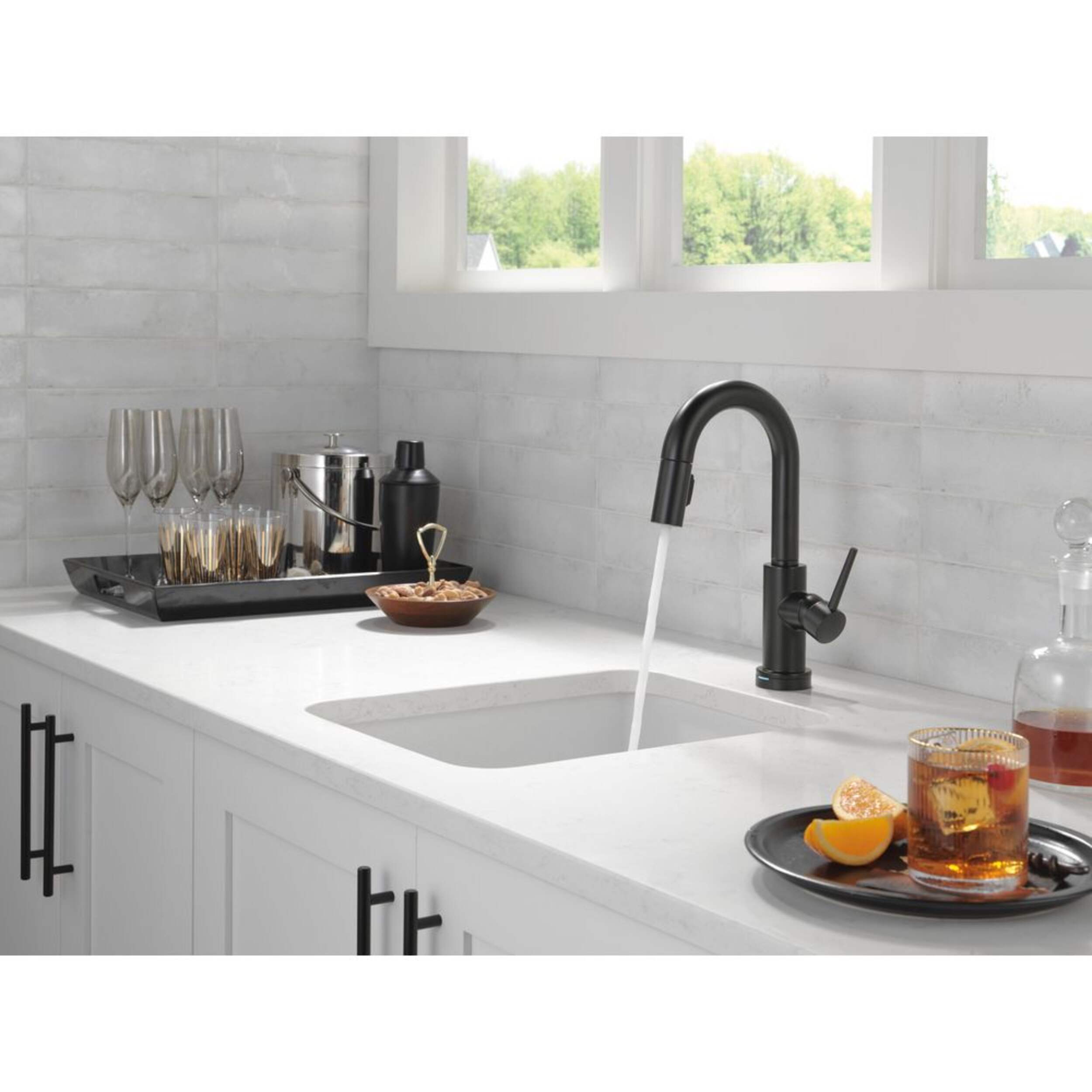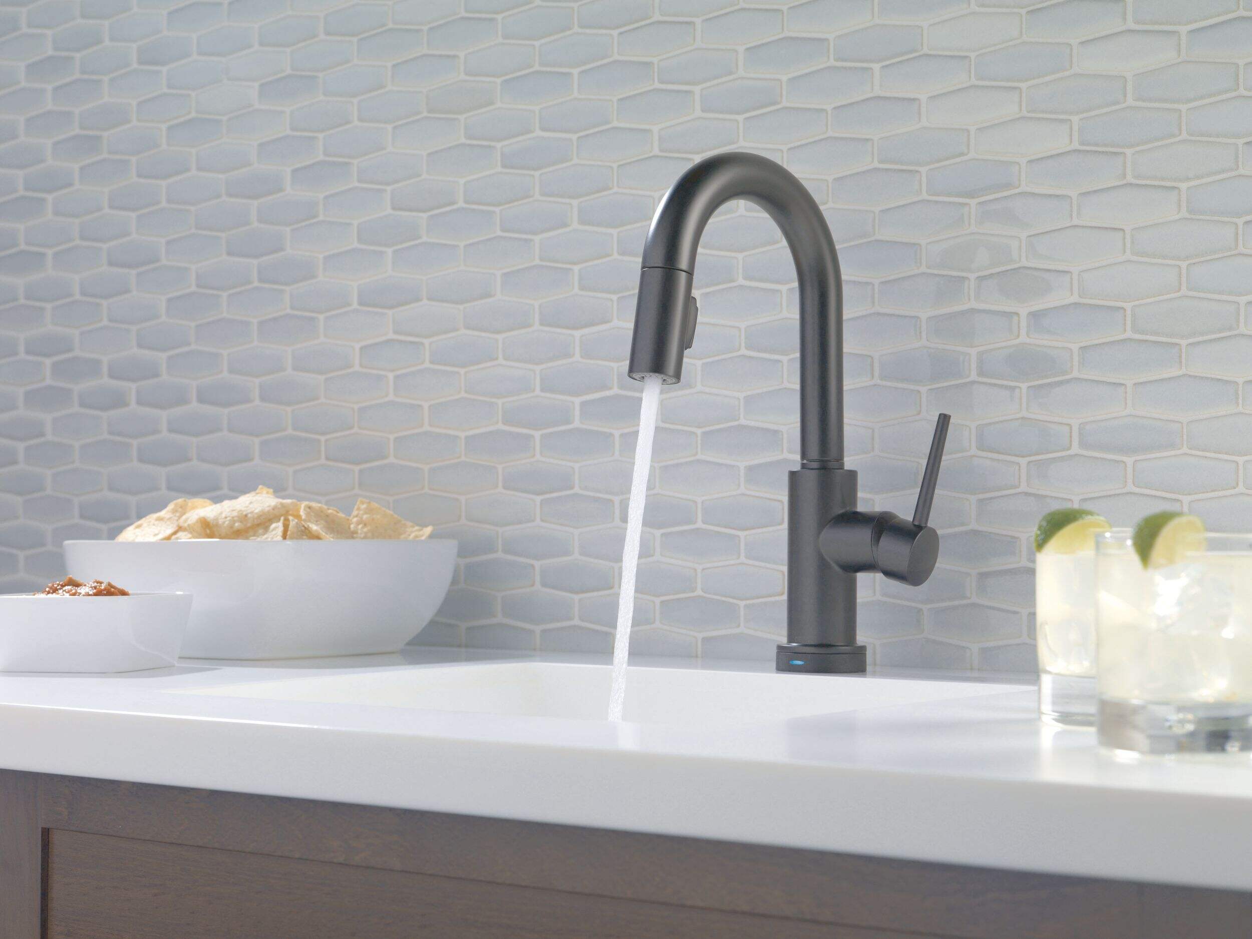 Delta Trinsic Touch2O 1-Handle Pull-Down Bar/Prep Faucet features Touch2O Technology - a simple touch anywhere on the spout or handle will start and stop the flow of water