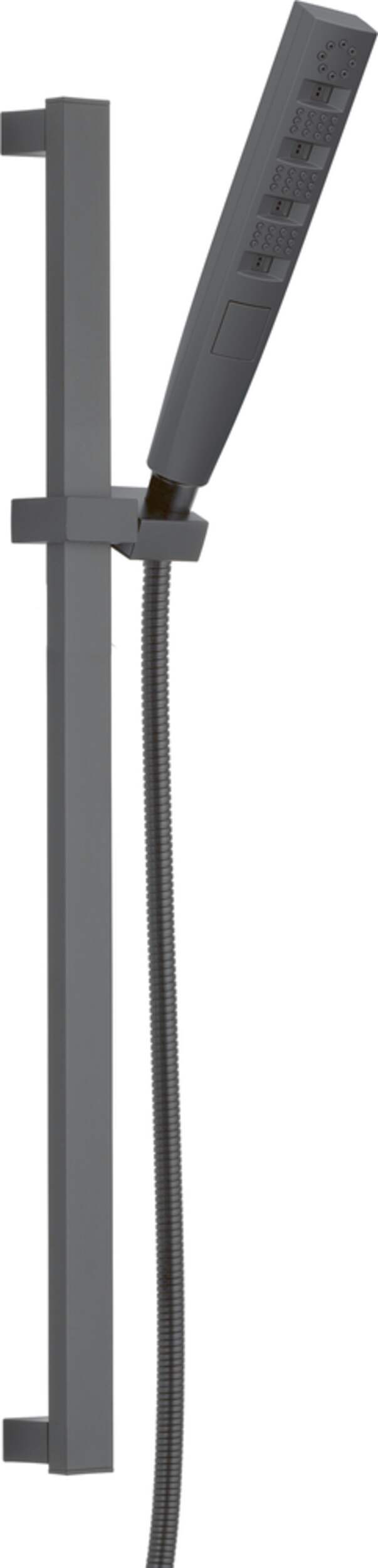 Experience a better shower with the control and flexibility of a Delta® hand shower. Great for showering yourself or your loved ones and pets, as well as for keeping your shower and tub clean. Delta® H2Okinetic® Showers look different because they are different. Using advanced technology, H2Okinetic showers sculpt water into a unique wave pattern, giving you 3X the coverage of a standard shower head.* The end result is a shower that provides more coverage, more warmth and more intensity for a truly drenching shower experience. So go ahead and indulge, because now you can enjoy the feeling of more water without using more water. The Matte Black finish makes a statement in your space, cultivating a sophisticated air and coordinating flawlessly with most other fixtures and accents. With bright tones, Matte Black is undeniably modern with a strong contrast, but it can complement traditional or transitional spaces just as well when paired against warm neutrals for a rustic feel akin to cast iron. While other products may gather unsightly mineral build-up over time, Delta soft rubber Touch-Clean® spray holes allow any mineral residue to simply be wiped away for an instantly refreshed look – with no need for soaking or the aid of chemical cleaners. The pause setting gives you ample space for shaving, lathering and other shower tasks, then easily restarts the water with the temperature where you left off. This spray setting helps you conserve water, so you can worry less about depleting your supply of hot water - and you help the environment too. *Coverage measured in accordance with EPA WaterSense® Specification for shower heads, March 4, 2010.