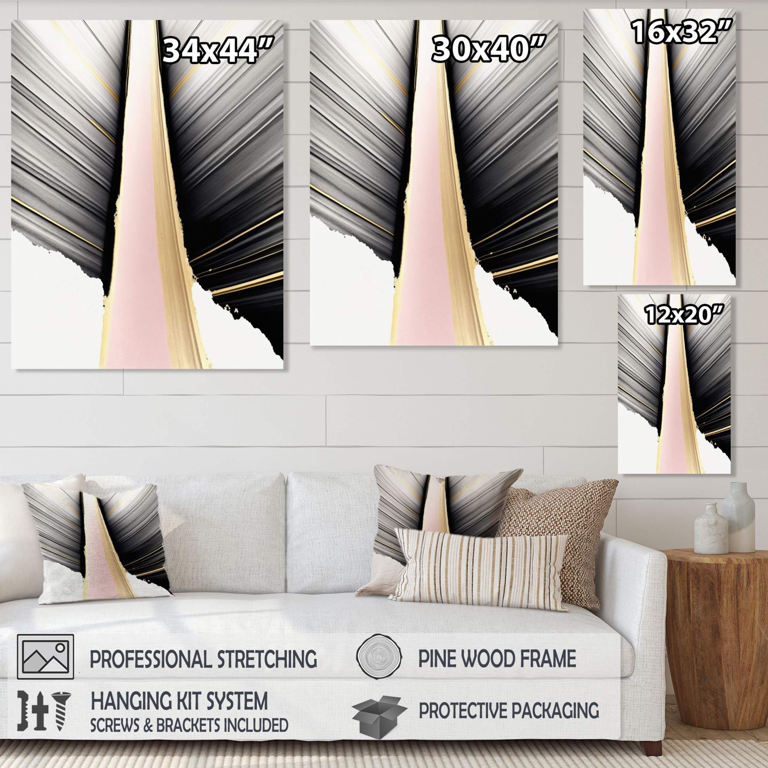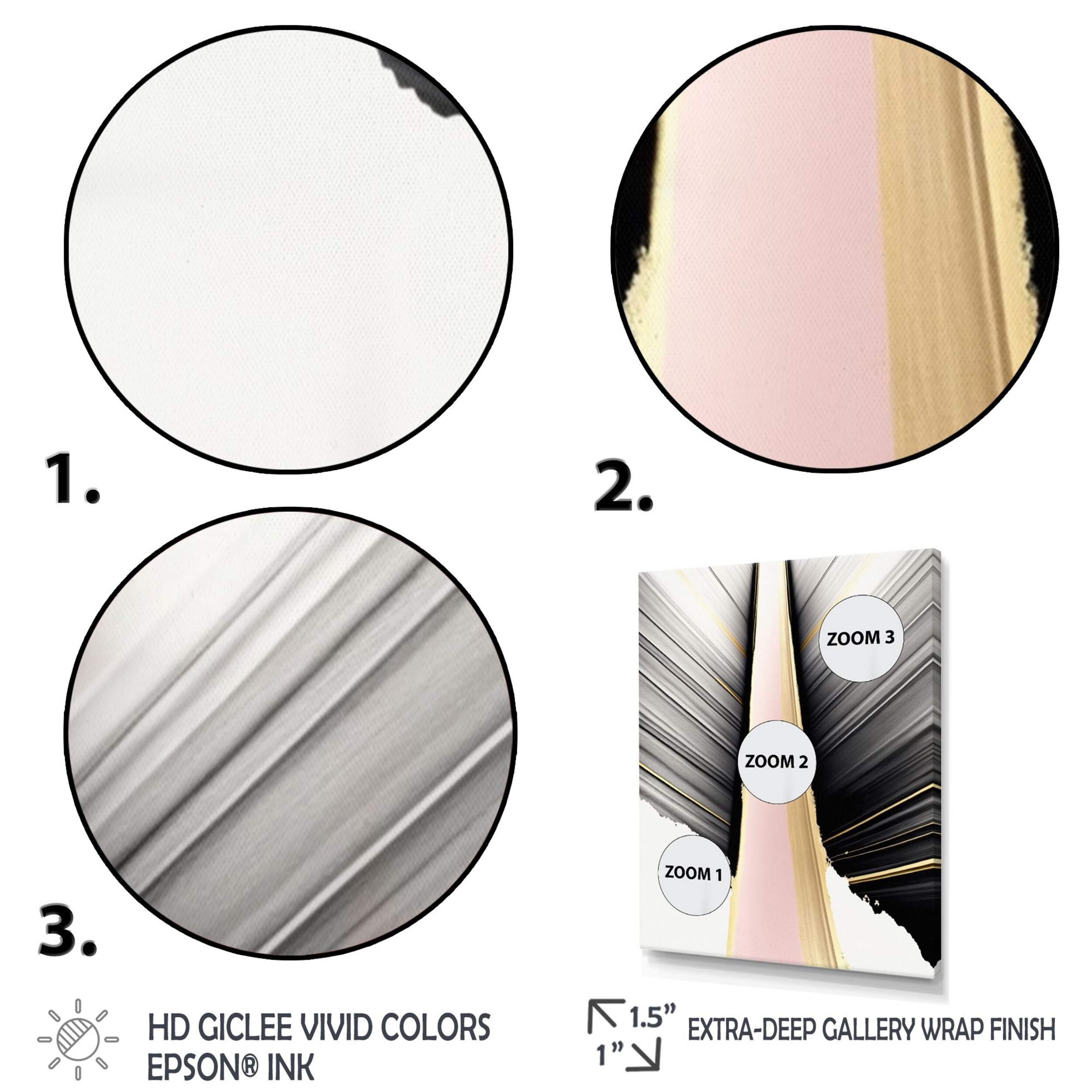 This Designart Minimalism Pink And Gold Cubic Fusion VIII Canvas Wall Art comes in a giclee print and is gallery-wrapped (the design continues on the sides), giving it a real art gallery feel