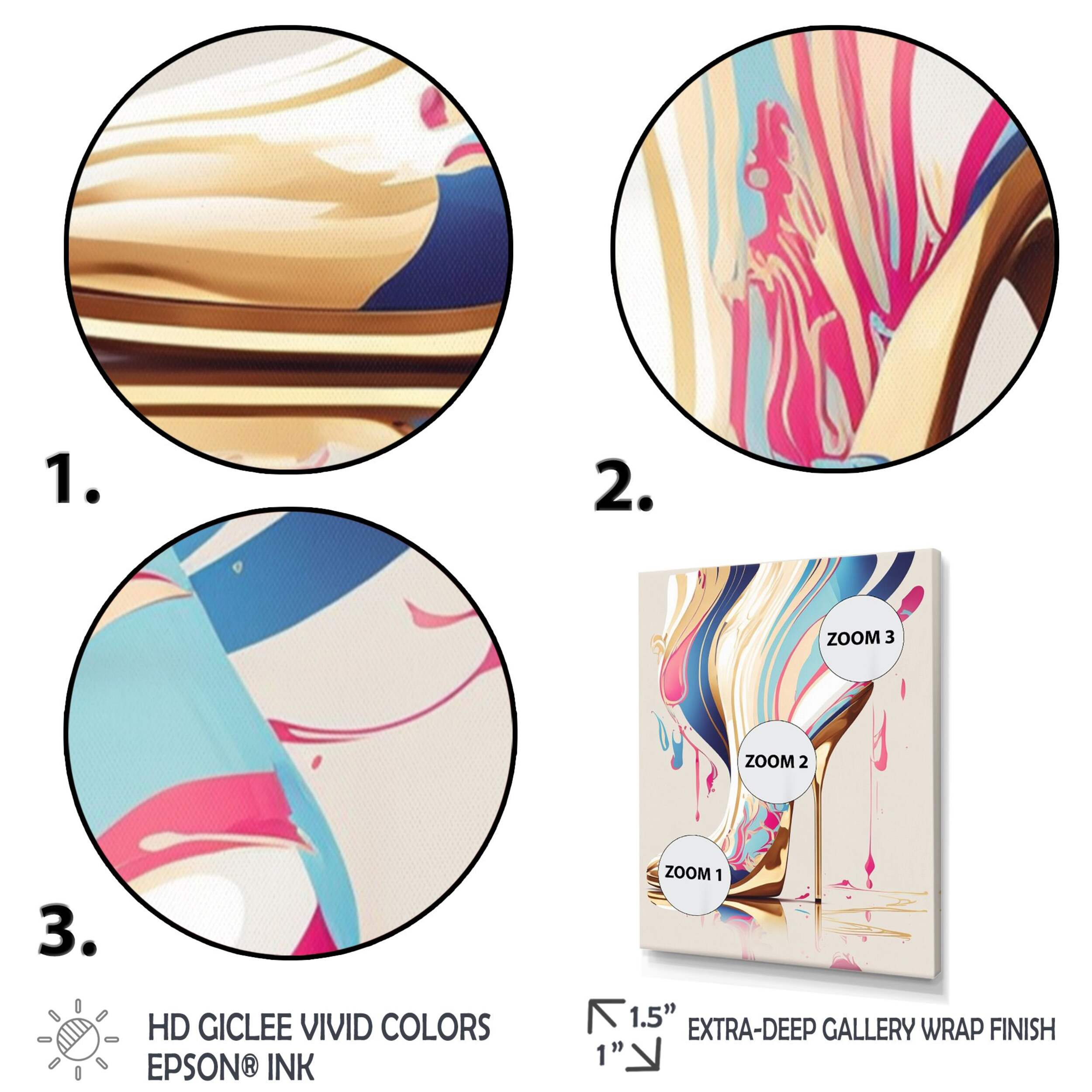 This Designart Pink and Blue Art Deco High Heel Boots I Canvas Wall Art adds a pop of colour to any room