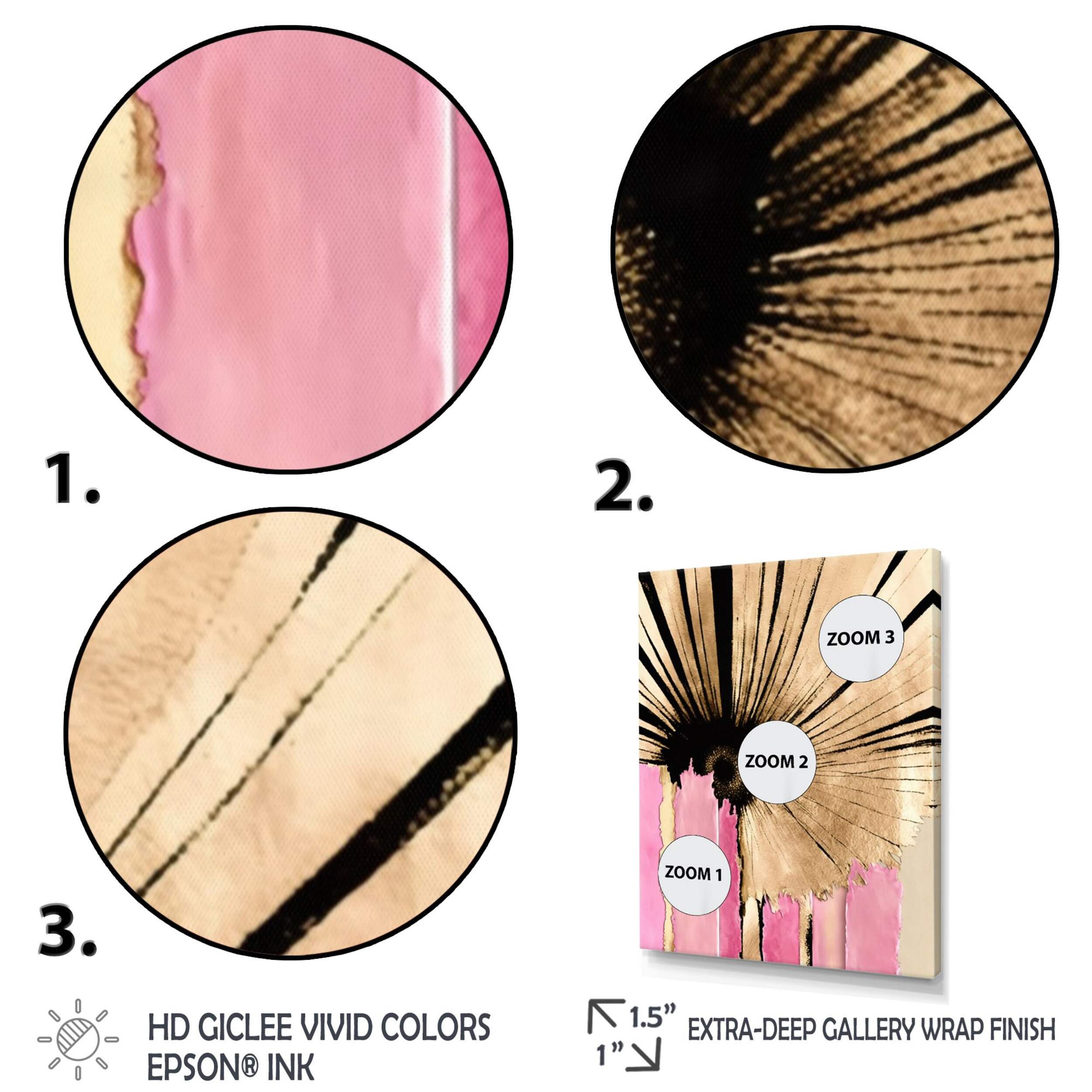 The Designart Pink Gerbera Flower On Abstract Fusion I Canvas Wall Art, 24-in x 32-in, adds a stylish, feminine touch to any space. The 24 x 32-inch abstract fusion canvas features a gorgeous gerbera daisy in a delicate pink hue against a textured grey and white backdrop. The intriguing fusion of the vivid floral subject with the geometric shapes and patterns makes for a unique piece of art that will spark conversation. Printed on high-quality cotton canvas using archival inks, this gallery-wrapped giclee reproduction has the look and feel of the original artwork. Arriving ready to hang for an easy installation, this lovely pink flower on abstract fusion wall art from Designart instantly elevates any room with a playful, contemporary aesthetic.