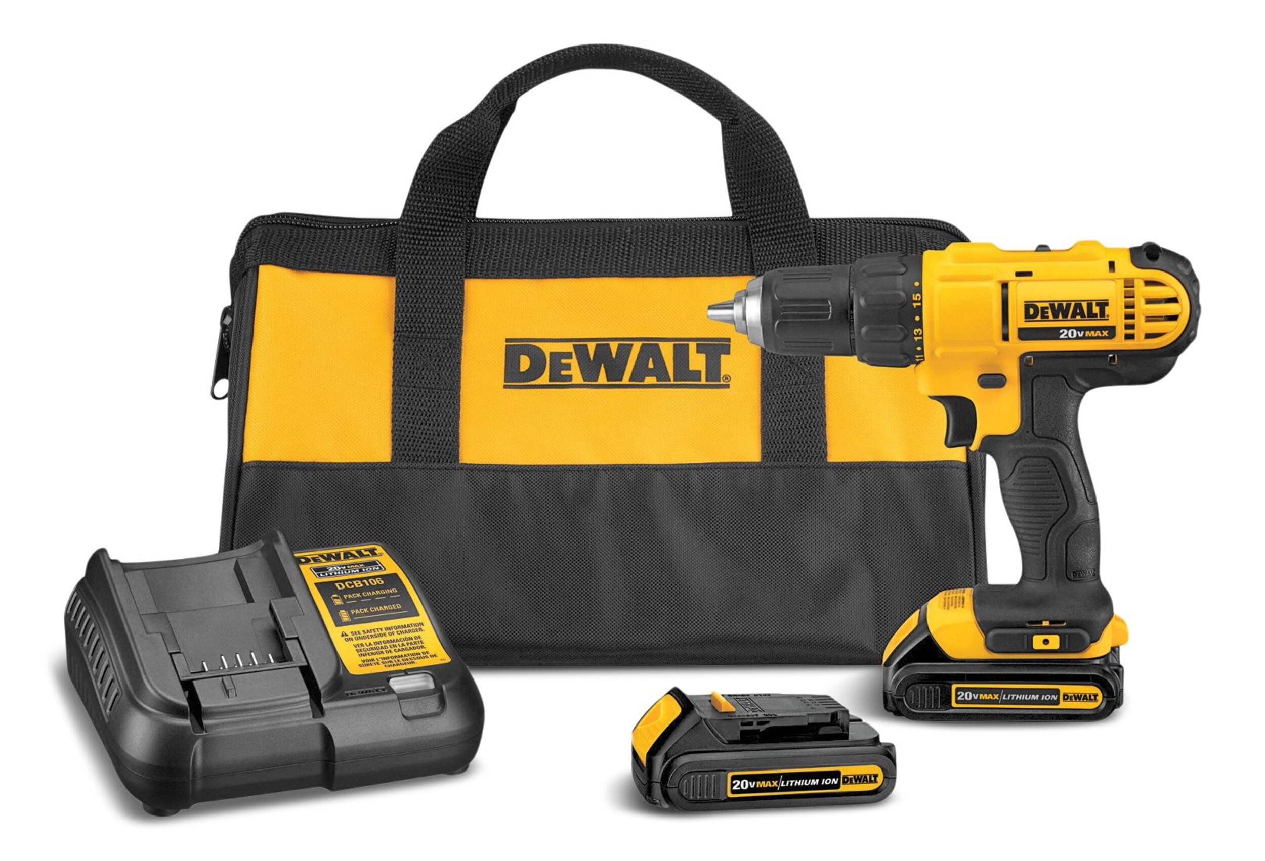 The DEWALT DCD771C2 20V MAX Lithium-Ion Compact Cordless Drill kit comes with the cordless drill, two 1.3Ah batteries, charger, and a soft case. The compact cordless drill has a lightweight design that reduces fatigue during extended use, even providing easy access to tight spaces for comfortable operation. With a high-speed transmission and variable speeds, the DEWALT DCD771 caters to a wide range of fastening and drilling applications, offering 16 clutch settings, a keyless 1/2" single sleeve ratcheting chuck, and ample drilling capacity for both wood and steel. Equipped with a built-in work light above the trigger, this DEWALT 20V drill ensures enhanced visibility and has a 20-second shut-off delay. The ergonomic handle enhances drilling tasks over long working hours, ensuring both safety and comfort.