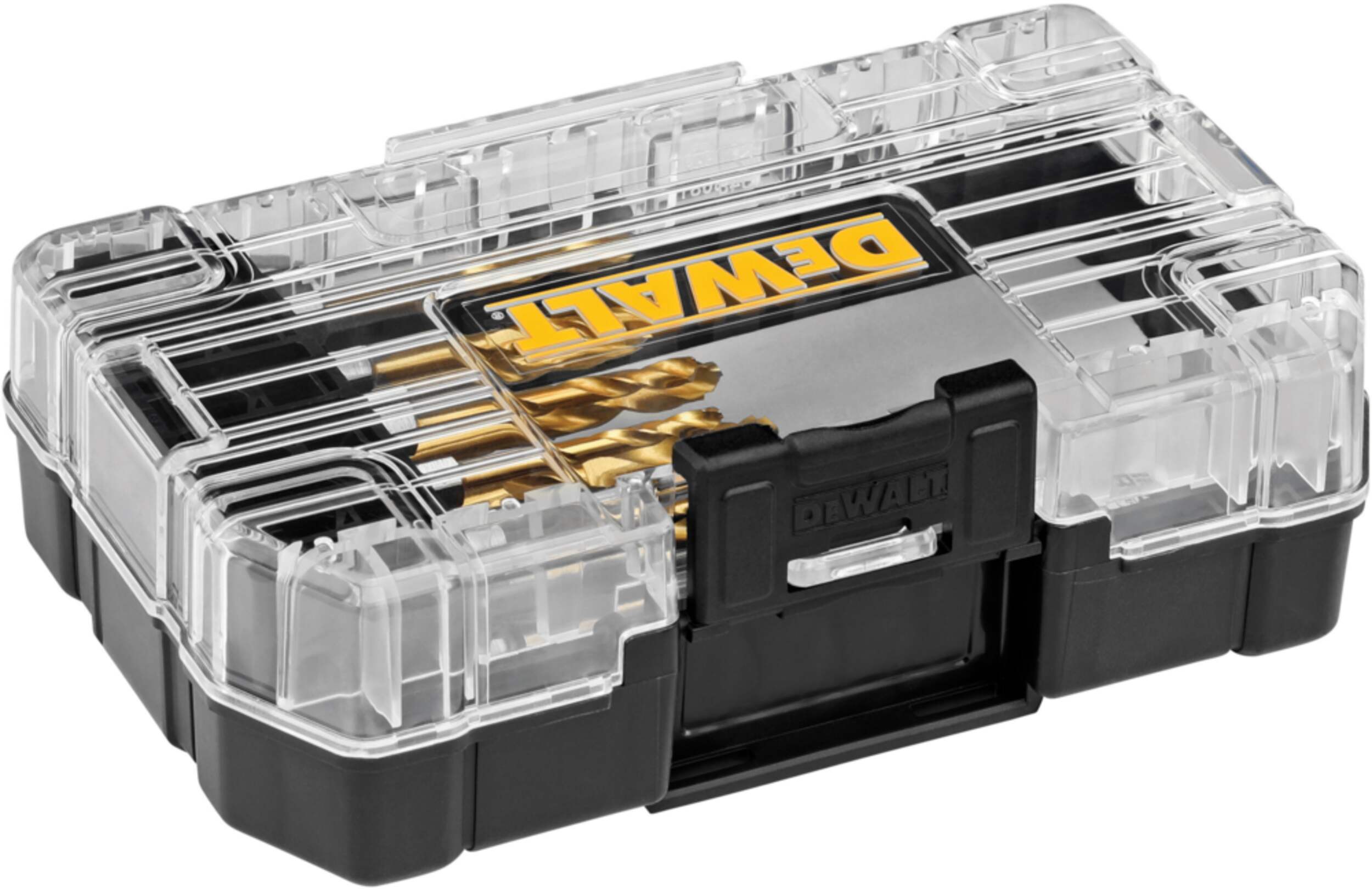 The DEWALT Impact Ready Titanium-Nitride Coated Drill Bit Set features a Pilot Point Tip for fast, clean holes with minimal burr. The titanium coating extends bit life, while the optimized flute and web taper enhance control and strength. Suitable for drilling through metal, wood, and plastic, this drill bit set comes in its own durable carrying case for easy transport and organization.