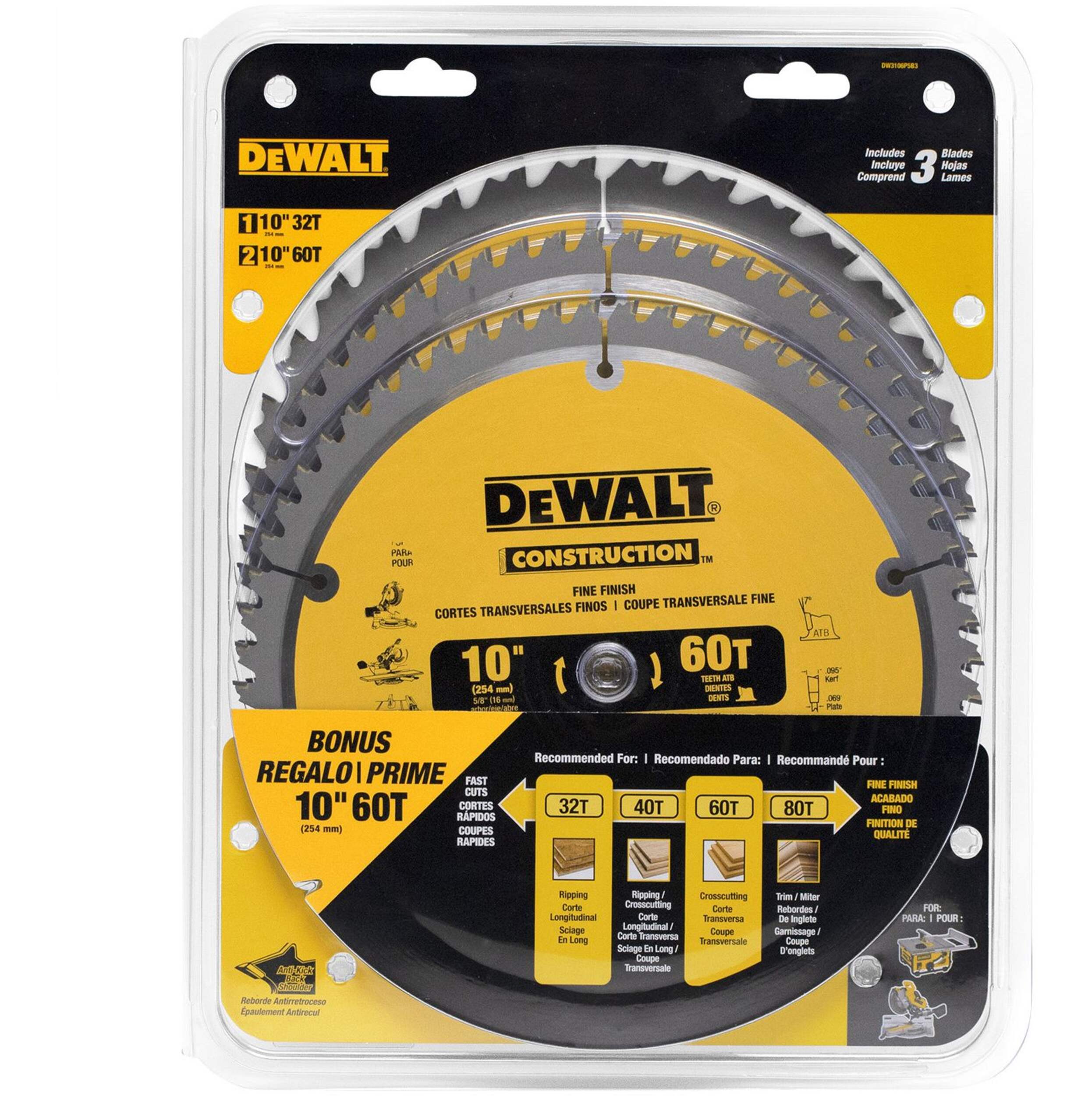 Includes (2) 60-tooth fine finishing crosscutting blades and (1) 32-tooth general purpose blade