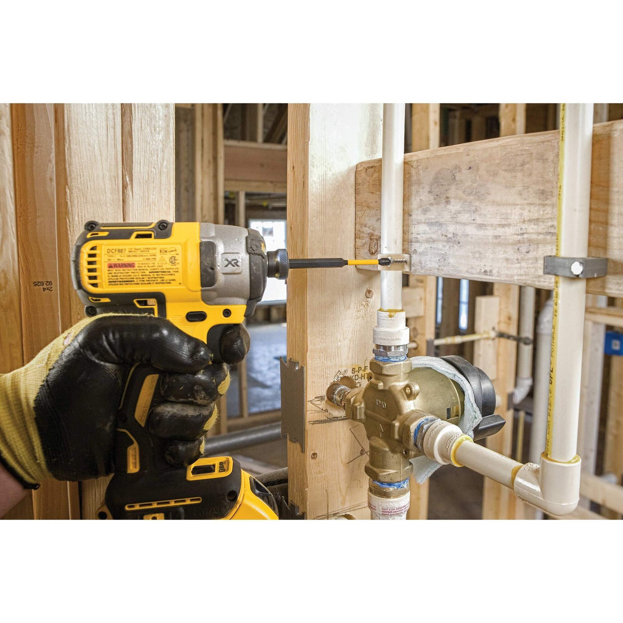 DEWALT IMPACT READY accessories deliver exceptional performance for extreme torque applications. FlexTorq bits feature an Extended FlexTorq Zone* to transfer optimal torque in hard joint applications, providing durability & longer life.** The bit tip is CNC machined for a precise fit, reducing cam-out under torque.