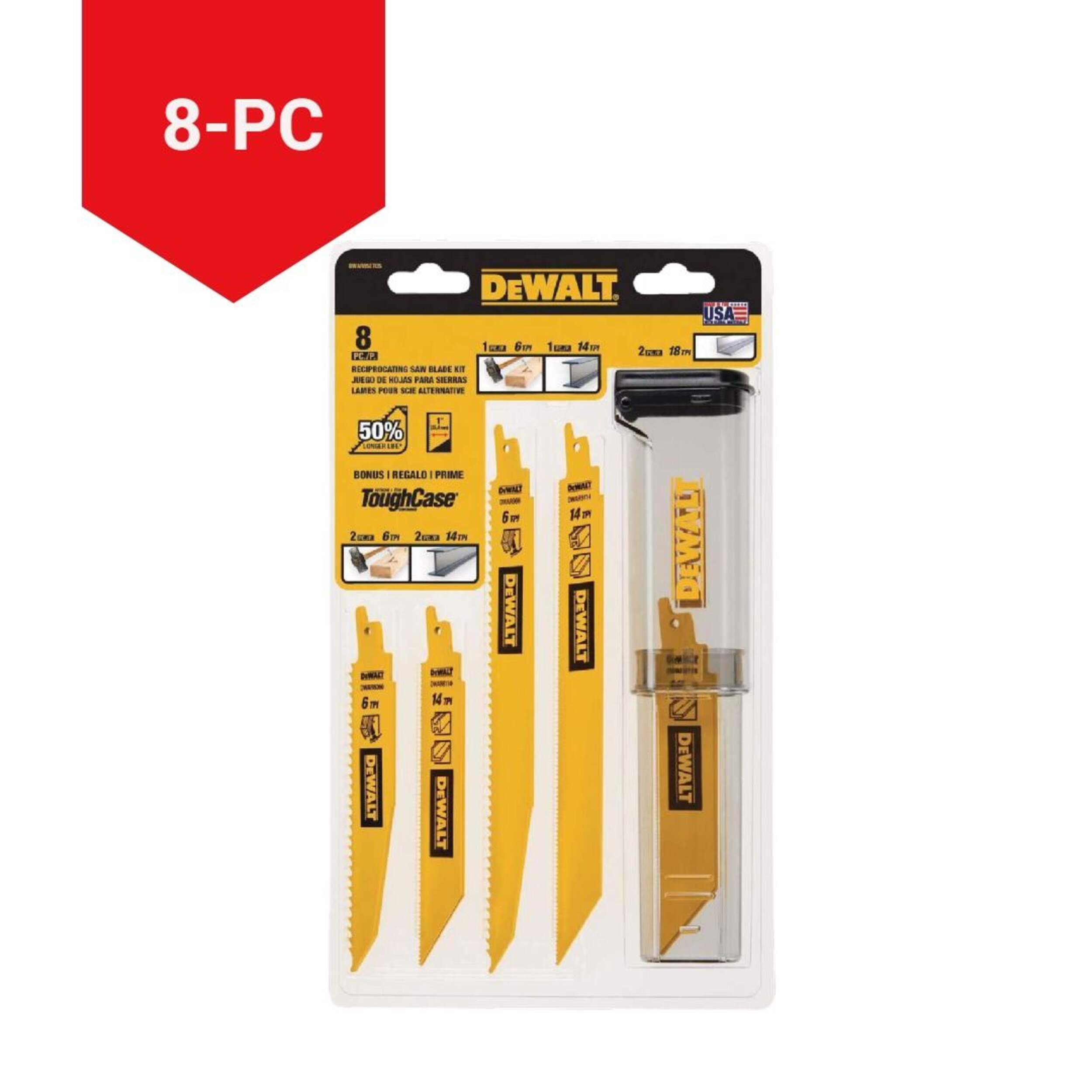 Unleash powerful, precise cutting with the DEWALT Reciprocating Saw Blade Set. Engineered for efficiency, these blades feature patented tooth forms optimized for rapid and smooth cutting. The 1-inch blade profile guarantees straight, clean cuts, while the robust body of the demolition blades enhances durability, allowing them to withstand tough conditions. Crafted with dual metal construction, these blades promise long-lasting performance and exceptional resilience, making them an essential addition to your toolkit for any cutting task.