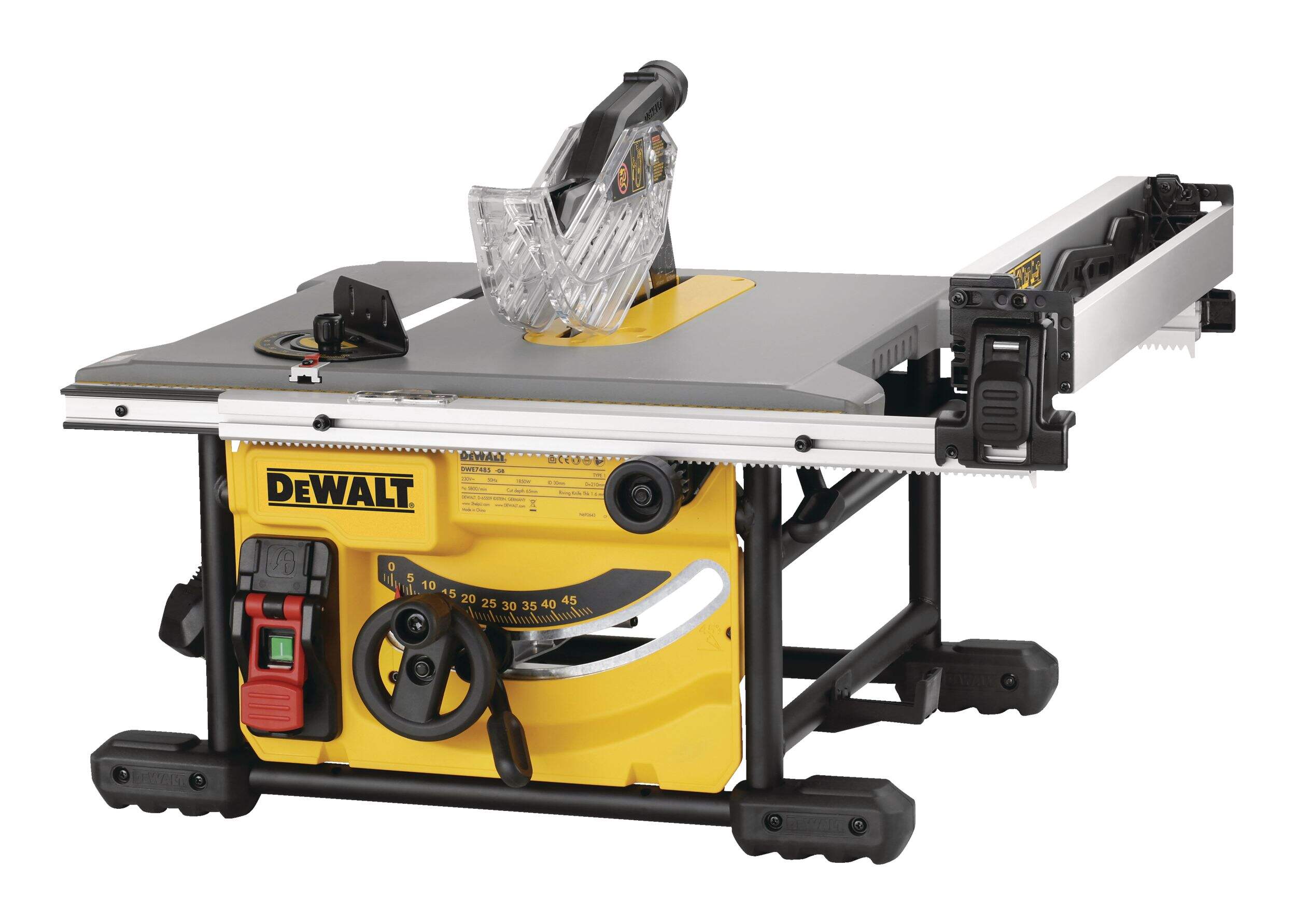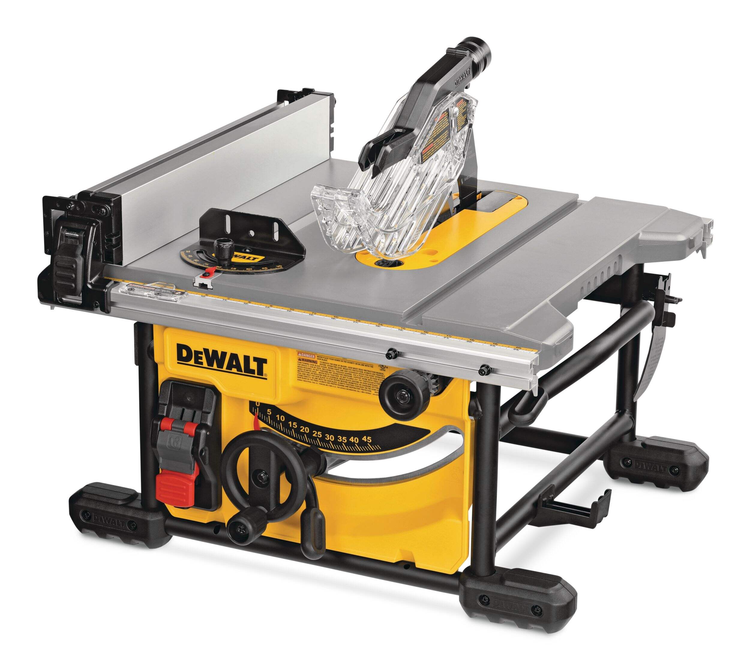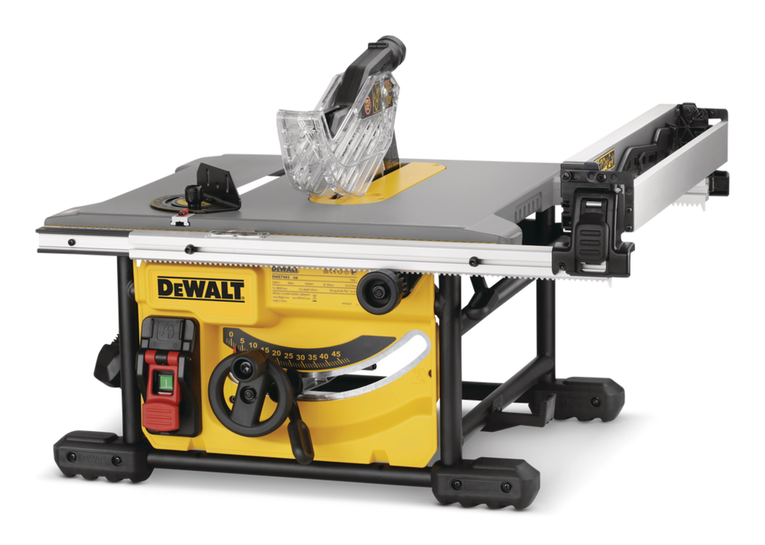 Create precision cuts, even in large sheets of plywood, using the DEWALT DWE7485 15 Amp Compact Jobsite Table Saw. Suitable for a variety of applications, the generous 8-½-in table saw is ideal for use in the home workshop or the job site. With sturdy construction, a powerful motor and a telescoping rack and pinion fence for easy adjustments, this table saw has the capacity to handle a 4 x 8-ft sheet with ease.