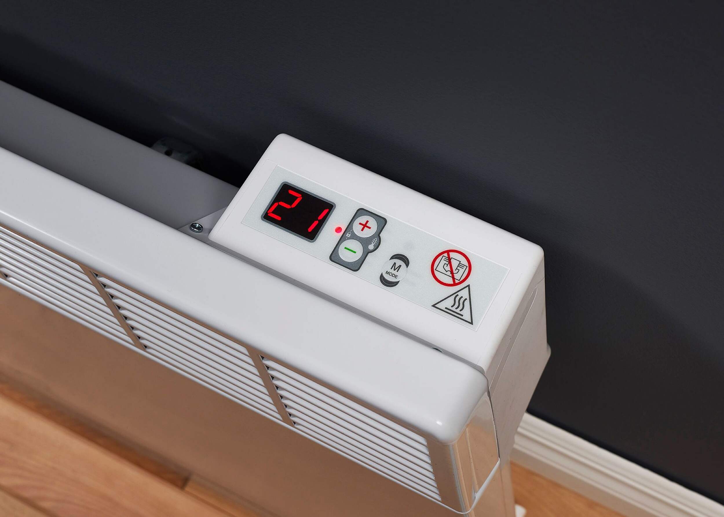 Get an electrical convection heater that is both simple and efficient while providing heating and increased comfort without losing space in your home. The FOR series is available in four wattages so picking the right amount of heat for your space is easy - this is the 750W unit with the smallest width. Once you choose your heater, you can to select from four different modes: Comfort; Economy; Frost protection (45°F (7°C)); and Program. Warm your space with a convection heater that looks sleek, works beautifully, and provides you with options for varying daily needs.