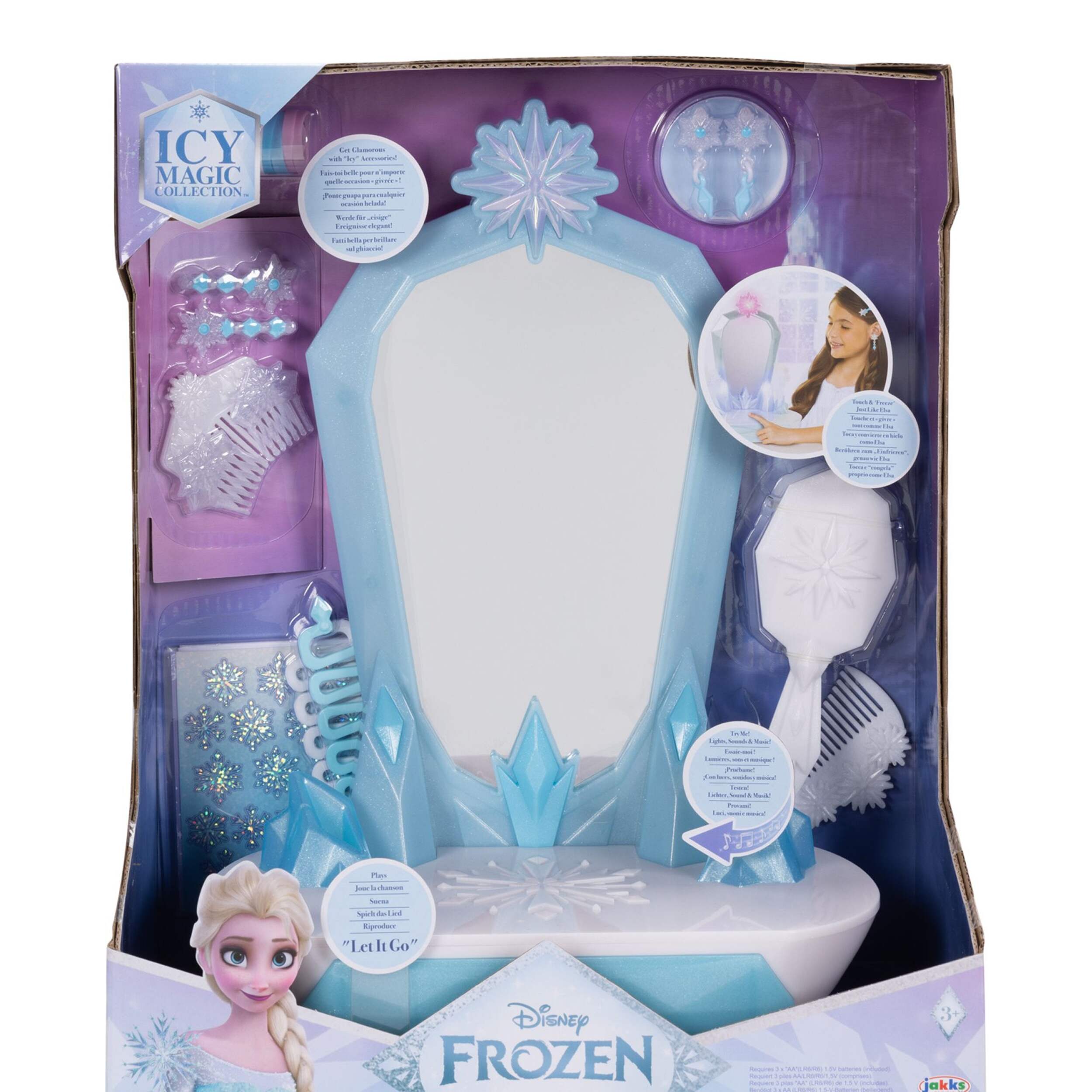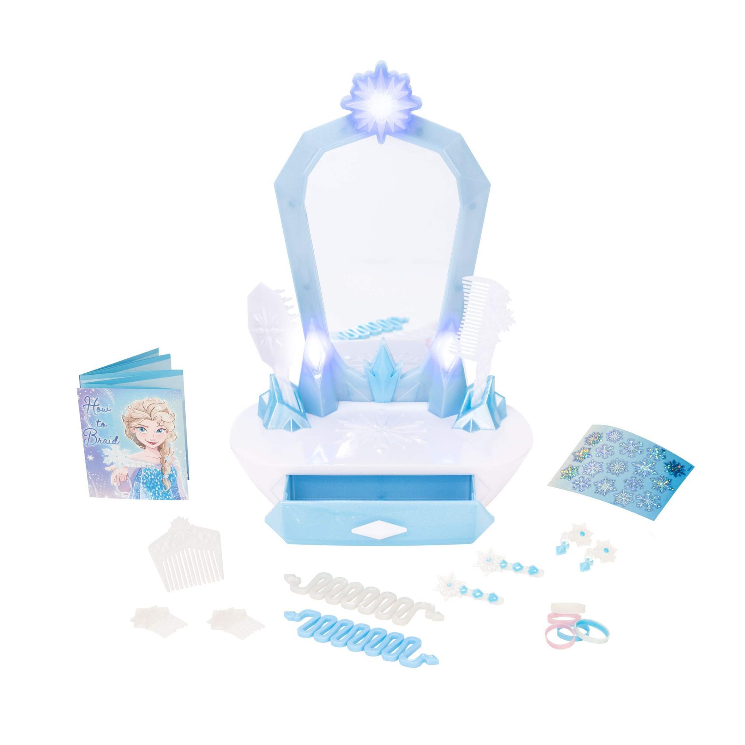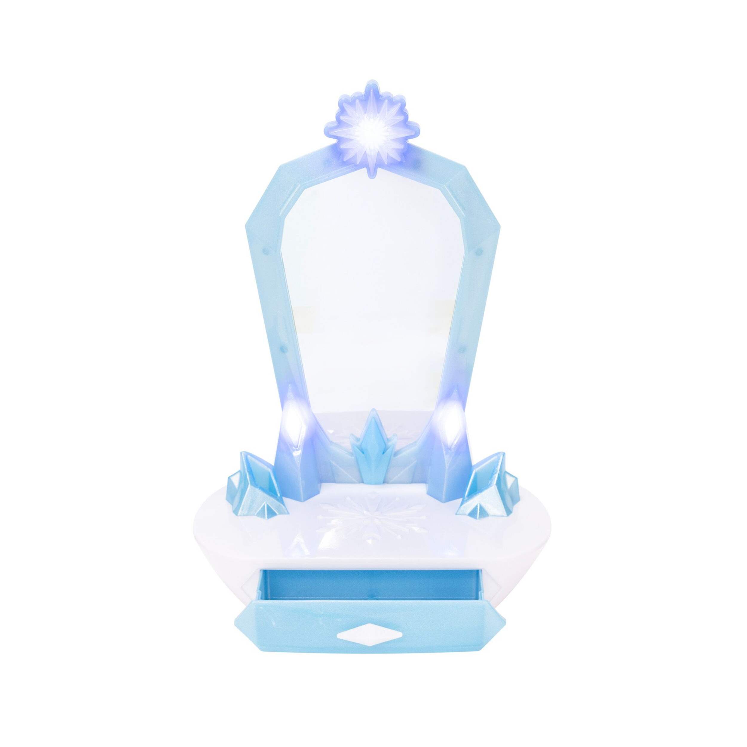 Imagine you have Elsa’s power to create ice and snow! Simply touch the snowflake center on the vanity tabletop and suddenly your very own magical beauty and adventure station lights up like blue “ice” and makes “freezing” crackle sounds. Open the drawer for an extra surprise - “Let It Go” plays just for you!