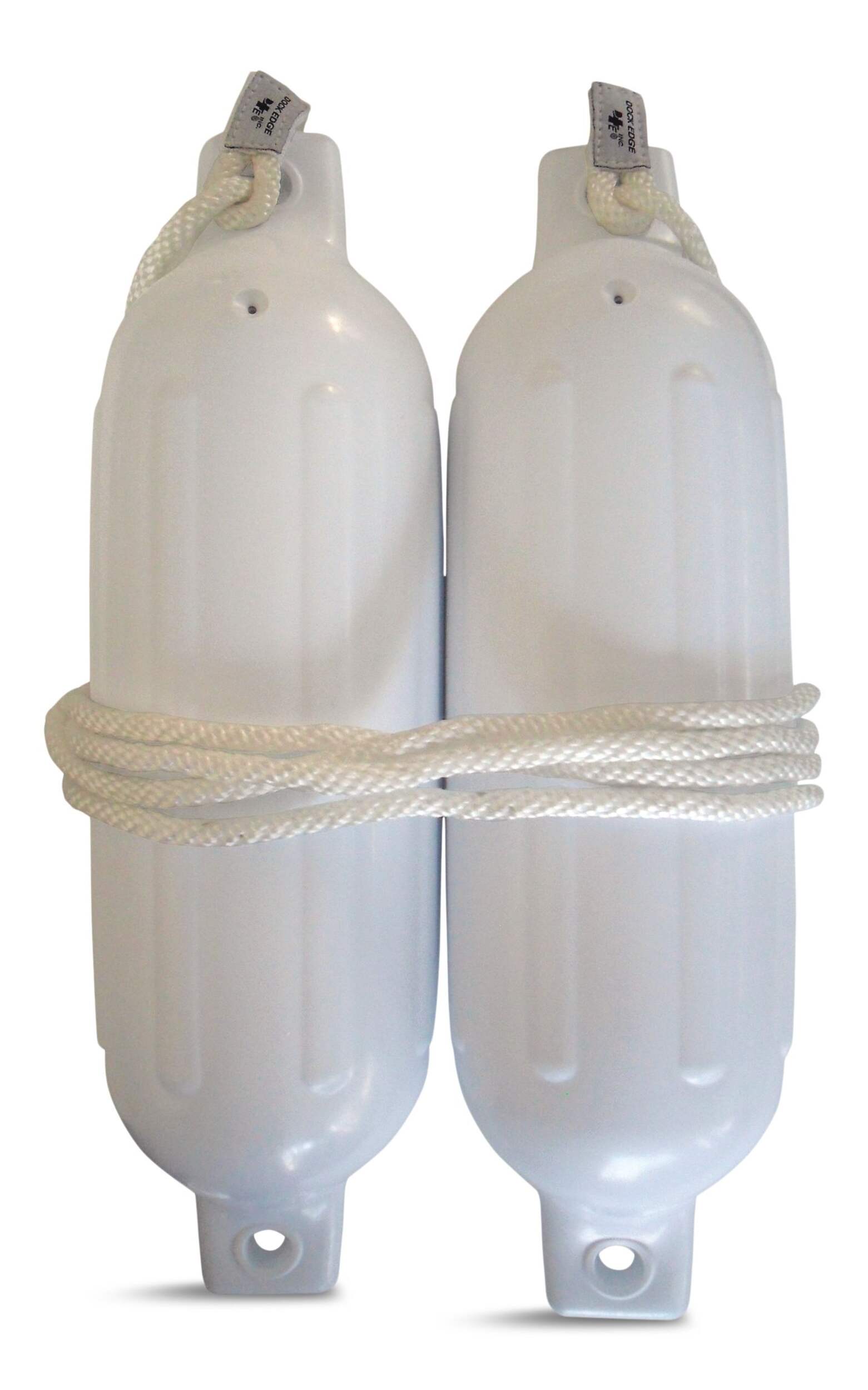 Dock Edge PVC Ribbed Twin Eyes Boat Fenders, 2-pk, White, 5.5-in x 20-in
