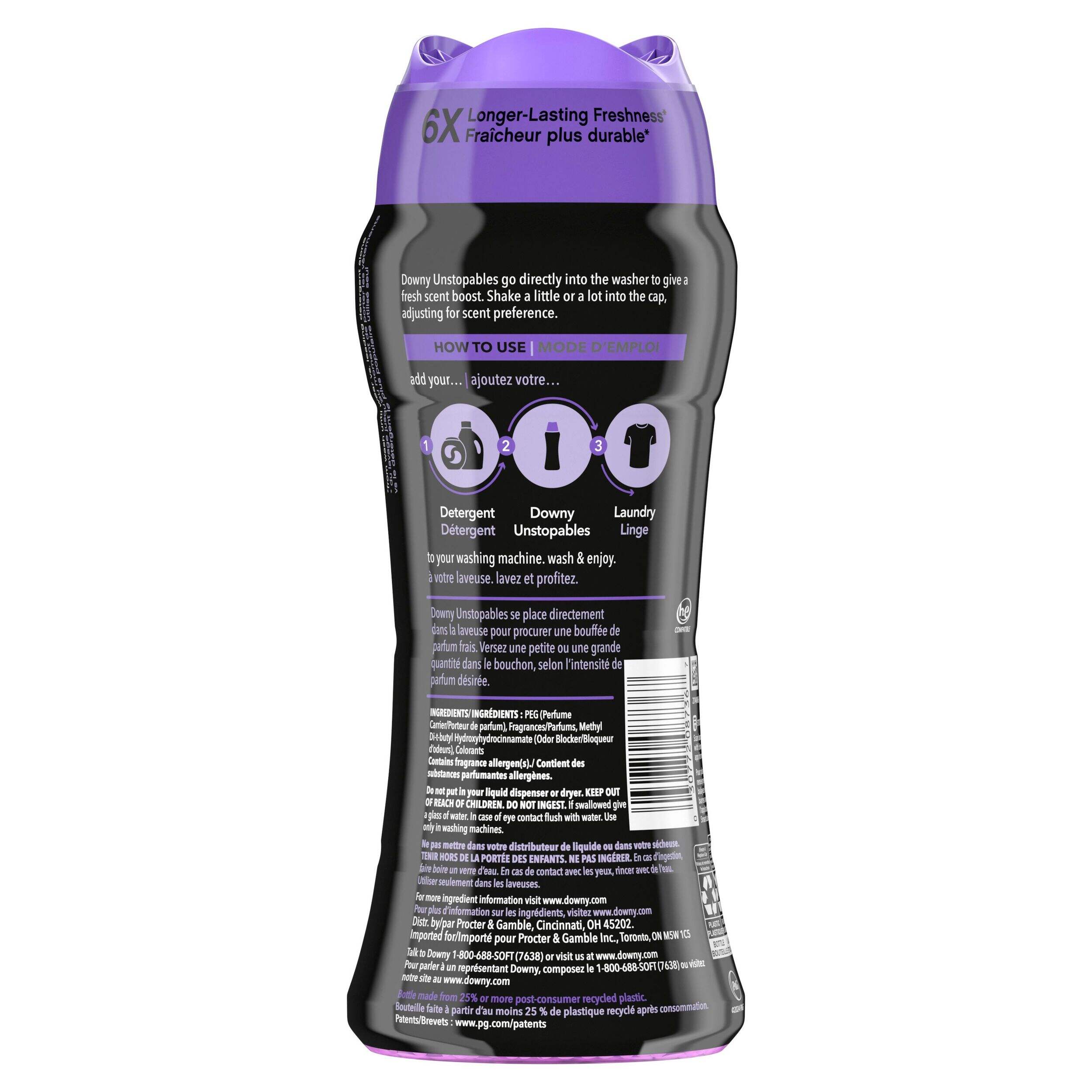 Give your clothes an incredible bright lavender scent with Downy Unstopables Lush In-Wash Laundry Scent Booster Beads. The Downy Unstopables formula contains Antioxidant Technology to protect your clothes against smelly odors while providing 6X longer-lasting freshness after every wash. Enjoy the refreshing Lush scent of bright lavender mixed with vanilla and cedar-inspired undertones. Just pour and toss into your washer drum to give your clothes an incredibly fresh scent from the #1 scent booster brand, Downy.