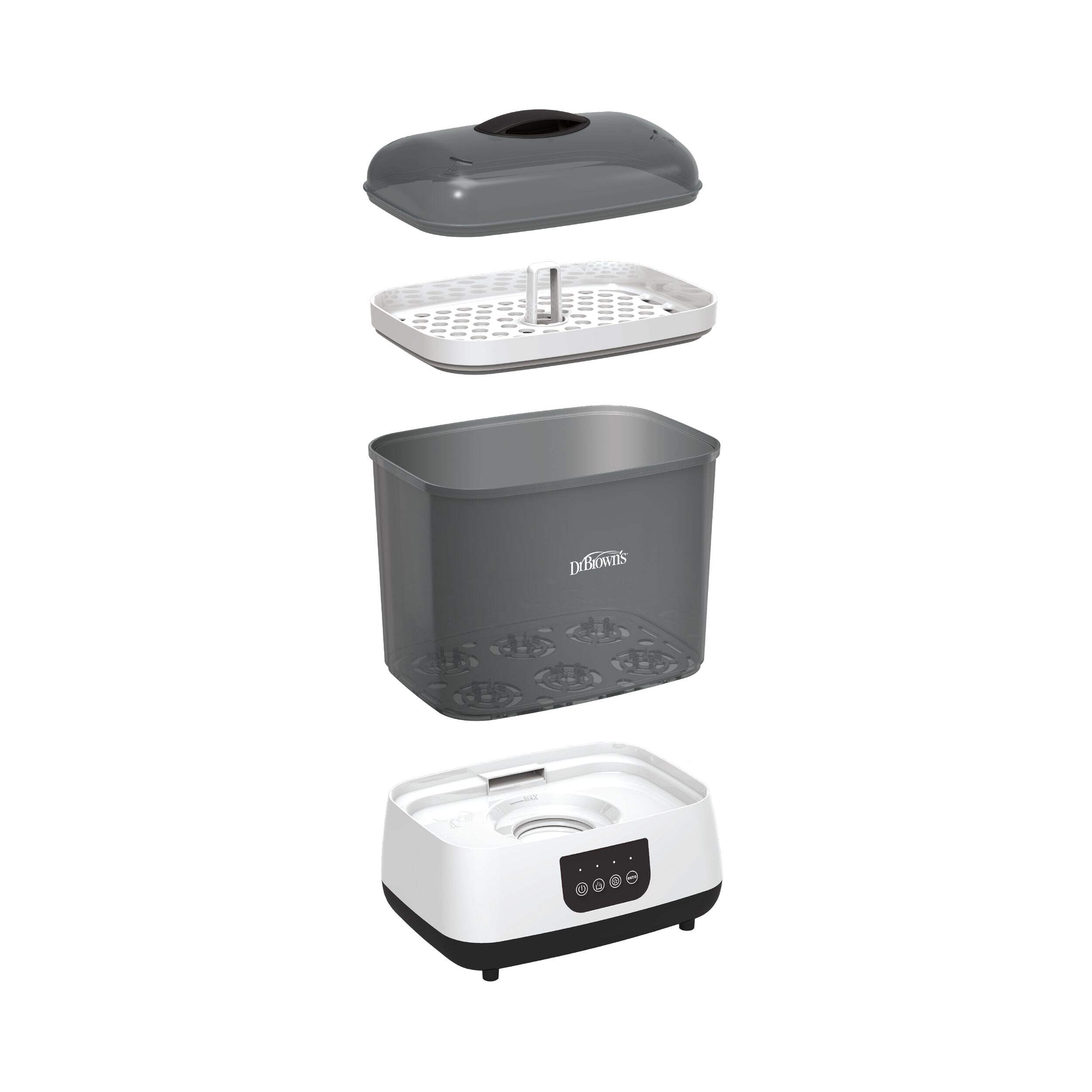 Steam sterilize and dry up to six baby bottles at once, plus breast pump parts, pacifiers, and teethers