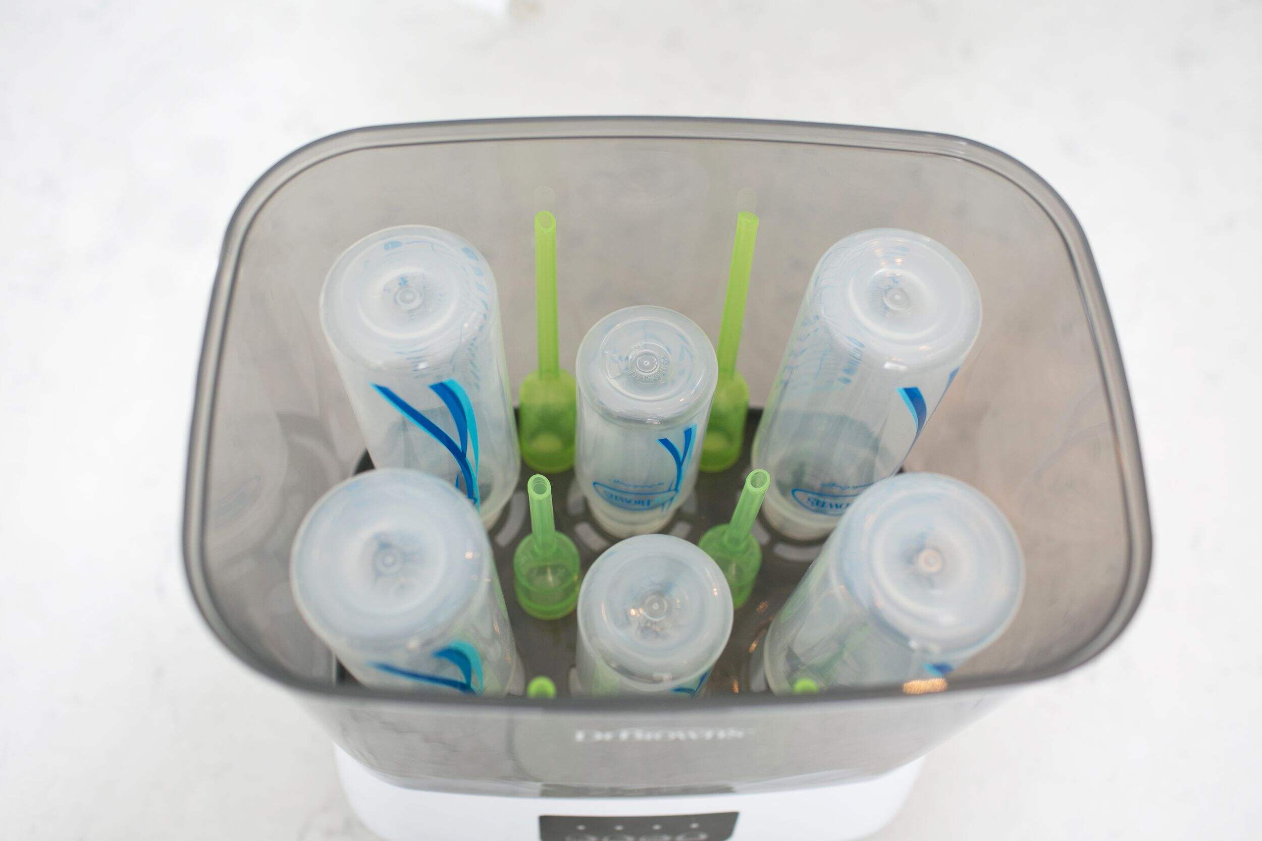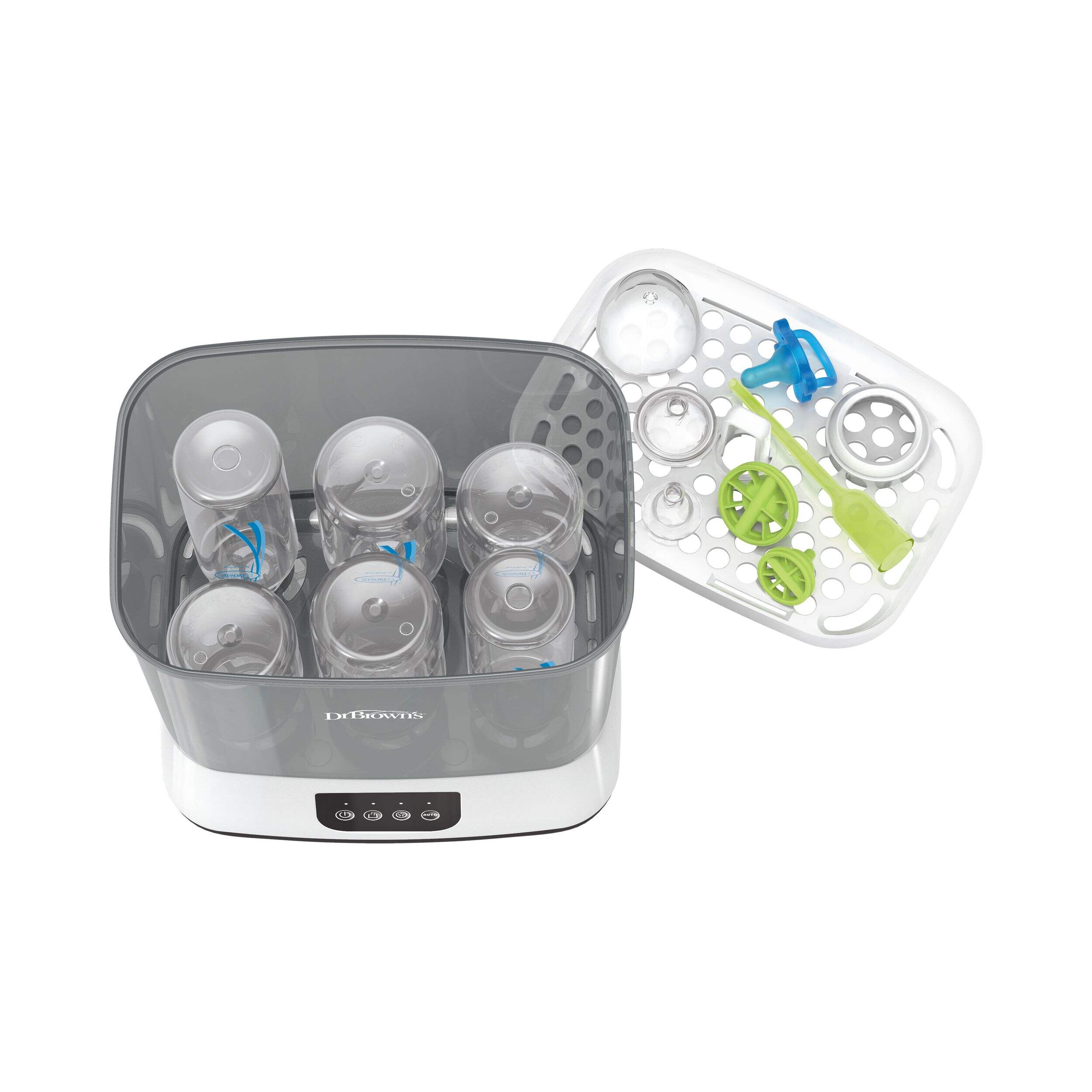 Steam sterilize and dry up to six baby bottles at once, plus bottle accessories, breast pump parts, pacifiers, teethers, and more. Steam sterilization eliminates 99.9% of bacteria, mold, and the yeast that causes thrush.