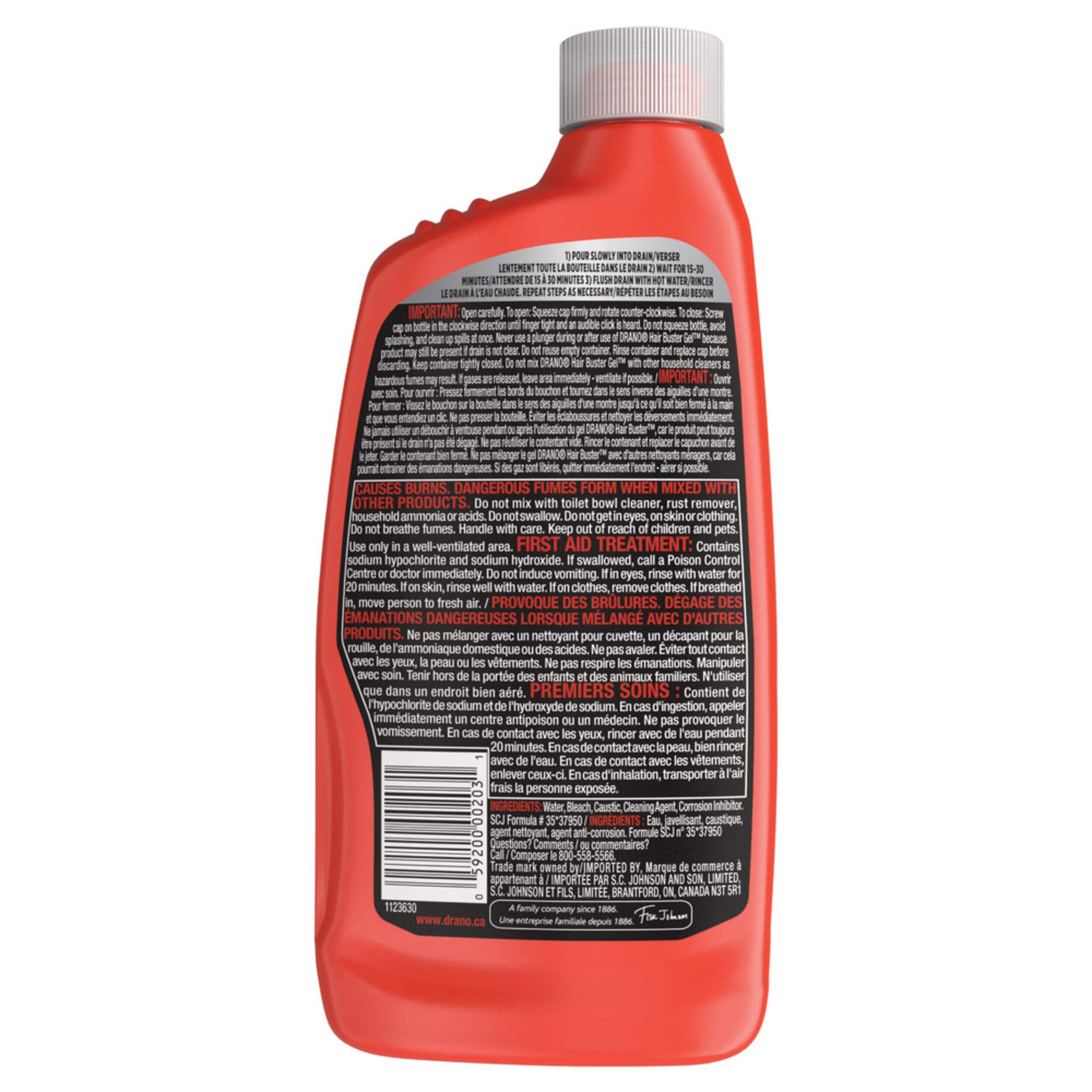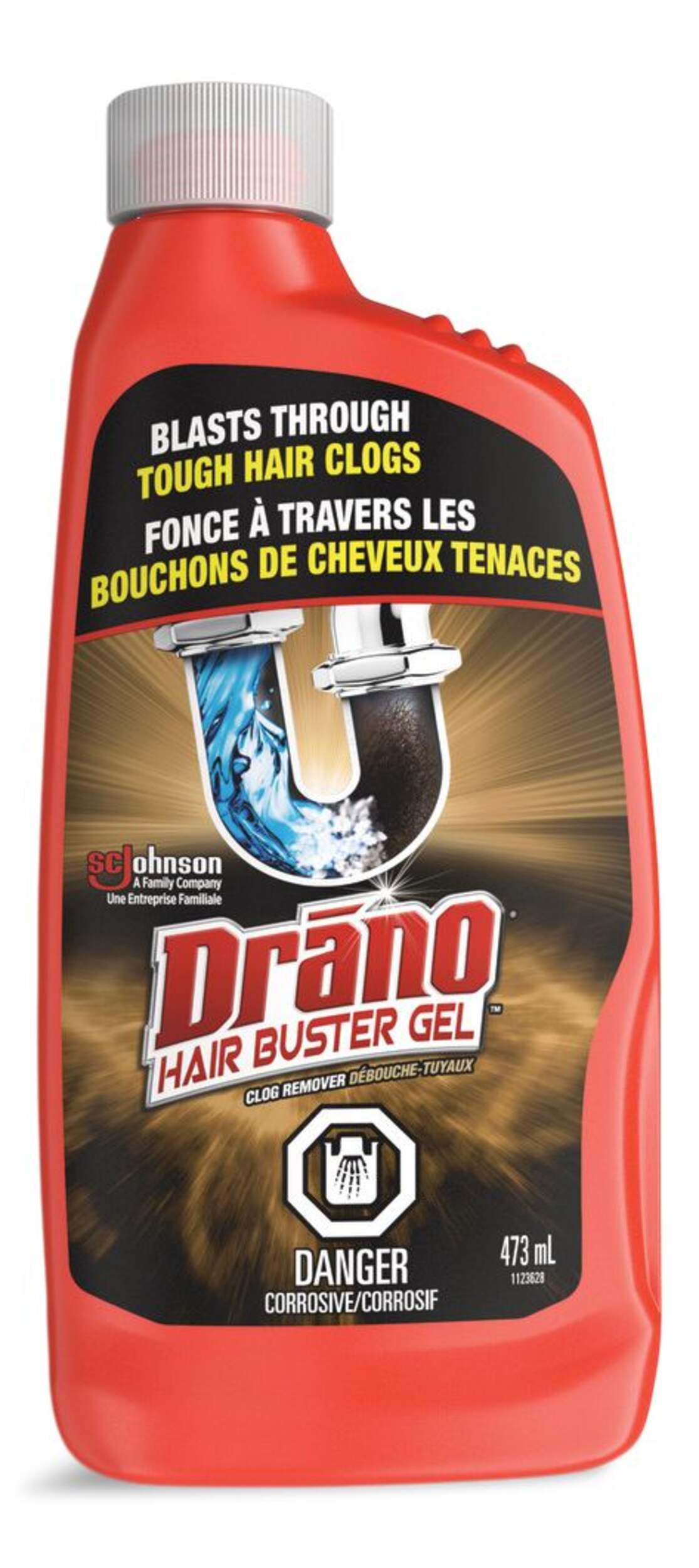 New Drano Hair Buster Gel features a thickened bleach formula that's both tough and effective on hair clogs. It cuts right through standing water, clinging to tough clogs and blasting them fast. The gel gets to work right away, dissolving pesky hair on contact. Clogs happen, but Drano will always be there to take care of them.