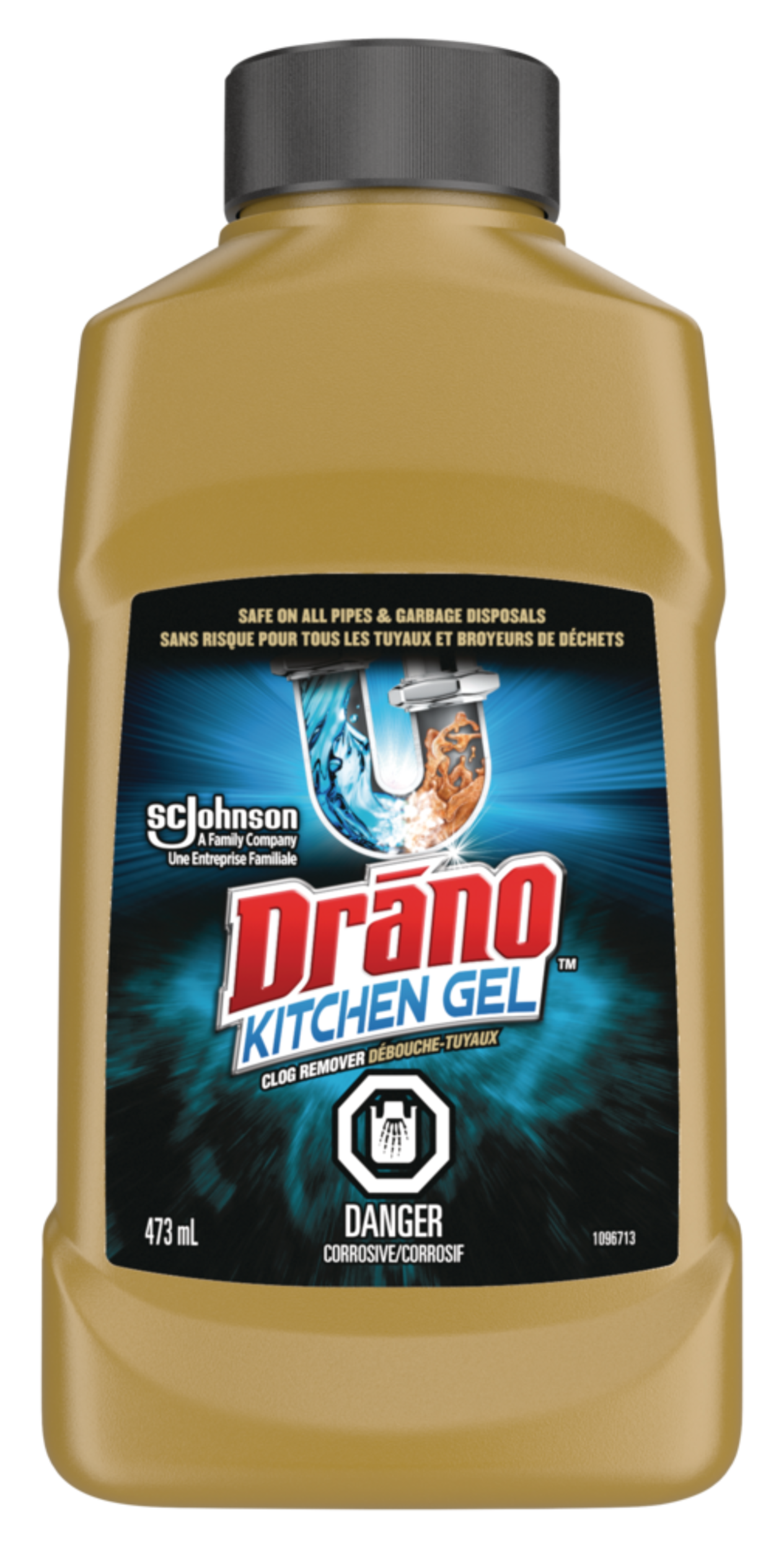 Drano Kitchen Gel Clog Remover is specifically formulated for greasy kitchen clogs. It cuts right through standing water, clinging to any tough clogs and blasting them fast. This kitchen gel works great to remove blockages caused by cooking oil or bacon grease. Formulated for professional strength, the gel blasts through tough kitchen clogs, which can often harbour odours, germs, and bacteria.