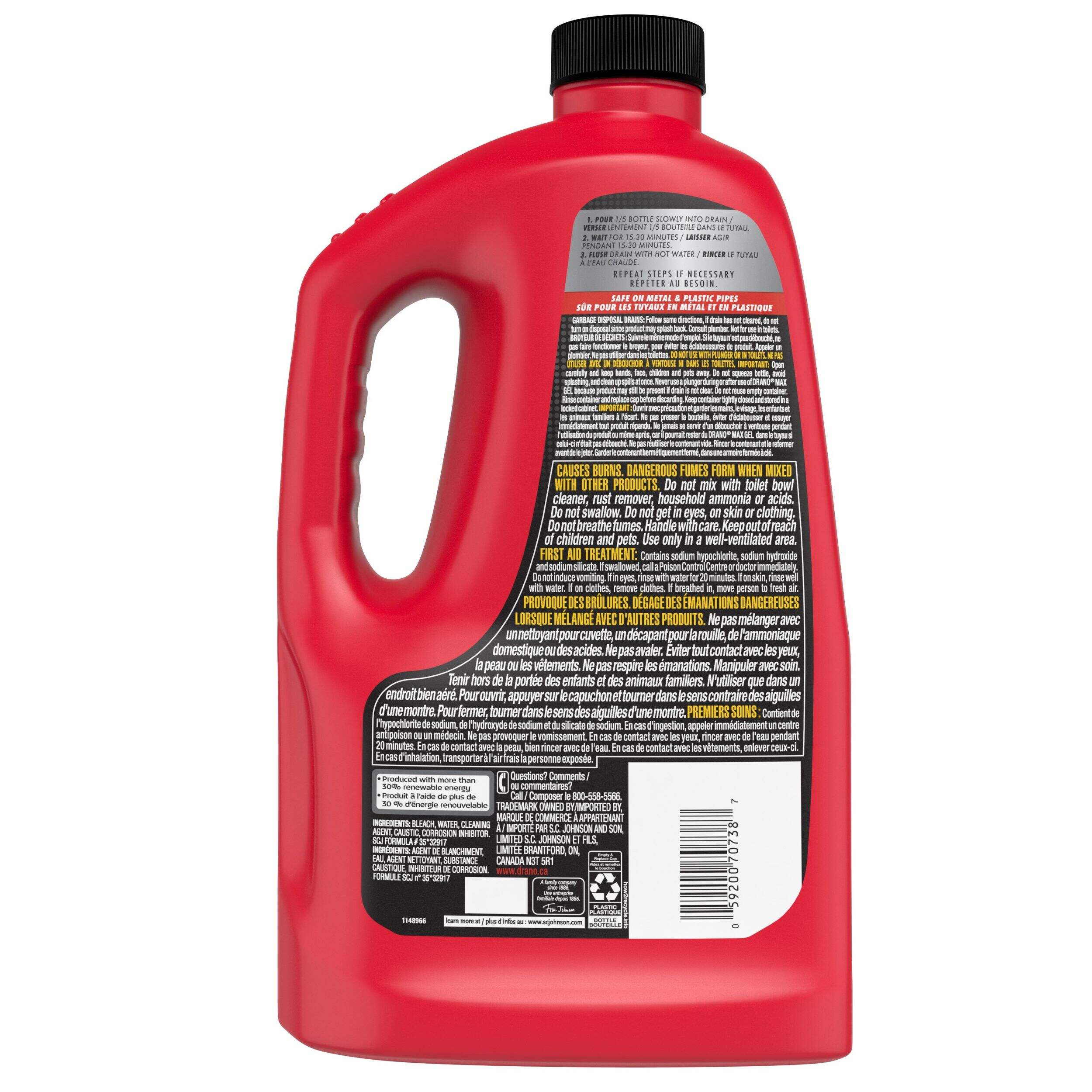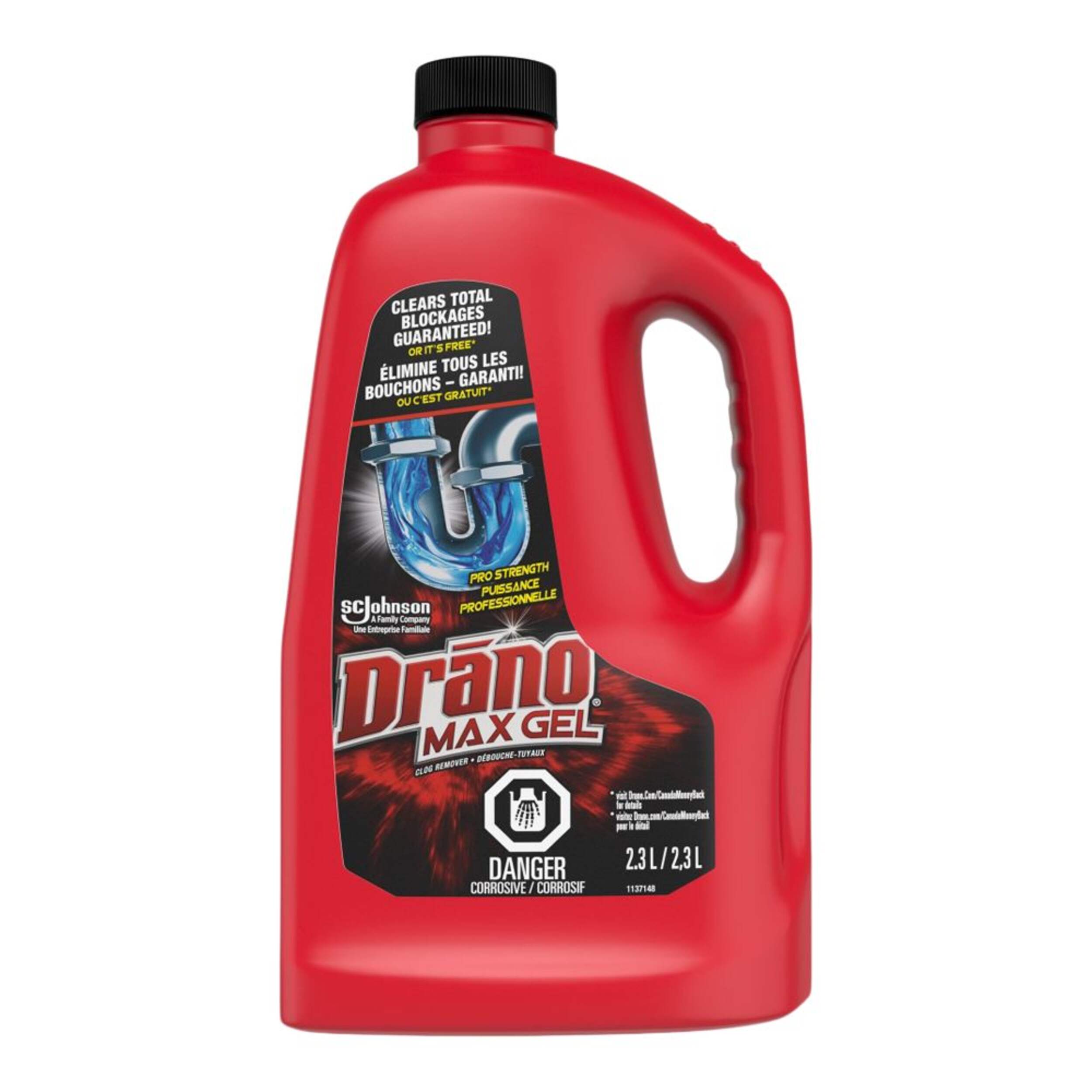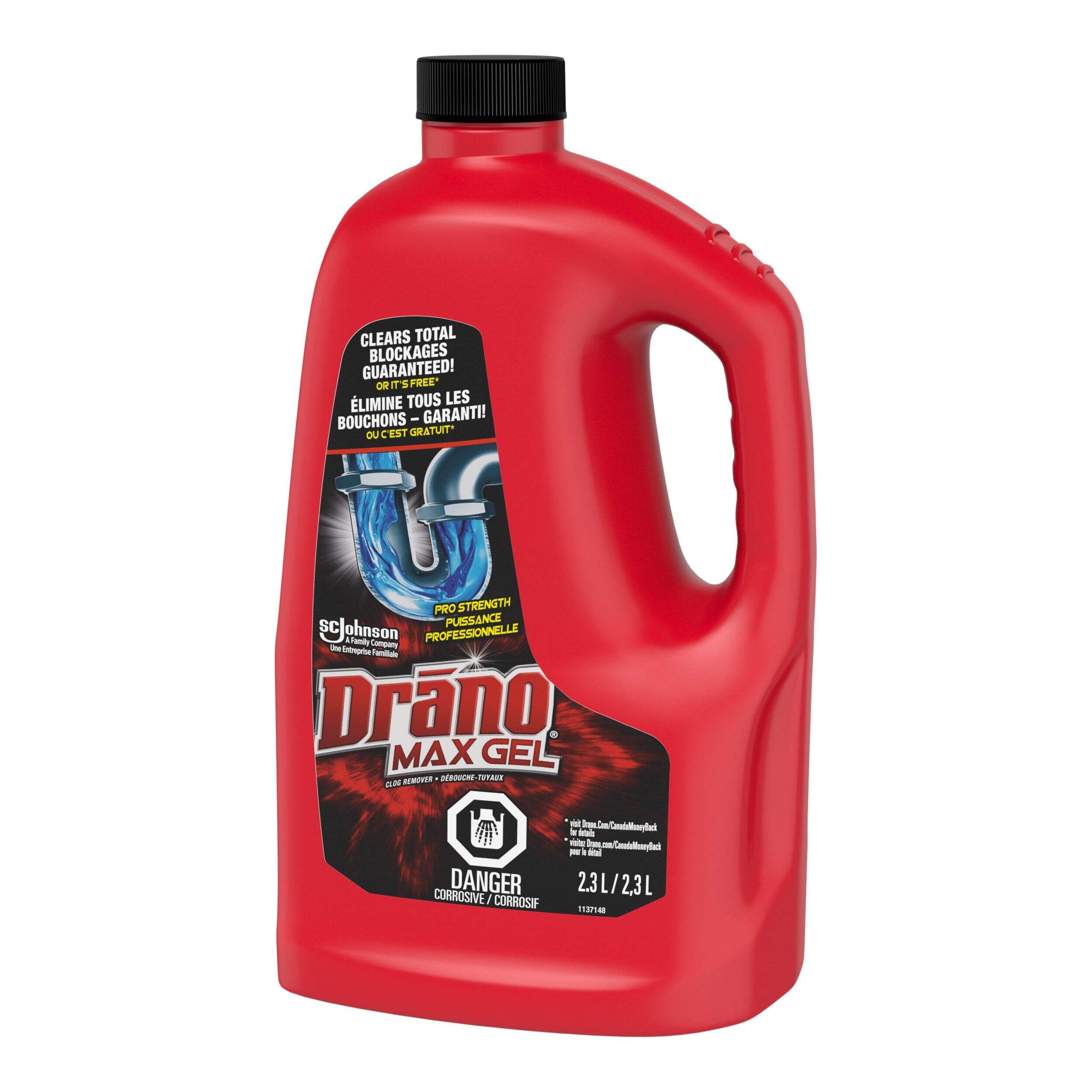 The thick bleach formula in Drano Max Gel Clog Remover cuts right through standing water, clinging to your toughest clogs to blast them fast. It works great to remove hair, soap scum, and other gunky clogs. Safe for garbage disposals, bathroom, kitchen and other drains, like laundry sinks.