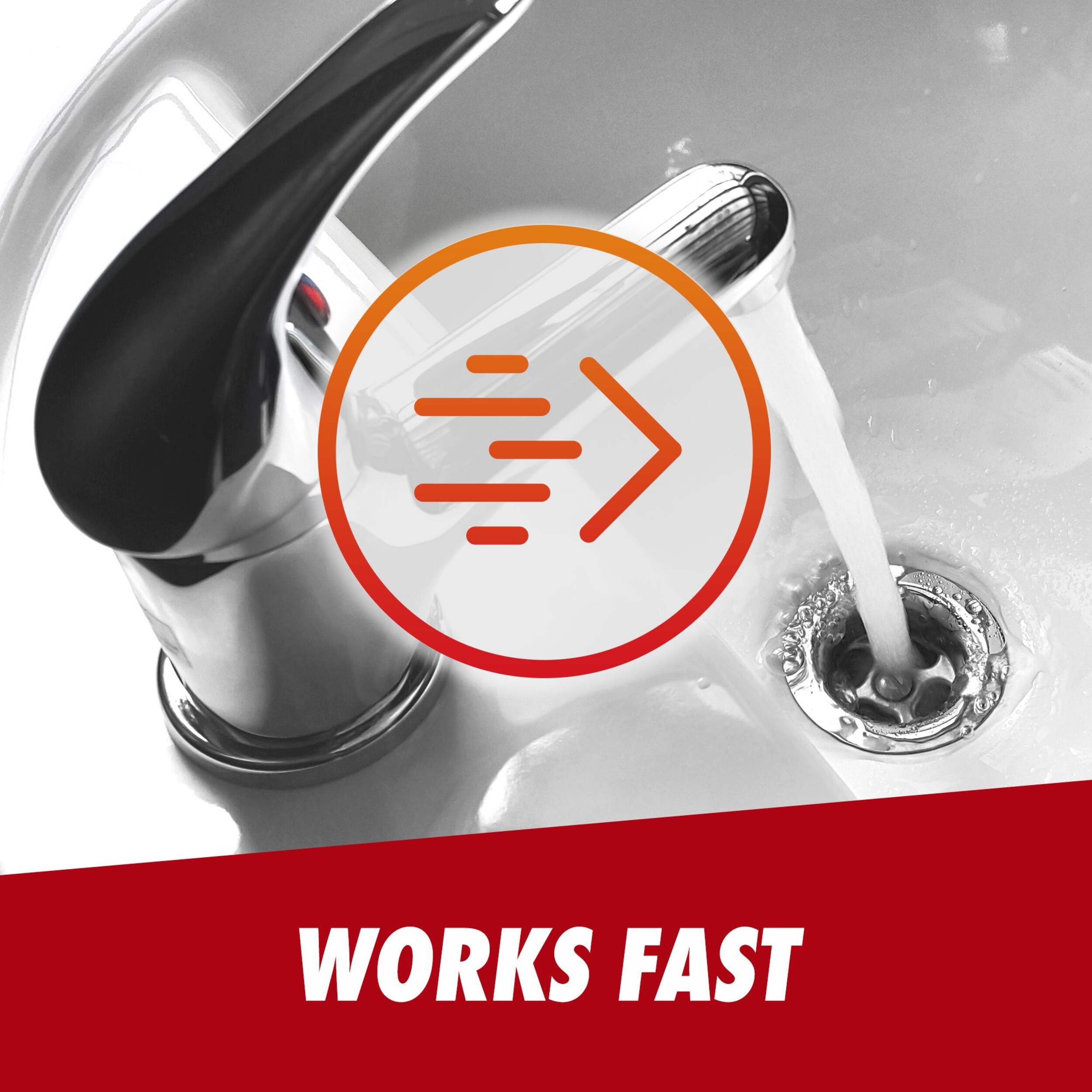 For use on clogged or slow-running drains, pour 16 oz slowly over drain and for extremely slow-running drains or complete clogs, pour 32 oz