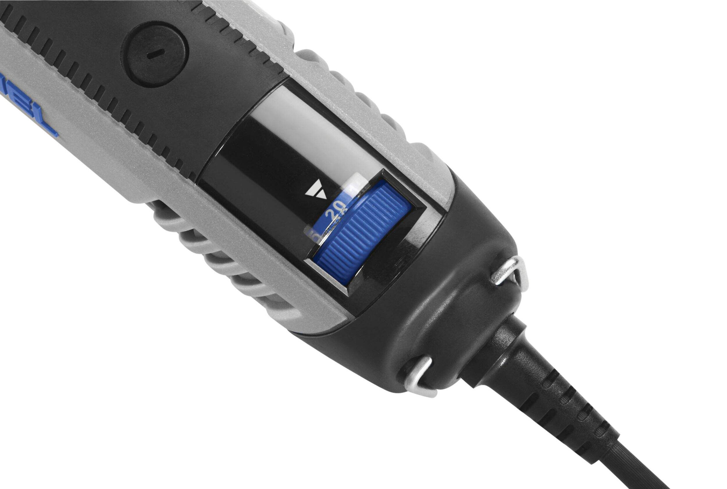 The versatile Dremel 4300-5/40 1.6A Variable Speed Rotary Tool Kit can effortlessly handle sanding, grinding, cutting and more. A keyless chuck enables quick, tool-free accessory changes, while the pivot LED light rotates to provide illumination in tight spaces. The ergonomic grip and advanced cooling system of this tool kit ensure comfortable use for extended periods of time. With a redesigned airflow system, this reliable rotary tool kit runs smoothly and quietly for efficient work.