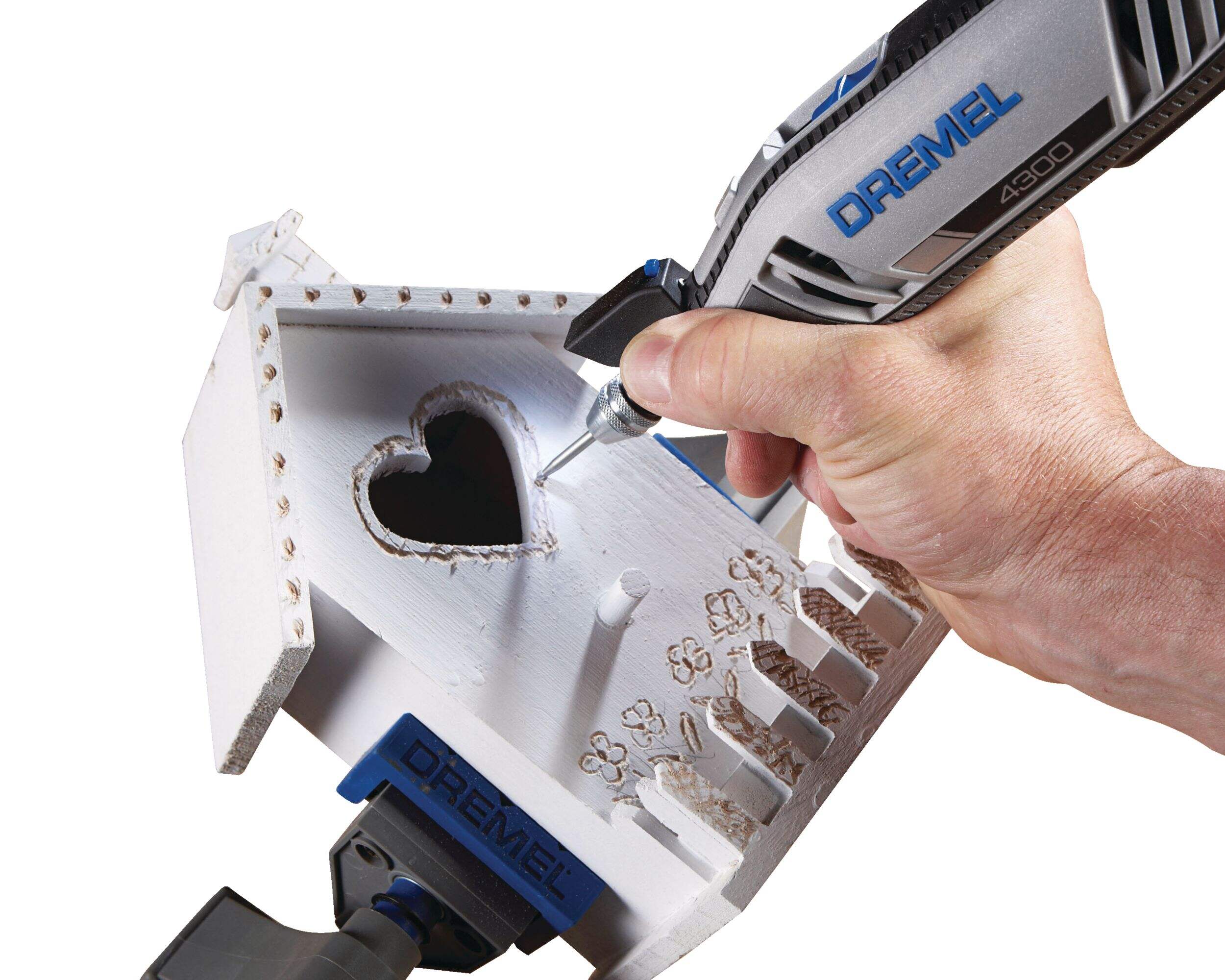 Set includes: DREMEL 4300 rotary tool, 6 attachments, 40 accessories, hard carrying case and an accessory case