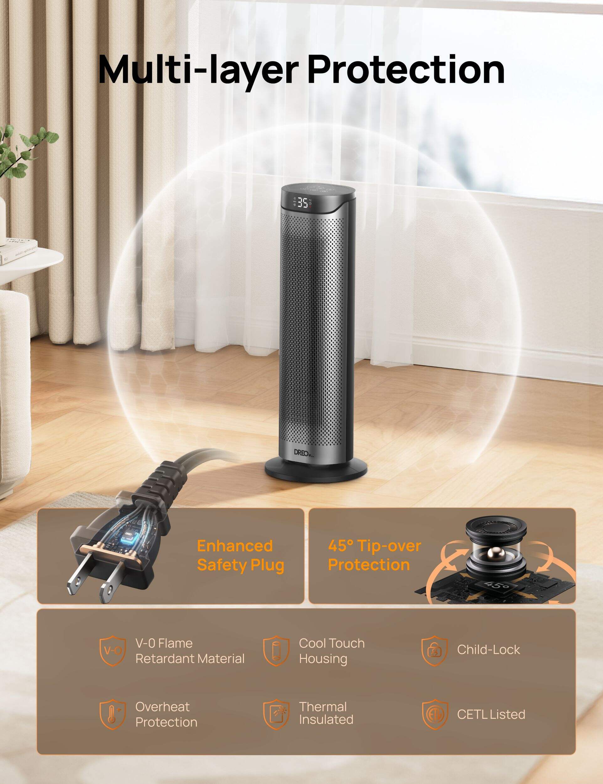 Warmth Without Worry: Featuring a robust 8-layer safety system, this heater ensures protection against overheating, tipping, and accidental contact. It’s the perfect solution for families, late-night use, and anyone who wants extra assurance while staying cozy. Feel secure knowing that warmth is never at the expense of safety.