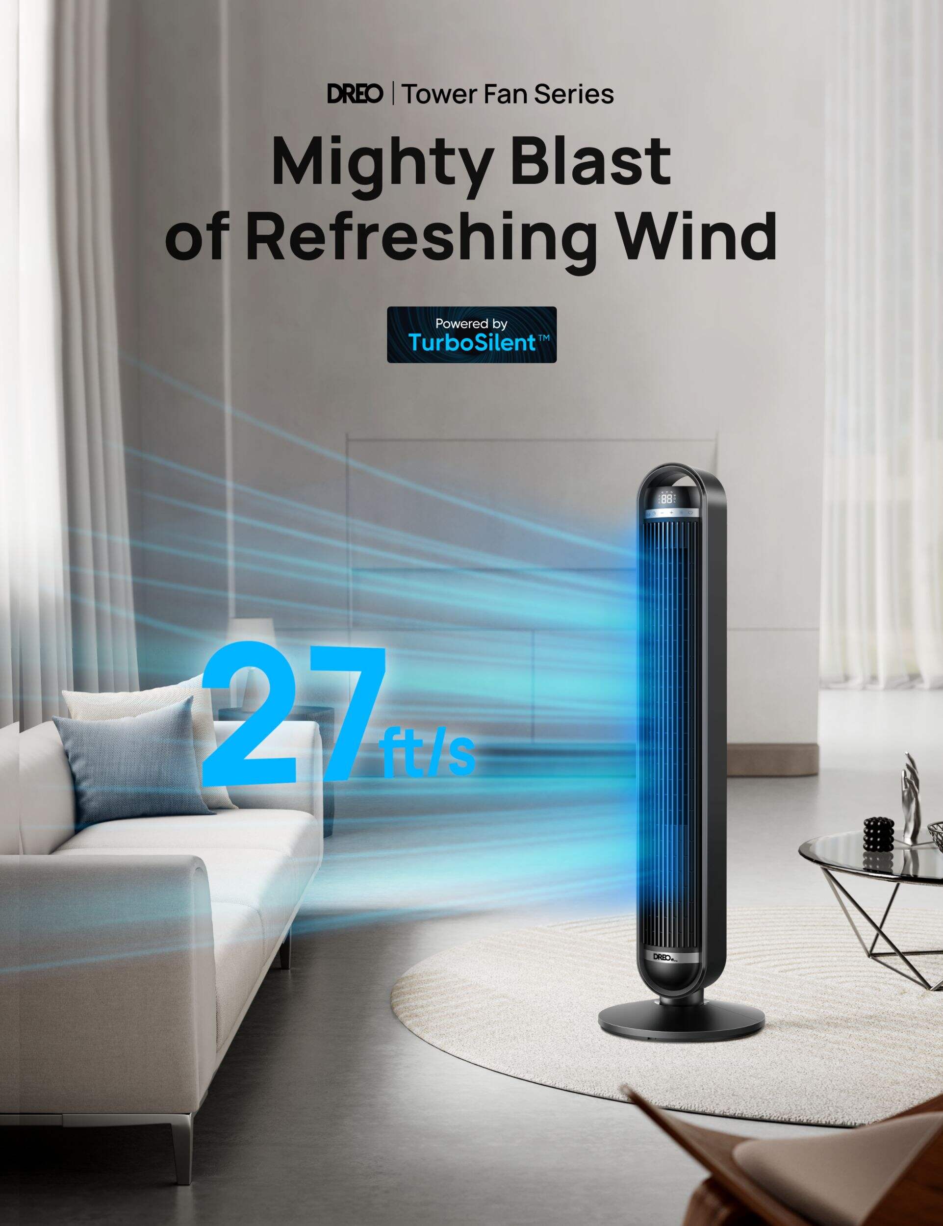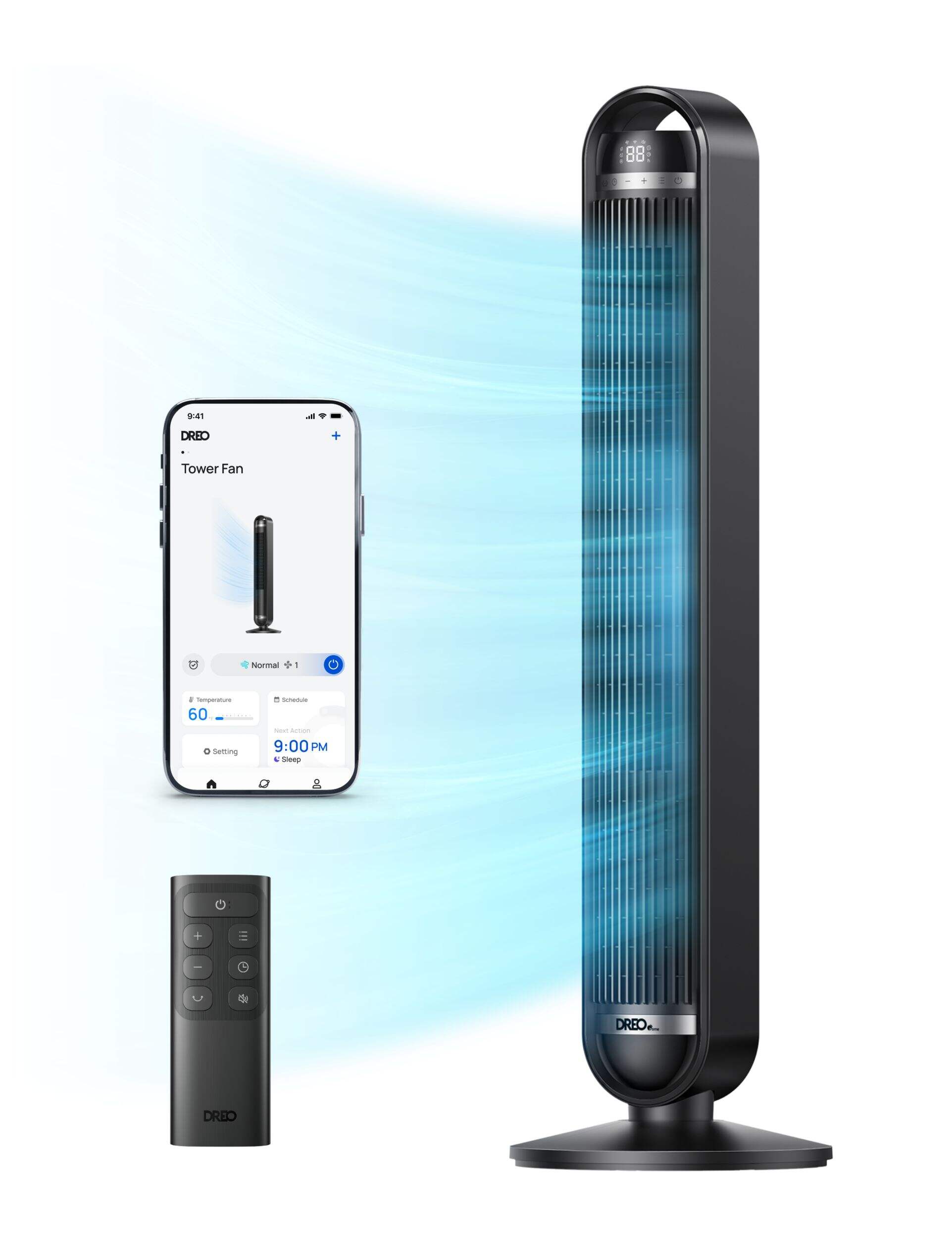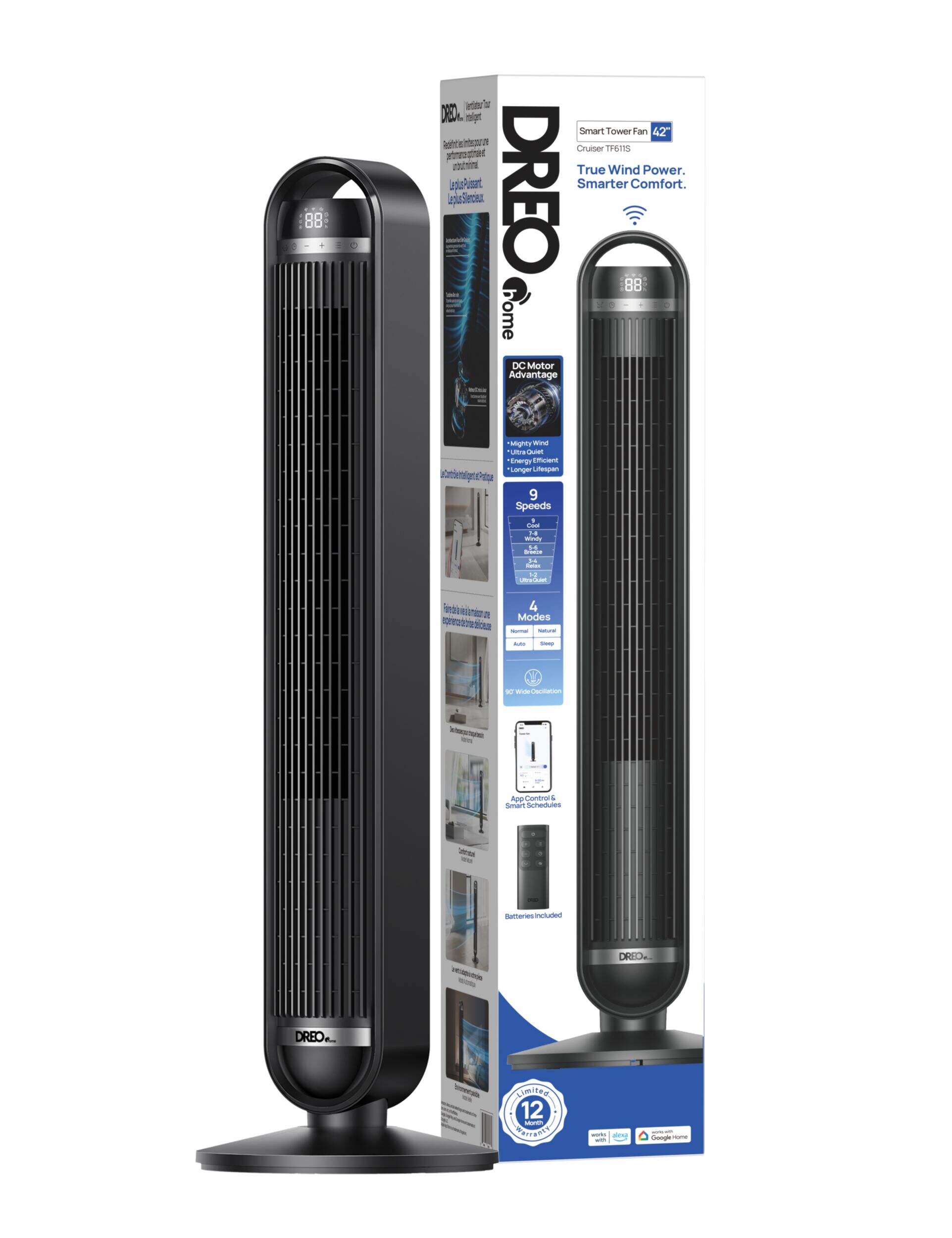 With 9 speeds and wide oscillation, this Dreo Home Cruiser Pro Quiet DC Smart Tower Fan lets you dial in the perfect breeze—whether that's a waft for your home or a gale force for summer days. The brushless DC motor runs whisper-quiet, ensuring you stay chill without noise getting in the way of work or play. Thanks to built-in Wi-Fi and voice control compatibility, adjusting modes is as easy as tapping your phone or talking to Alexa. With its potent 26 ft/s airflow and slim tower design, this portable powerhouse moves seamlessly from bedrooms to living rooms.