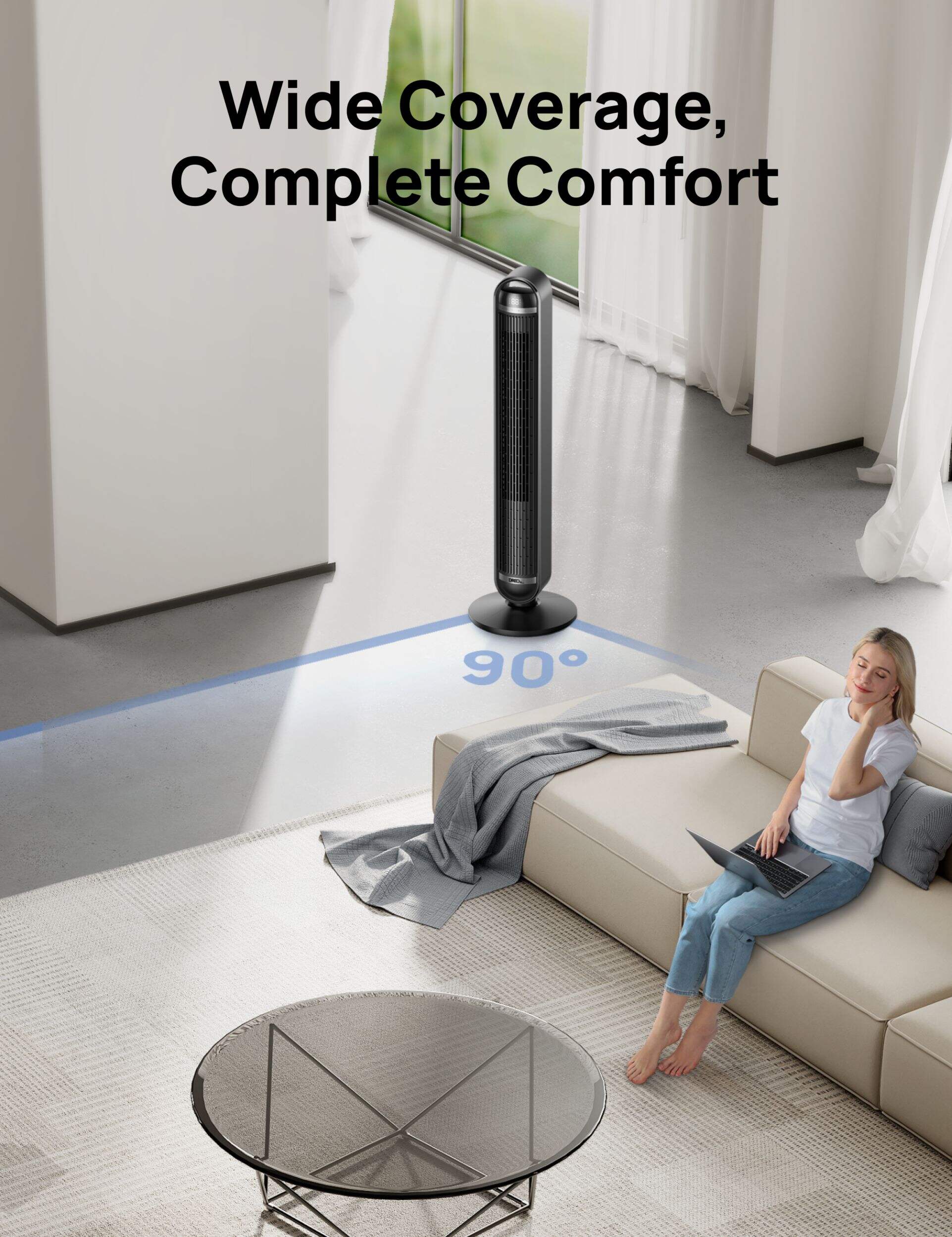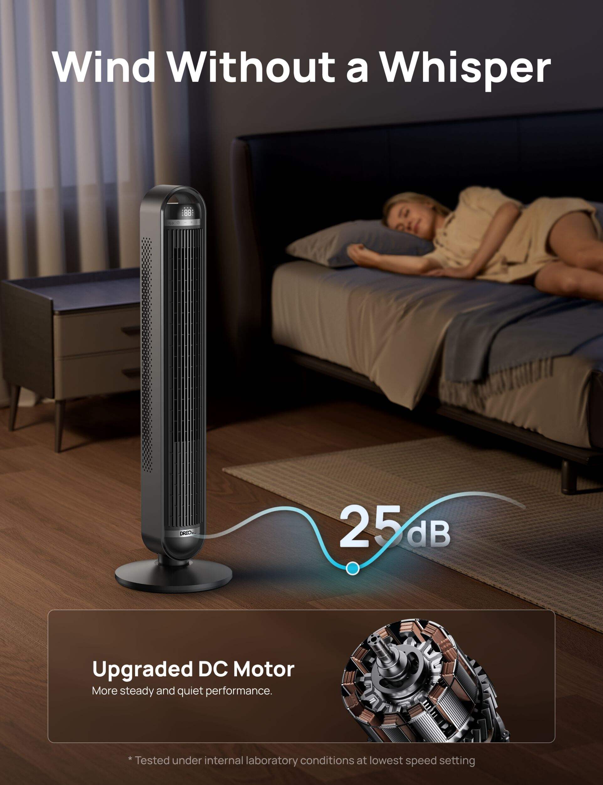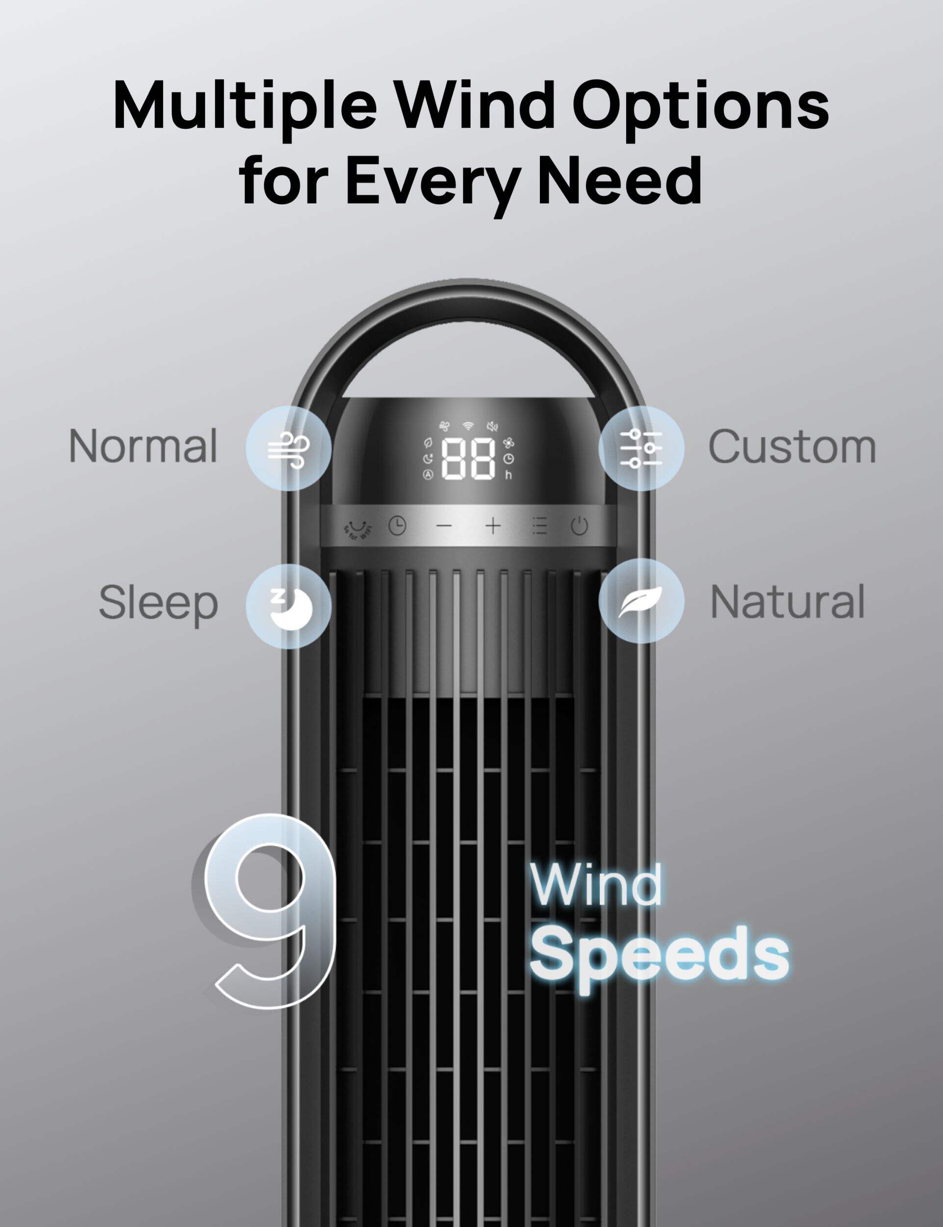 With 9 speeds and wide oscillation, this Dreo Home Cruiser Pro Quiet DC Smart Tower Fan lets you dial in the perfect breeze—whether that's a waft for your home or a gale force for summer days. The brushless DC motor runs whisper-quiet, ensuring you stay chill without noise getting in the way of work or play. Thanks to built-in Wi-Fi and voice control compatibility, adjusting modes is as easy as tapping your phone or talking to Alexa. With its potent 26 ft/s airflow and slim tower design, this portable powerhouse moves seamlessly from bedrooms to living rooms.