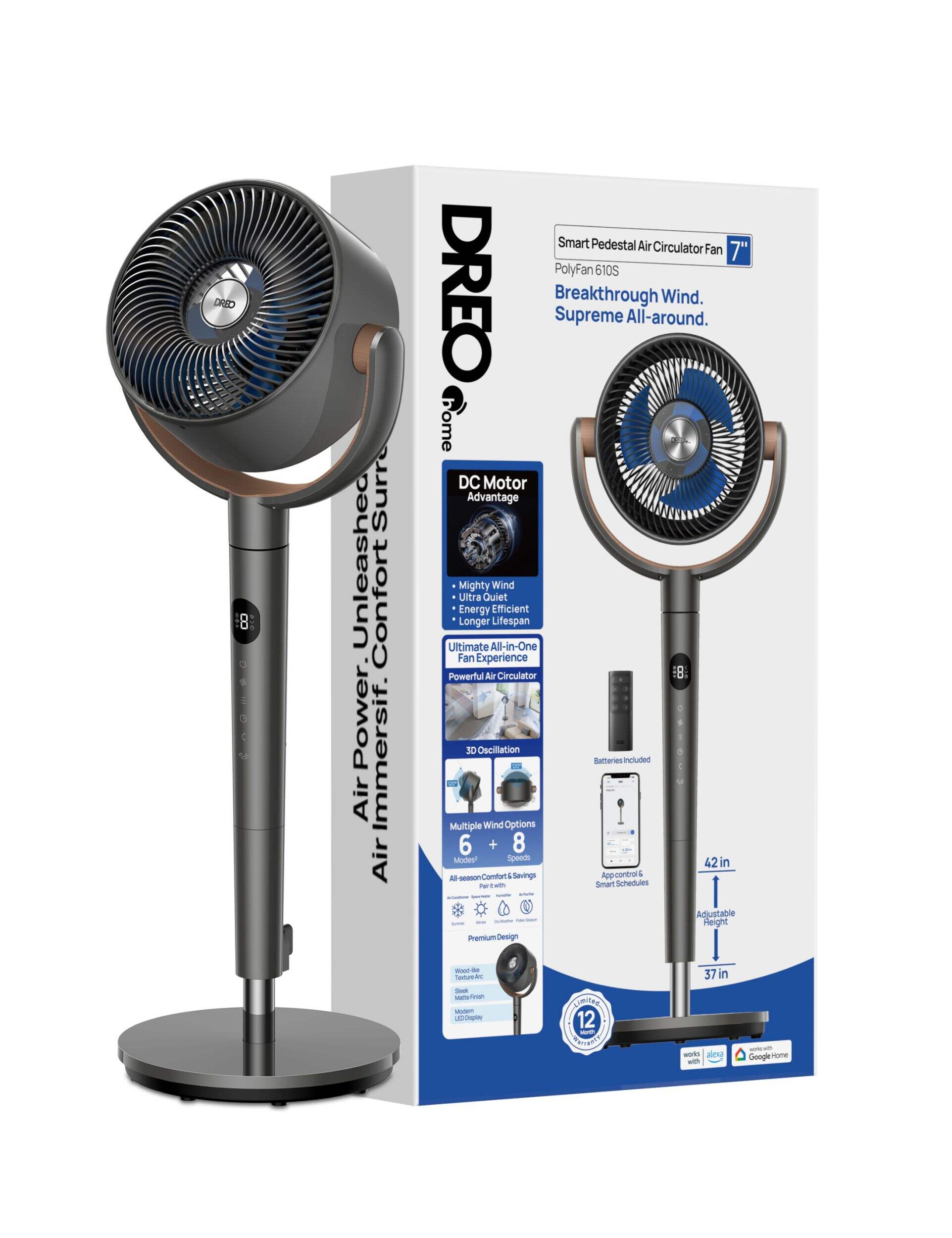 Stay cool and comfortable with the DREO Home Poly 7-in Gray 3D Oscillating Smart & Quiet Fan. This sleek, modern fan features 3D oscillation for optimal air circulation, ensuring every corner of your room feels refreshing. Its smart technology allows for easy control and customization, while the quiet operation ensures a peaceful environment. Perfect for any home, this fan combines style, efficiency, and convenience for your everyday needs.