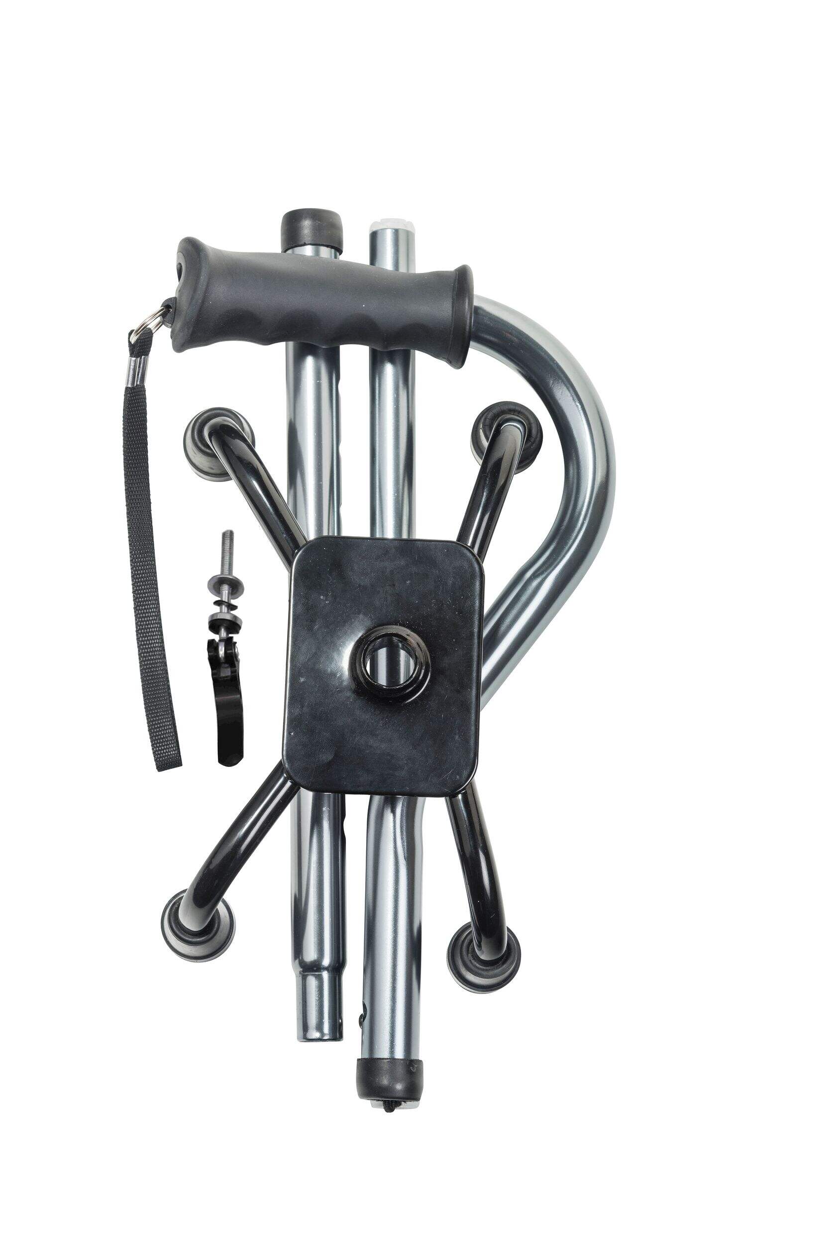 The Folding Quad Cane features a small footprint and folding design, making it ideal for display, storage and transport