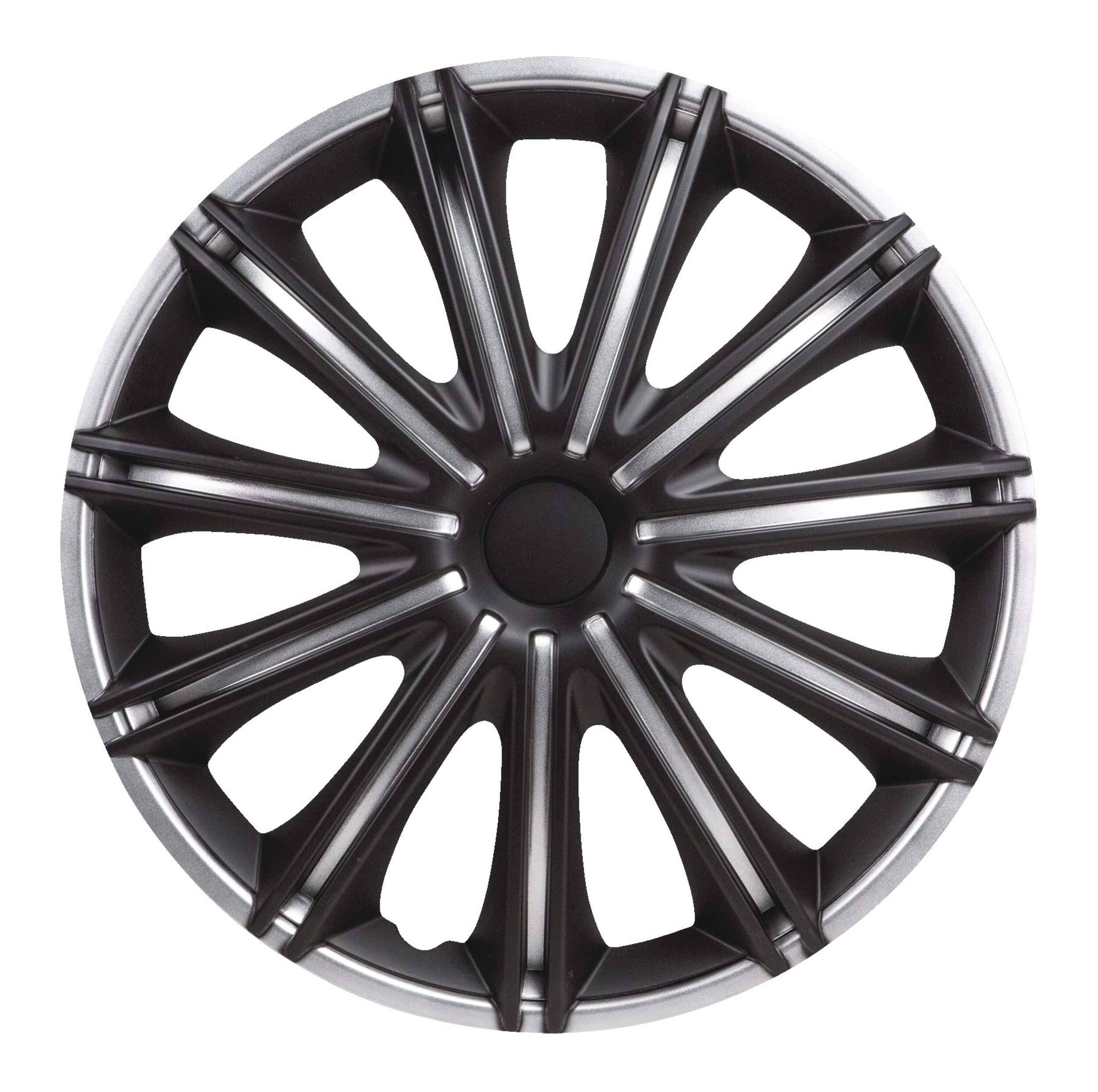 The DriveStyle Nero Wheel Cover/Hub Cap in a sleek silver and black satin finish gives your vehicle a stylish upgrade with its contemporary multi-spoke design. Featuring a three-step retention system and adjustable inner ring, it provides a secure fit. Ideal for replacing worn covers or enhancing winter wheels, this four-pack adds both flair and functionality to your car, offering durability and a fresh look for any season.