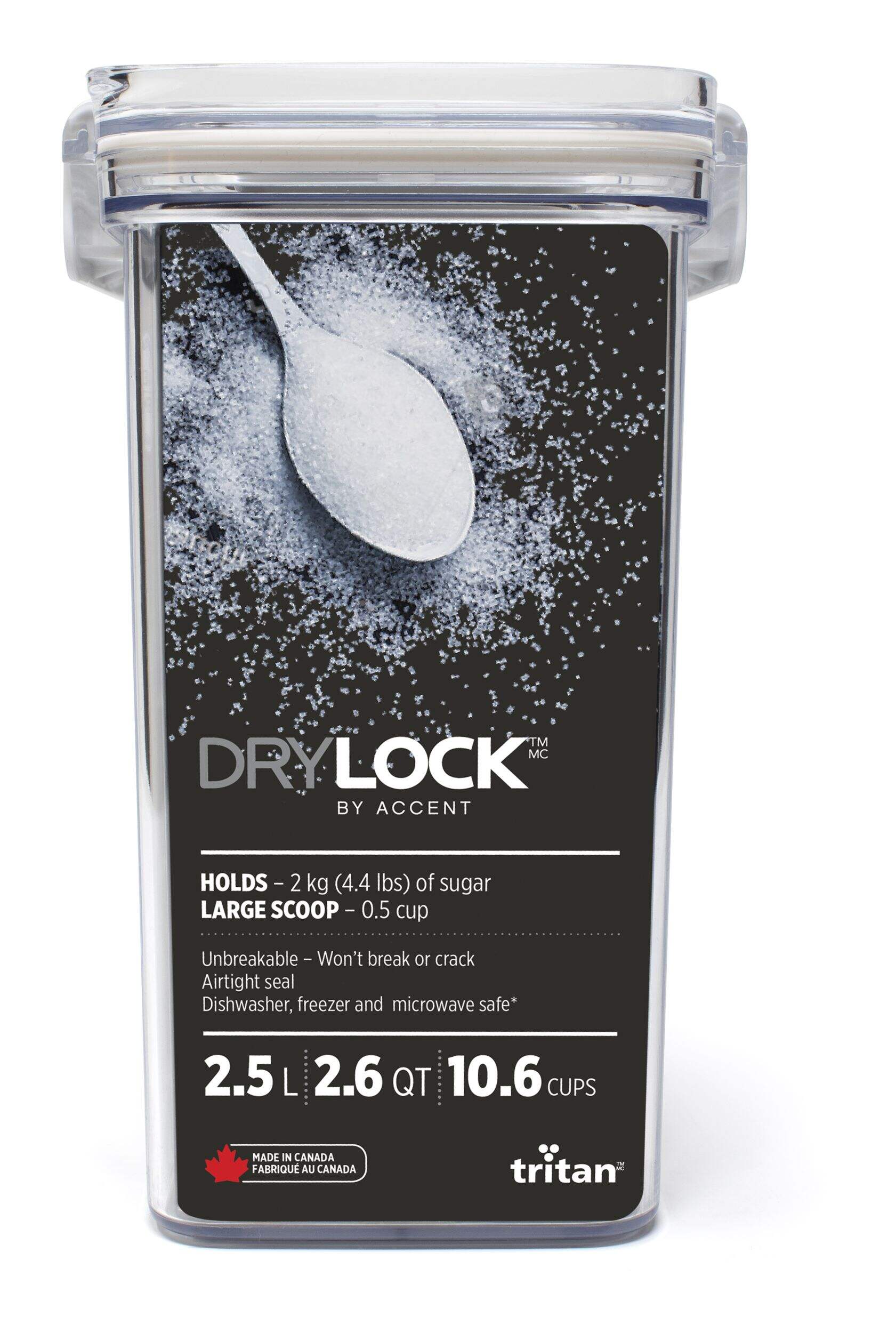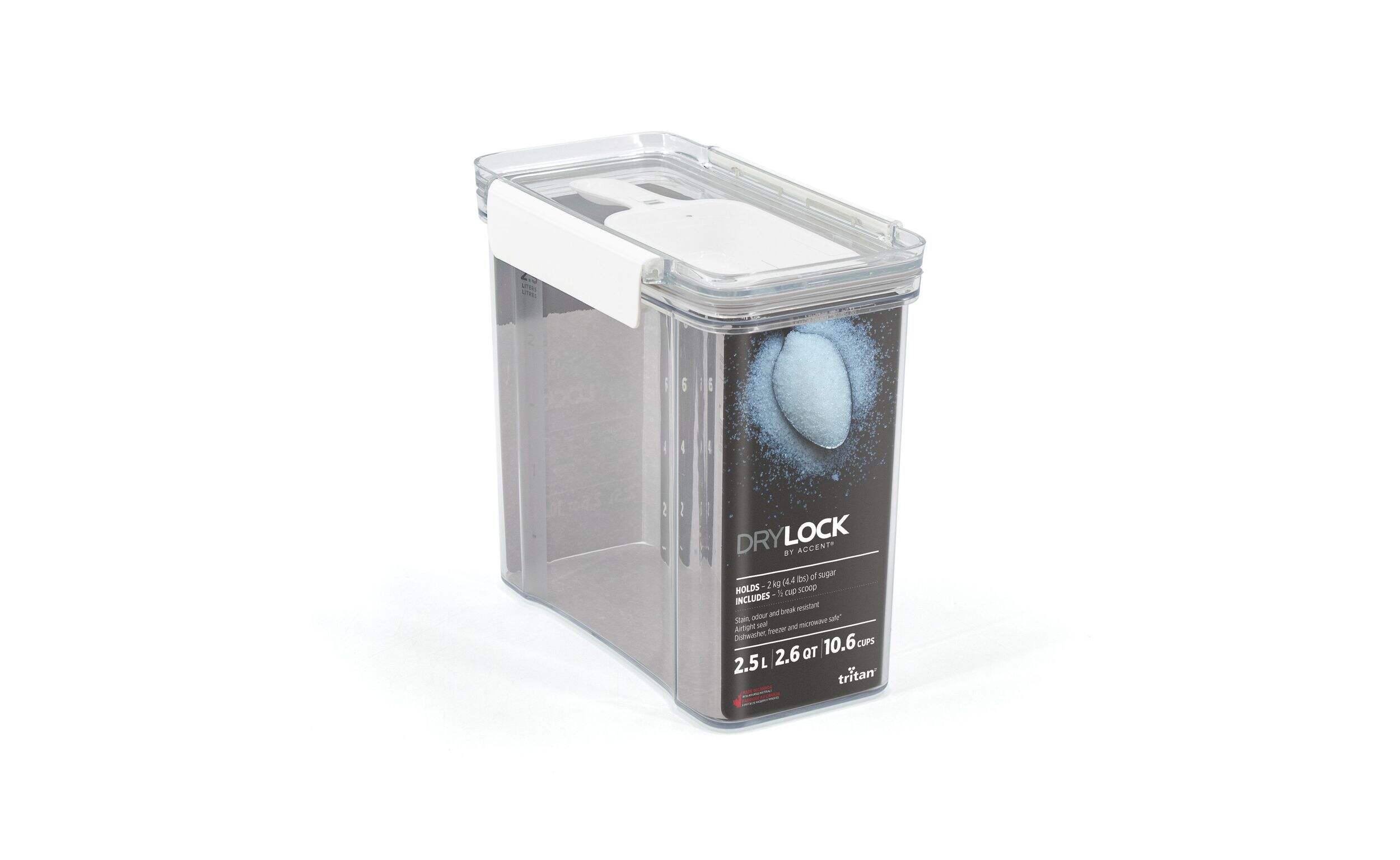 The DryLock Pantry Food Storage Container, 2.5 L, is built from durable material that won’t crack or break, ensuring long-lasting use. Its airtight seal helps preserve freshness, keeping your food items safe and crisp. The transparent design allows you to easily see the contents, making it simple to monitor and refill your pantry essentials when needed. It's ideal for organizing and preserving dry food items like cereals, grains, and snacks.