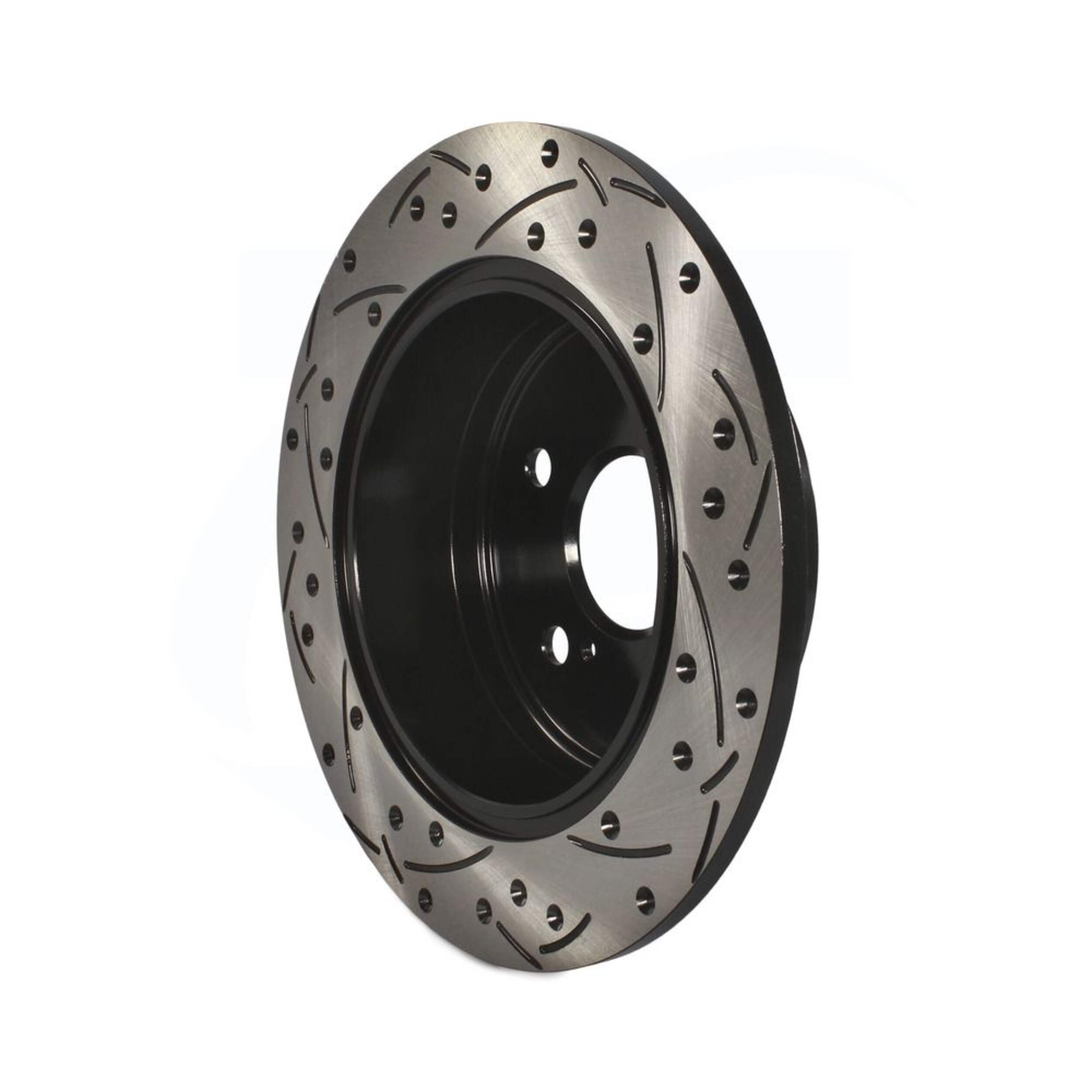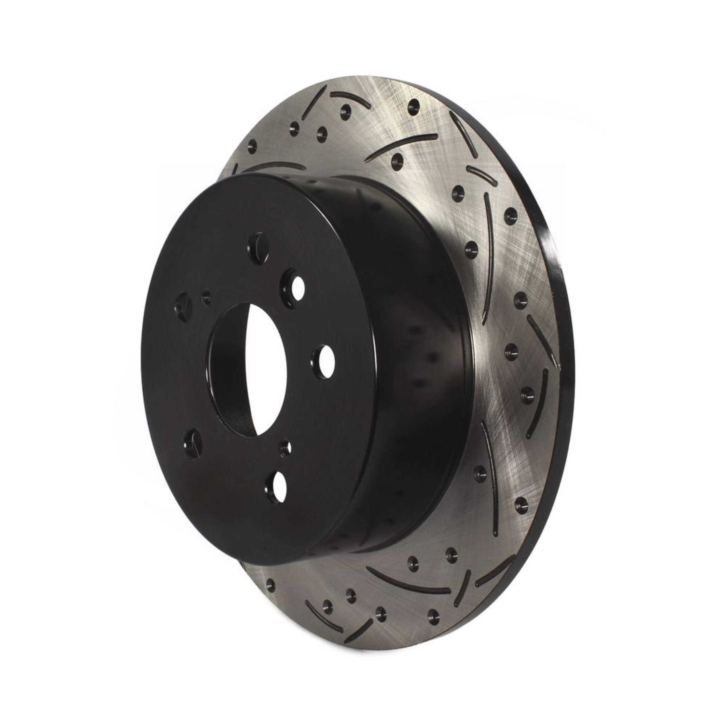The DS One Performance Brake Rotor delivers unparalleled performance and longevity. The exclusive drill and slot design optimizes 360° heat dissipation while the electrophoretic coating provides superior corrosion resistance. The OEM-style vane configuration further enhances cooling while reducing vibration for smooth, quiet operation. Precision CNC machining and diamond slotting maximize pad contact area for rapid heat shedding and fade-free power. Constructed from multiple alloys, these rotors offer the ideal tensile strength and hardness for consistent wear and long service life. Meticulously mill-balanced and taper-free finished for smooth engagement and rapid break-in. With its combination of innovative design, premium materials, and meticulous engineering, this rotor takes the DS One legacy of excellence to new heights.