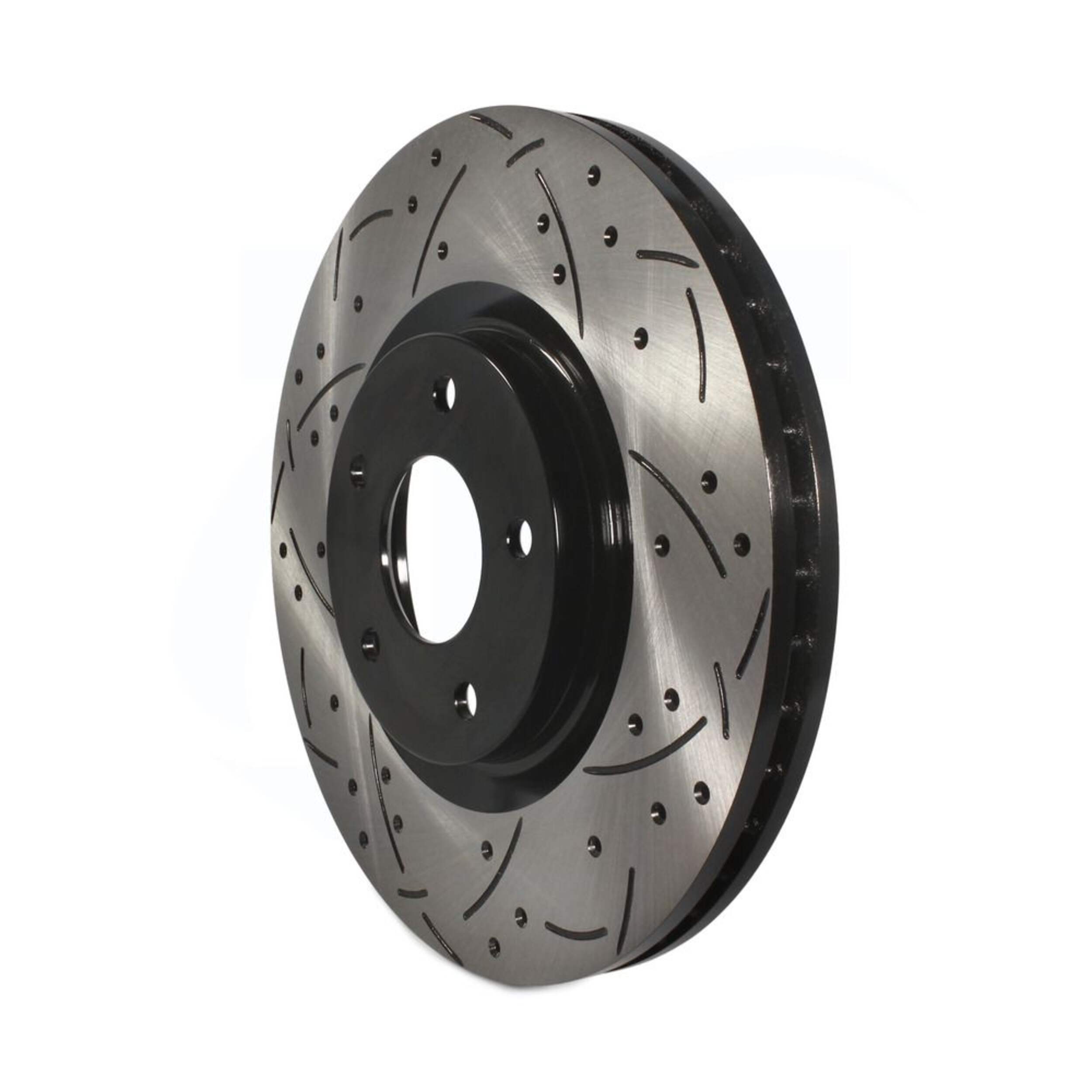 The DS One Performance Brake Rotor delivers unparalleled performance and longevity. The exclusive drill and slot design optimizes 360° heat dissipation while the electrophoretic coating provides superior corrosion resistance. The OEM-style vane configuration further enhances cooling while reducing vibration for smooth, quiet operation. Precision CNC machining and diamond slotting maximize pad contact area for rapid heat shedding and fade-free power. Constructed from multiple alloys, these rotors offer the ideal tensile strength and hardness for consistent wear and long service life. Meticulously mill-balanced and taper-free finished for smooth engagement and rapid break-in. With its combination of innovative design, premium materials, and meticulous engineering, this rotor takes the DS One legacy of excellence to new heights.