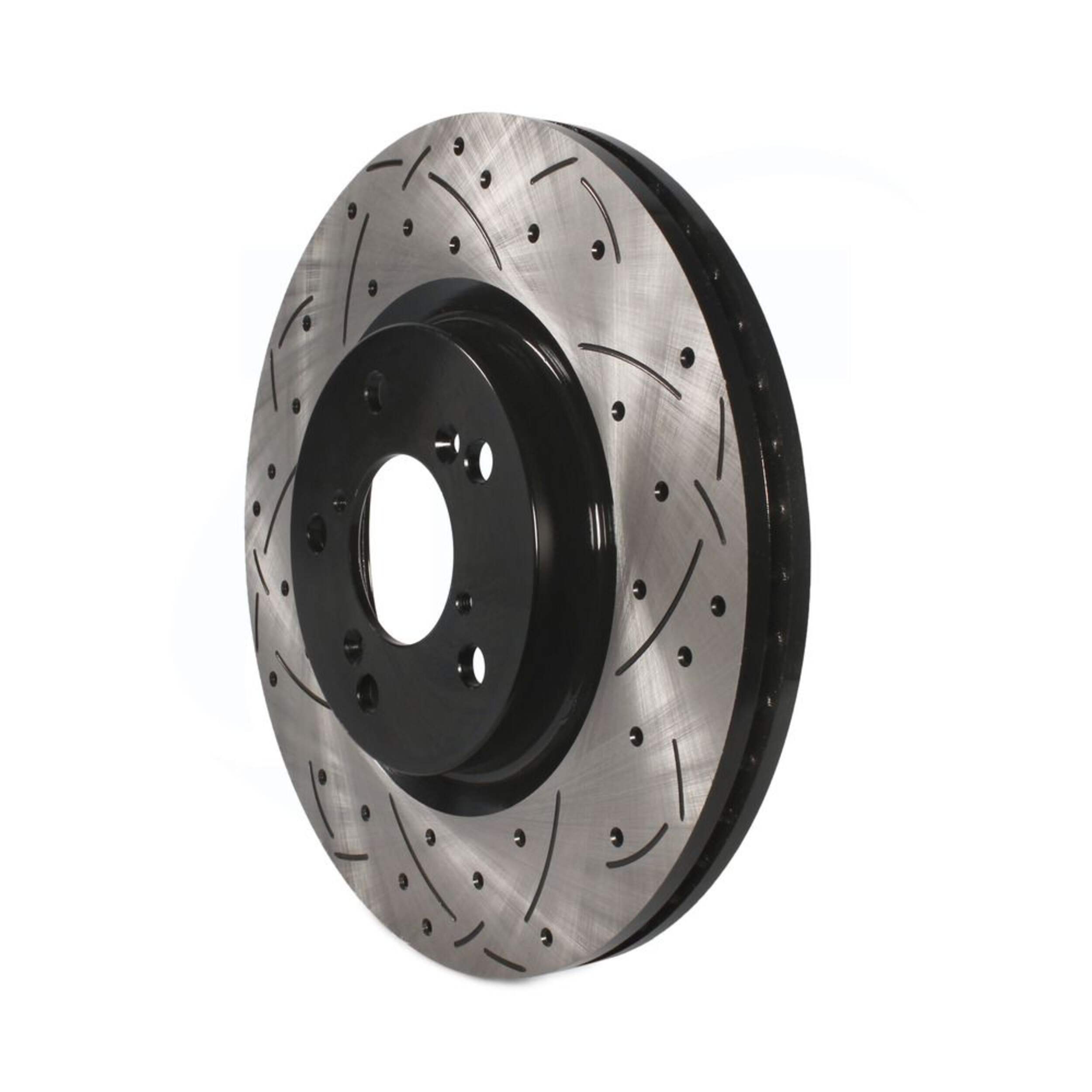 The DS One Performance Brake Rotor delivers unparalleled performance and longevity. The exclusive drill and slot design optimizes 360° heat dissipation while the electrophoretic coating provides superior corrosion resistance. The OEM-style vane configuration further enhances cooling while reducing vibration for smooth, quiet operation. Precision CNC machining and diamond slotting maximize pad contact area for rapid heat shedding and fade-free power. Constructed from multiple alloys, these rotors offer the ideal tensile strength and hardness for consistent wear and long service life. Meticulously mill-balanced and taper-free finished for smooth engagement and rapid break-in. With its combination of innovative design, premium materials, and meticulous engineering, this rotor takes the DS One legacy of excellence to new heights.
