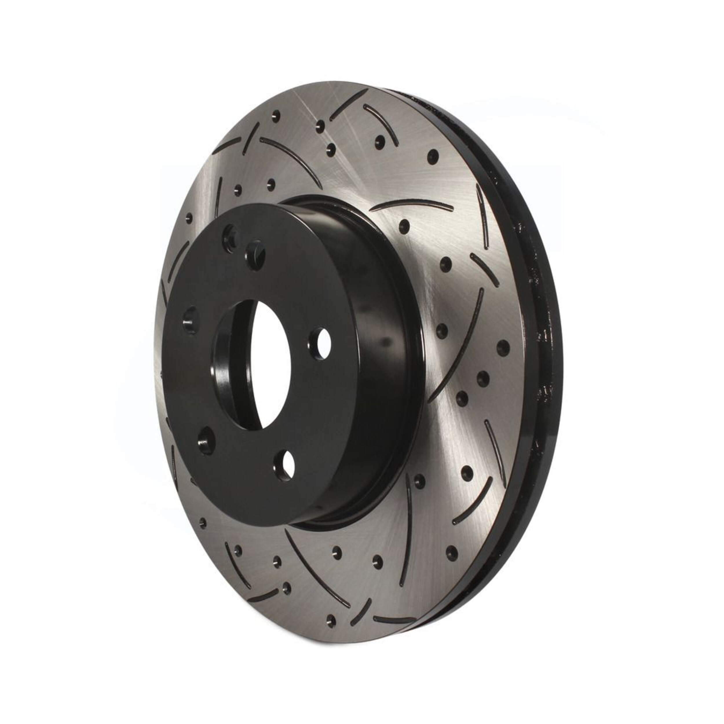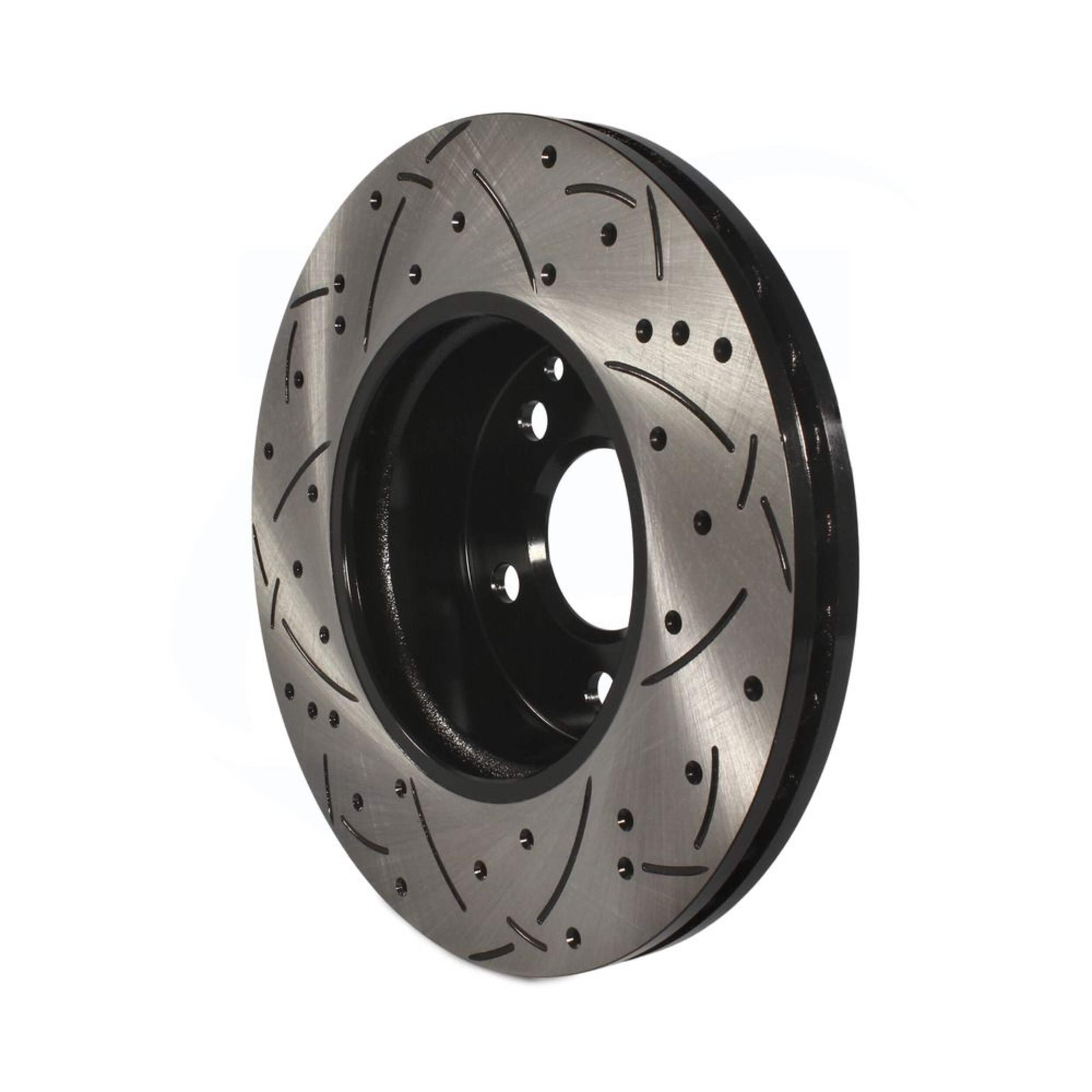 The DS One Performance Brake Rotor delivers unparalleled performance and longevity. The exclusive drill and slot design optimizes 360° heat dissipation while the electrophoretic coating provides superior corrosion resistance. The OEM-style vane configuration further enhances cooling while reducing vibration for smooth, quiet operation. Precision CNC machining and diamond slotting maximize pad contact area for rapid heat shedding and fade-free power. Constructed from multiple alloys, these rotors offer the ideal tensile strength and hardness for consistent wear and long service life. Meticulously mill-balanced and taper-free finished for smooth engagement and rapid break-in. With its combination of innovative design, premium materials, and meticulous engineering, this rotor takes the DS One legacy of excellence to new heights.