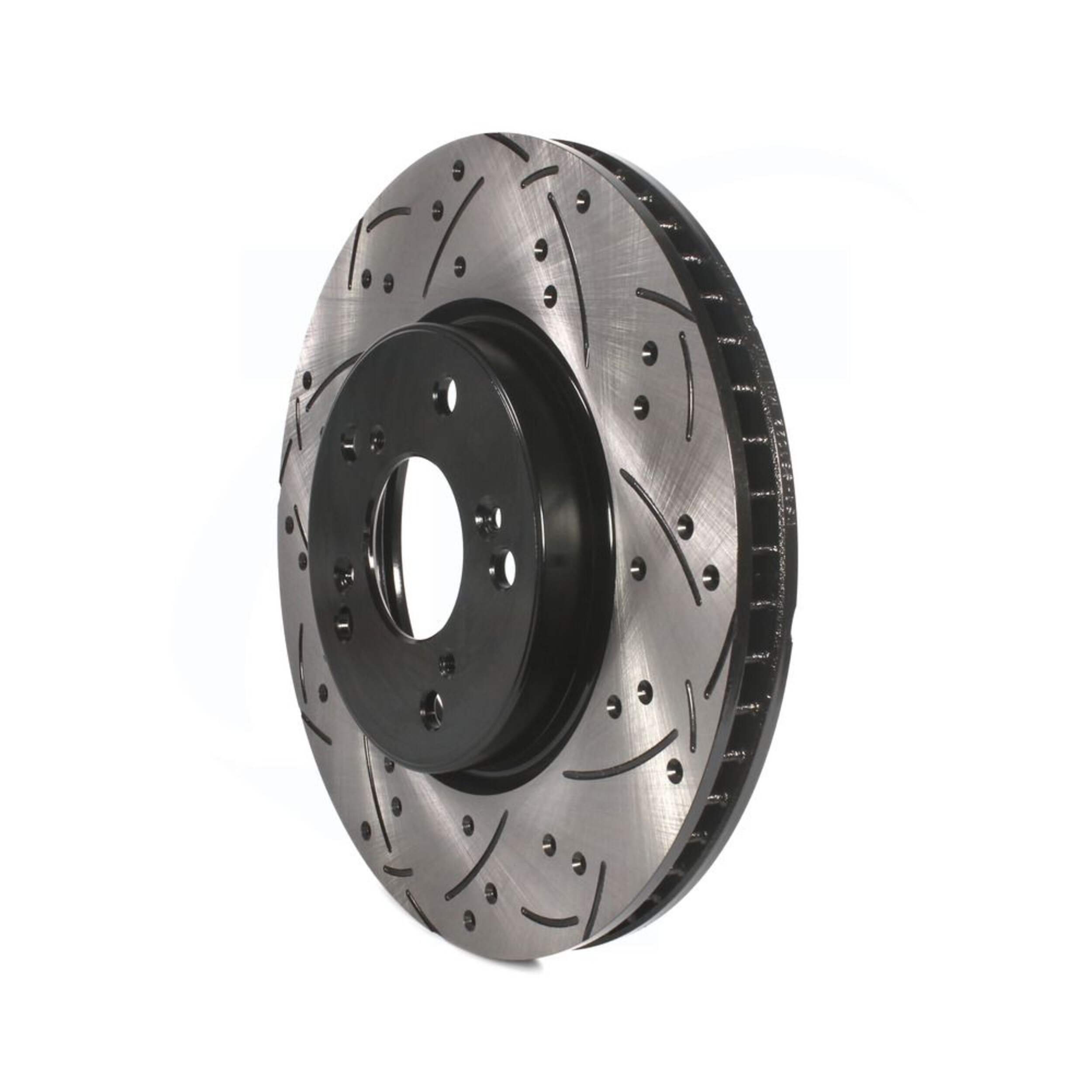 The DS One Performance Brake Rotor delivers unparalleled performance and longevity. The exclusive drill and slot design optimizes 360° heat dissipation while the electrophoretic coating provides superior corrosion resistance. The OEM-style vane configuration further enhances cooling while reducing vibration for smooth, quiet operation. Precision CNC machining and diamond slotting maximize pad contact area for rapid heat shedding and fade-free power. Constructed from multiple alloys, these rotors offer the ideal tensile strength and hardness for consistent wear and long service life. Meticulously mill-balanced and taper-free finished for smooth engagement and rapid break-in. With its combination of innovative design, premium materials, and meticulous engineering, this rotor takes the DS One legacy of excellence to new heights.