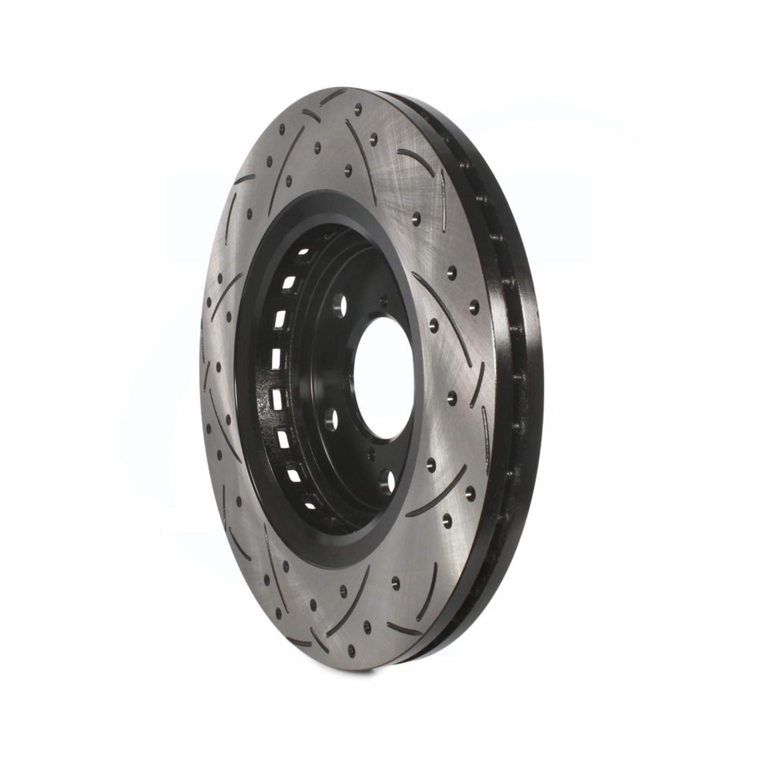 The DS One Performance Brake Rotor delivers unparalleled performance and longevity. The exclusive drill and slot design optimizes 360° heat dissipation while the electrophoretic coating provides superior corrosion resistance. The OEM-style vane configuration further enhances cooling while reducing vibration for smooth, quiet operation. Precision CNC machining and diamond slotting maximize pad contact area for rapid heat shedding and fade-free power. Constructed from multiple alloys, these rotors offer the ideal tensile strength and hardness for consistent wear and long service life. Meticulously mill-balanced and taper-free finished for smooth engagement and rapid break-in. With its combination of innovative design, premium materials, and meticulous engineering, this rotor takes the DS One legacy of excellence to new heights.