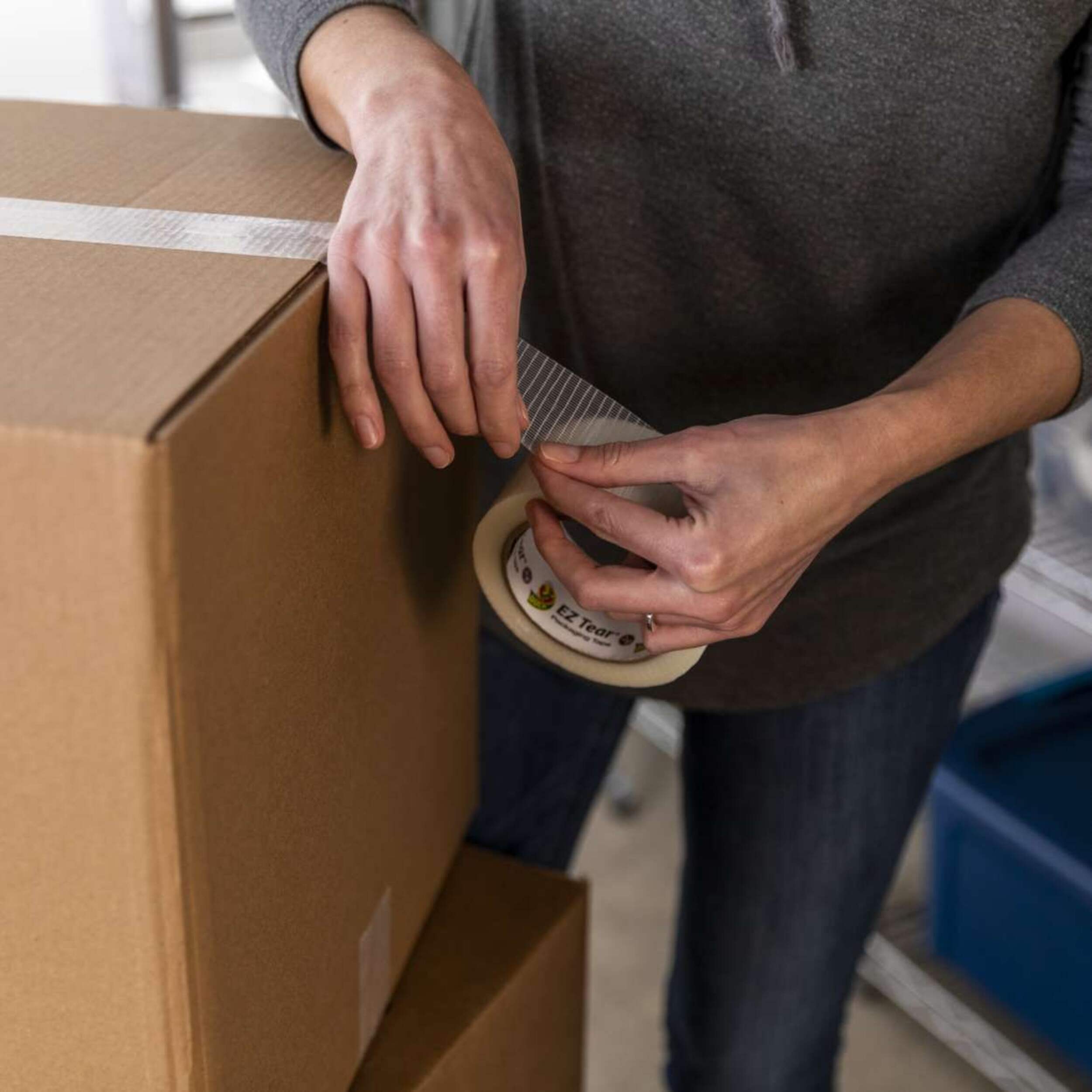 No scissors or dispenser needed! While most packing tapes require a blade to cut, Duck® Brand EZ Tear® Packing Tape can be easily torn by hand and has a reinforced structure for extra strength. EZ Tear® Packing Tape is the thickest tear-by-hand packing tape on the market and conforms to the edges and angles of boxes, for a tight, reliable seal. Secure packages easily and more safely, with EZ Tear® Packing Tape.