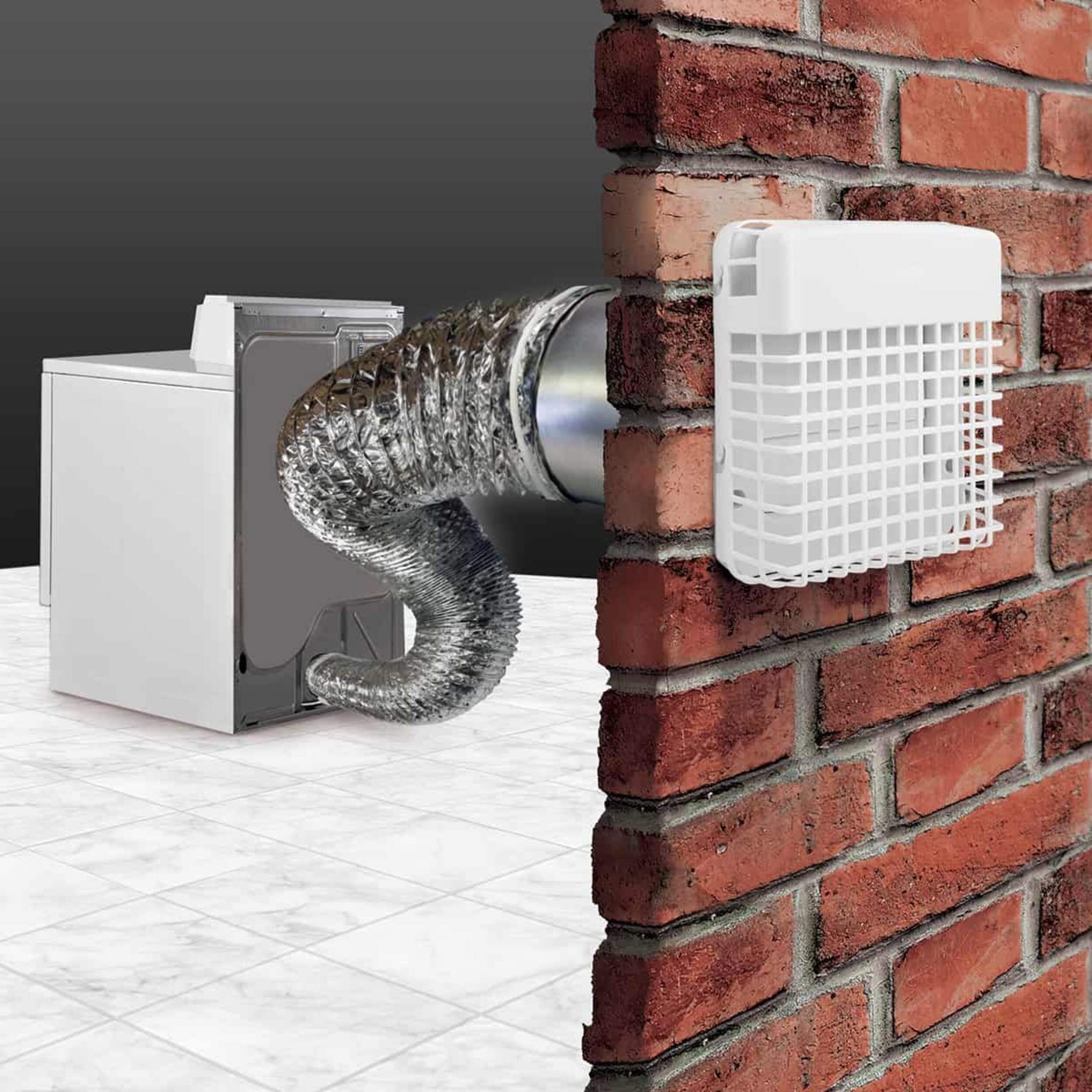 In one complete kit, this ProGard dryer vent assembly has everything needed to vent your dryer efficiently and prevent issues. The white UV-resistant plastic 4-inch duct, aluminum pipe and louvered cap keep debris out, while allowing moisture to exit. The mounting hardware attaches securely to brick, concrete or siding for a professional, long-lasting installation that will help your dryer perform at its best.106 words