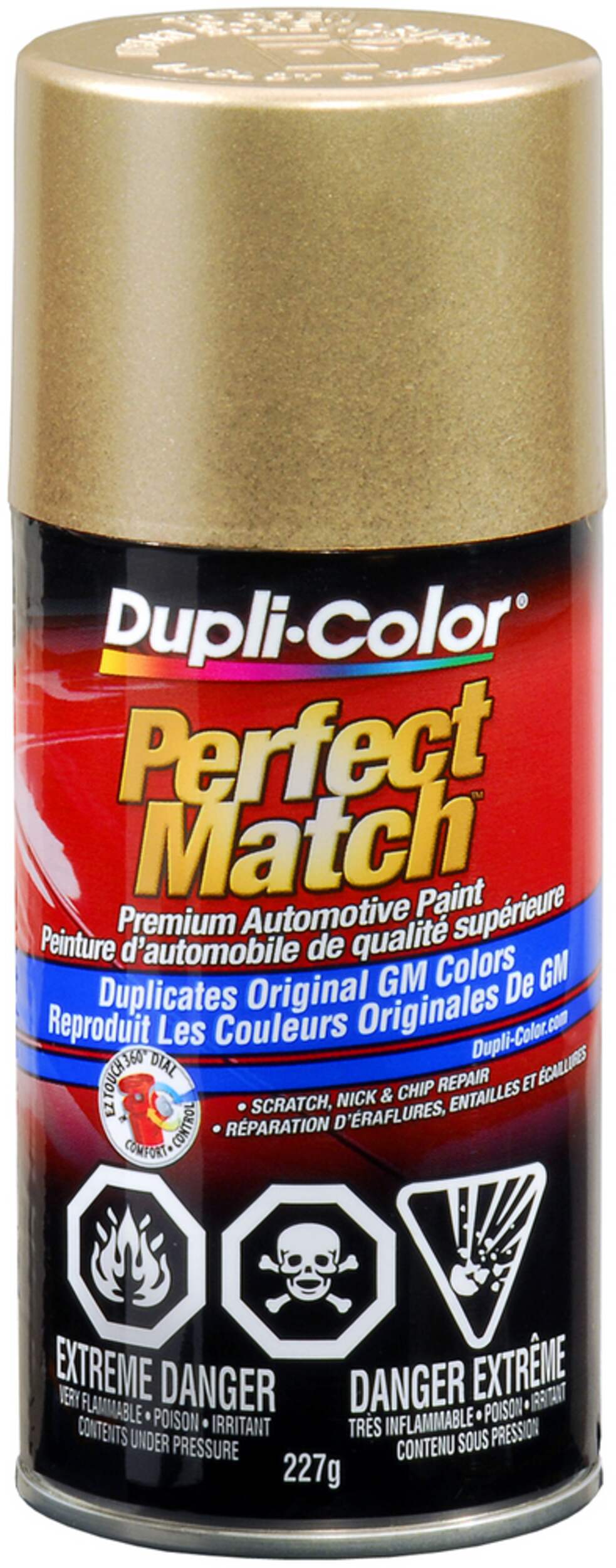 Find your match with Dupli-Color® Perfect Match® Premium Automotive Paint, Gold Metallic. This easy-to-use, high-quality, fast-drying, acrylic lacquer aerosol paint is specially formulated to match the exact colour of your vehicle’s original factory-applied coating. Ideal for use on all OEM paint surfaces, Perfect Match is available in a complete line of exact-match colours for current and late model import and domestic vehicles. This Dupli-Color® paint is handy for small-scale vehicle touch-ups and for painting vehicle accessories.