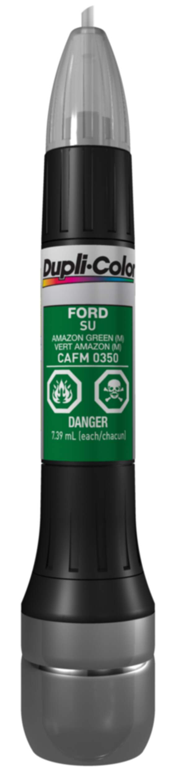 The Dupli-Color Scratch Fix All-in-1 touch-up tool features an abrasive prep tip, exact-color match paint, and clear coat giving it a unique 3-in-1 design