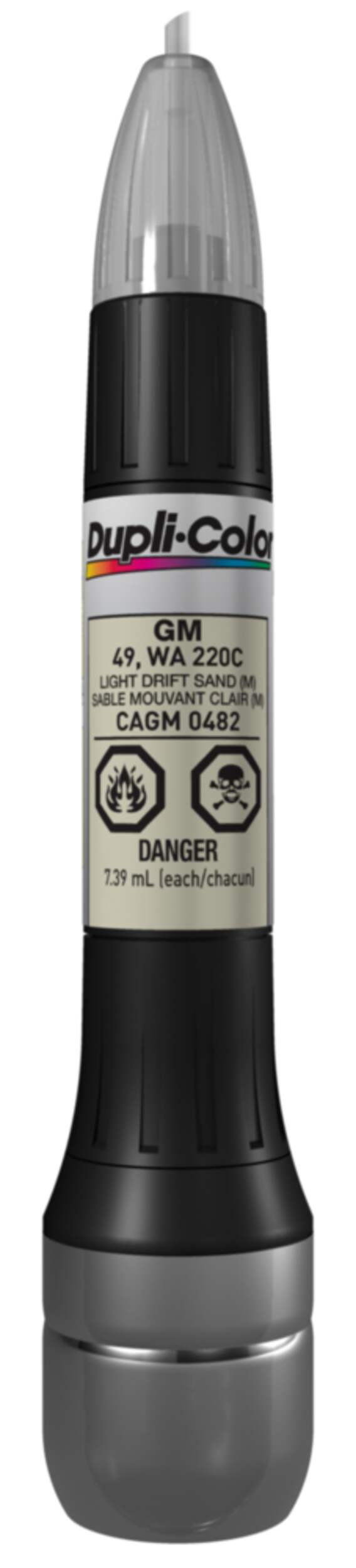 The Dupli-Color Scratch Fix All-in-1 touch-up tool features an abrasive prep tip, exact-color match paint, and clear coat giving it a unique 3-in-1 design