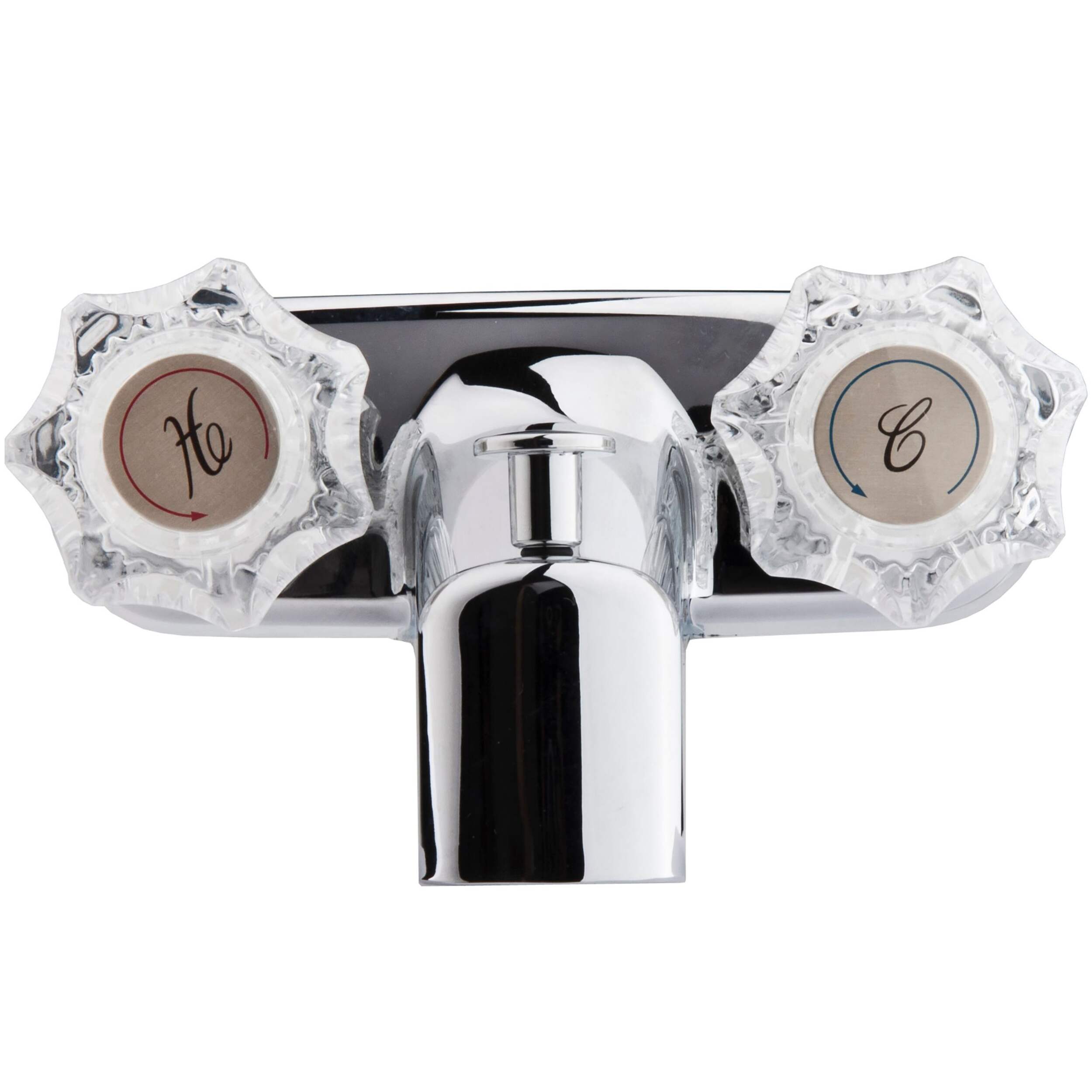 This tub/shower faucet boasts an elegant and classic exterior, fully functional diverter, and two crystal acrylic knob operation to quickly adjust temperature and water pressure