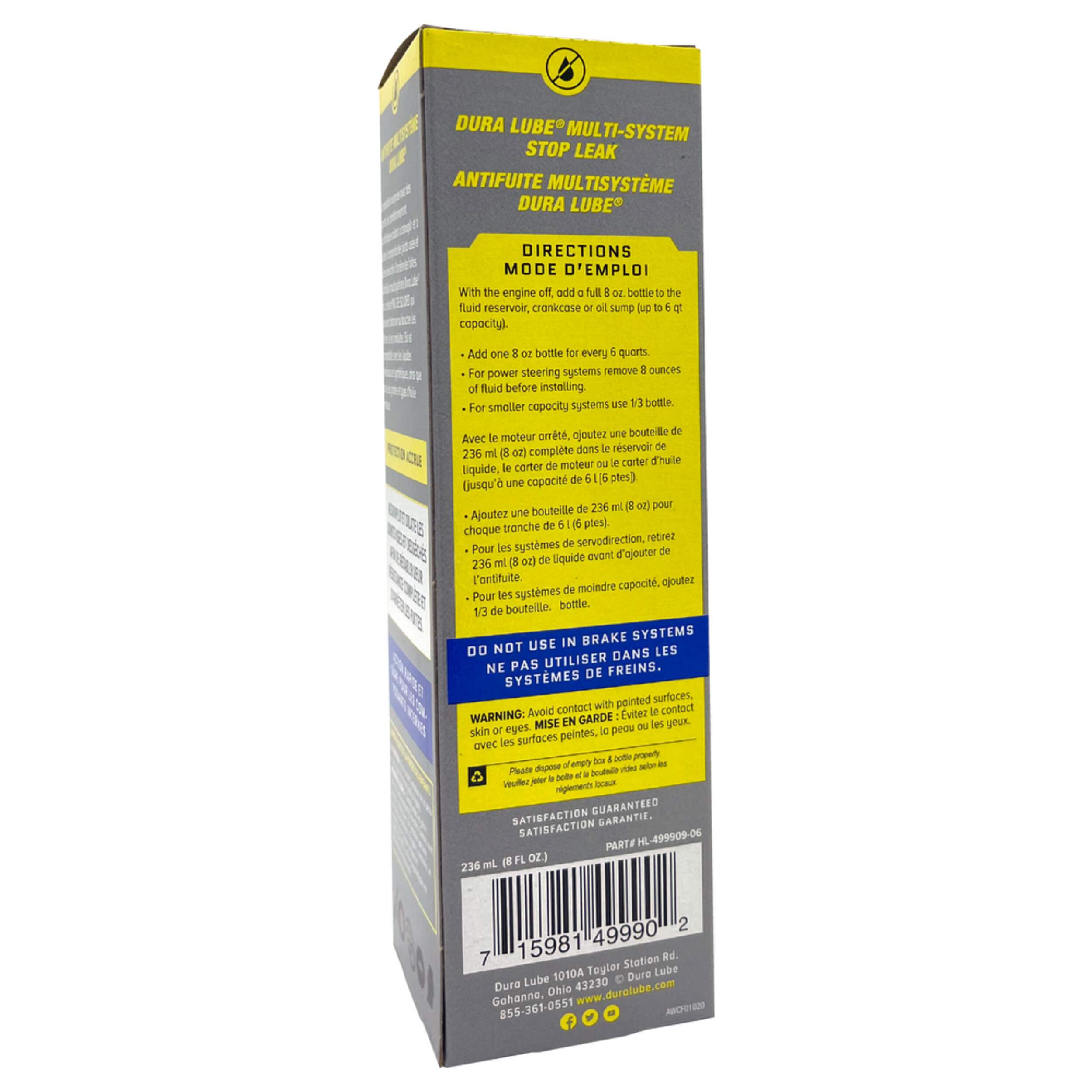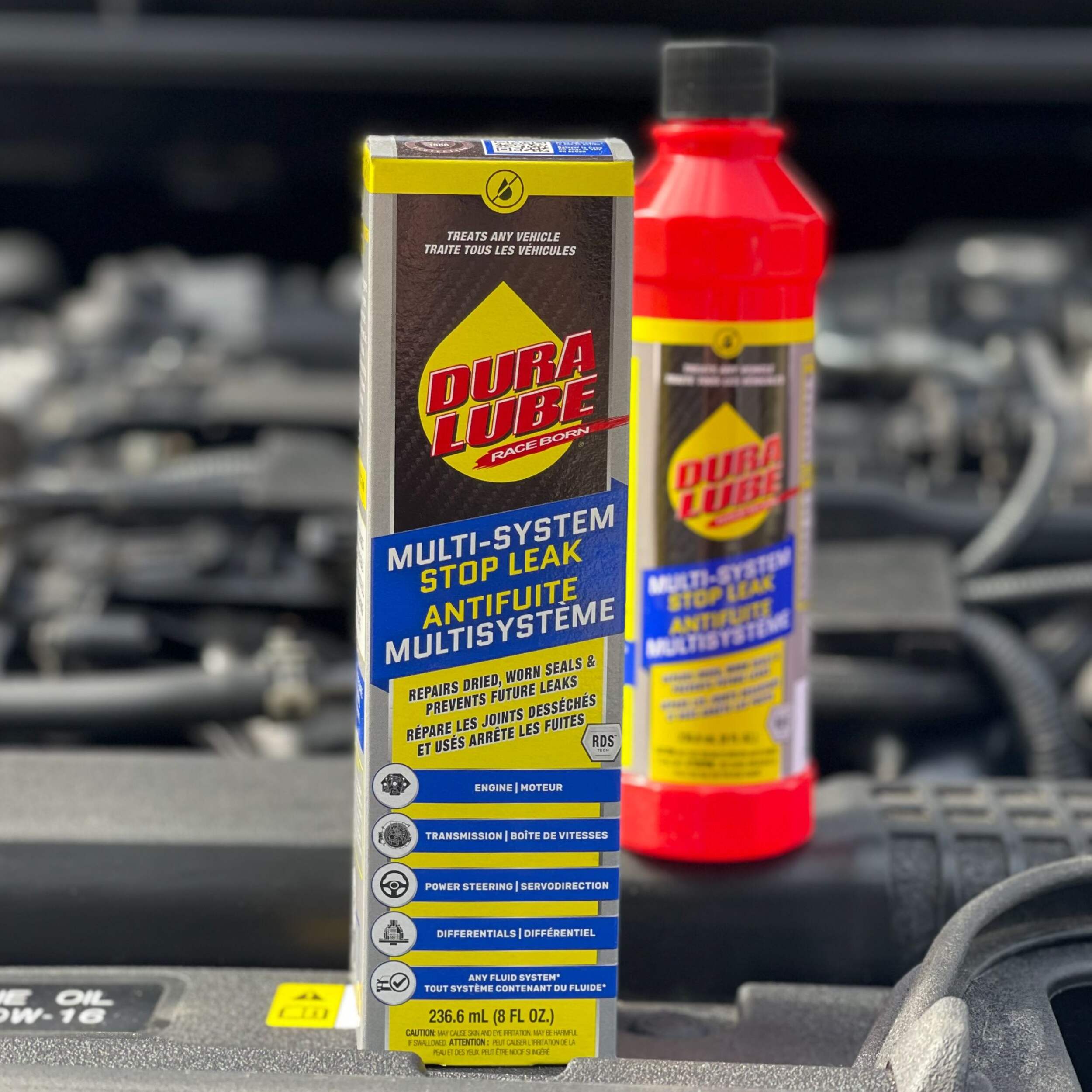 Multi-System Stop Leak is an advanced formulation with synthetic conditioning agents to help soften and expand most worn and dried seals, preventing further leaks. Dura Lube® Multi-System Stop Leak contains NO SOLIDS that could clog or plug filters and lines. Safe and compatible with mineral and synthetic fluids, as well as, all types/grades of motor oil.