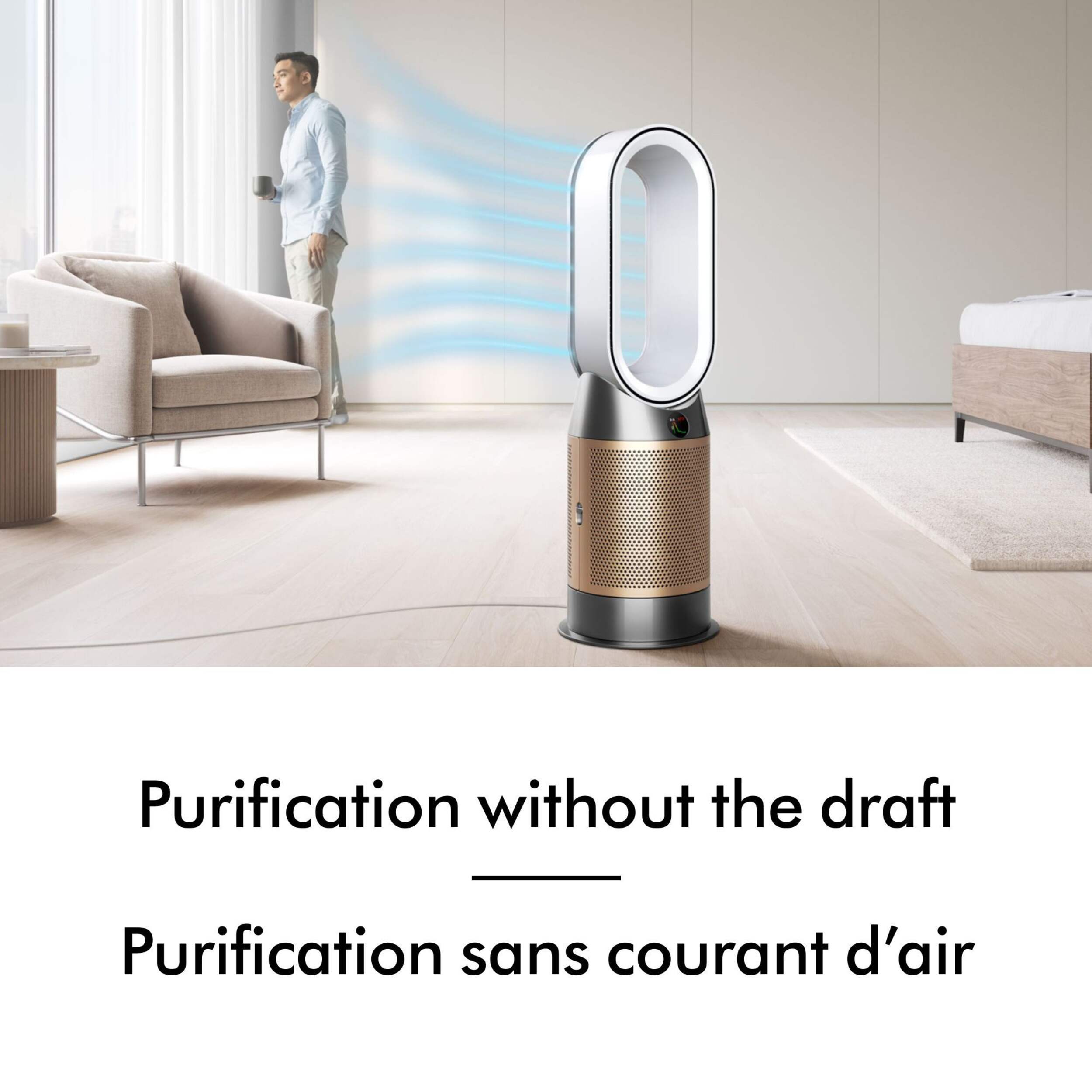Purifies and heats the whole room evenly and cools you with powerful airflow in summer