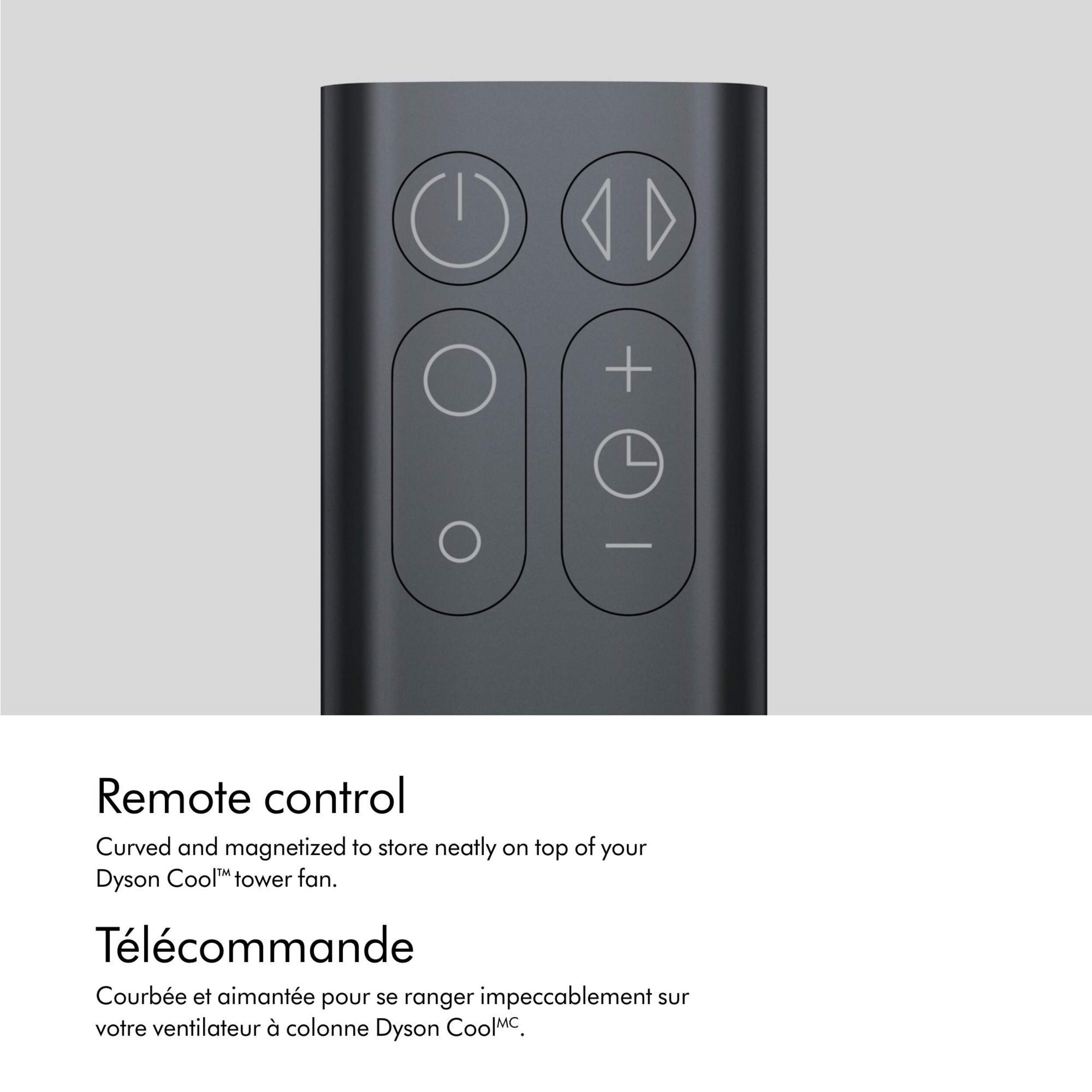 Keep your home cool and comfortable with the Dyson AM07 Cool™ Programmable Oscillating 10-Speed Tower Fan with Remote Control. This modern looking black and nickel tower fan looks great in any decor while it keeps the air cool and circulating throughout the room. The powerful, amplified airflow cools quickly in hot weather, delivering an uninterrupted stream of smooth airflow to keep your home comfortable.